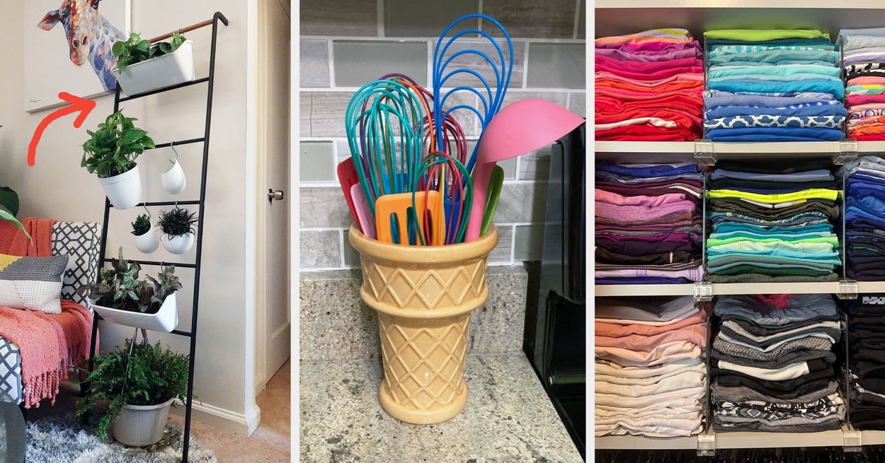 We hope you love our recommendations! While every product is independently chosen by our editors, BuzzFeed and our publishing partners may collect a share of sales or other compensation from the links on this page. You can read more about how our affiliate partnerships work in our Editorial Standards & Ethics Guide. "It literally took a little anxiety away." —said one reviewer about this stylish leaning ladder that eliminated their "not quite dirty" clothes pile on the floor. Spring cleaning doesn't have to just mean washing your windows and walls, cleaning behind appliances, and dusting those ceiling fixtures that never get attention. It can also include tidying up those areas of your home that have gotten a little cluttered and, dare I say, chaotic, especially as we've all been cooped up inside for months. These organizing products take no effort to implement in your home, and the satisfaction they bring is immediate. Your spring reset is just a few clicks away! Promising review: "These 12x12 hyacinth baskets are stylish and sturdy, with a beautiful natural woven look. They fit perfectly in my cube shelving and are great for organizing blankets, toys, shoes, or everyday items while still looking decorative." —Amazon Customer Get five baskets from Amazon for $59.99+ (available in three sizes and six colors). And yes, it's technically a planter too! Promising review: "I just love this thing! I was looking for a kitchen utensil holder and was only finding boring canisters. Somehow, I came across this planter and decided to try it out, and wow! I absolutely love it. It’s so cute, and it holds all of my utensils just fine. It doesn’t wobble around at all. Would highly recommend!" —Rebecca Get it from Amazon for $25.95+ (available in two sizes). Promising review: "Love these, so handy in fridge, cabinets, pantry, drawers, anywhere! Nice size storage capacity without being too heavy when containing otters of liquid products. I use them almost like pull-out drawers in my bathroom cabinets. I love that they are clear and short enough it makes getting things out easier. Sturdy and well made." —BGuhl This comes from Berry Ave, a small business that makes organization products. Promising reviews: "Holds better than any rack I've had. Nothing falls off and the hooks are a welcome addition for holding the small items. This is my second one, as I liked the first one so well." —Jami Wallis "Sturdy and strong. I tried other brands but they are not strong enough to hold brooms. This one really works. I wish there was more space between each holder, but otherwise I'm very satisfied." —eb Get it from Amazon for $17.97 (available in four colors). Promising review: "This pill organizer is very handy because it allows you to set up your pill regimen for an entire month. The fact that each little container is separate is nice because you can take it with you or set it on the table to help you remember to take your pills. This works well for a friend who has early dementia so he remembers to take all his medications. Very handy." —Mardi Get it from Amazon for $15.98+ (available in three colors). The acrylic unit comes pre-assembled and secures with a single fastener. Indoor Window Gardens is a small, family-owned business based in South Carolina. Promising reviews: "We love our new shelves! They give us much-needed space in our front window for our plants, while keeping them high enough to prevent the cat's access to them!" —Mary Skene "So far, I’ve purchased two! They are easy to install, and if you are clumsy like me, you can flip the shelves upside down to have a lip around the plants to ensure you don’t drop any while fixing blinds!!!" —kowalczyka527 Get it from Indoor Window Gardens on Etsy for $66.60+ (originally $74+; available in three styles and three mounting options). Free shipping is included. People also use this for storing those kinda-dirty-but-not-dirty-enough-to-wash-yet clothes you normally toss onto that chair (you know the one). Promising review: "I was a little hesitant to spend this much on this product, but glad I did. Now my tiny bedroom looks a little more polished because I have eliminated the not-quite-dirty-clothes pile-on-the-chair-or-floor, and instead have this stylish ladder where I can neatly hang my clothes...and it looks lovely. It literally took a little anxiety away." —Diane Get it from Amazon for $88 (available in three colors). The organizer has nine hooks on it, each of which can hold two caps — so up to 18 caps can fit on this bad boy. It can strap onto just about any regular door! I bought this cap organizer because my closet situation was out of control and I had nowhere to put my growing collection of baseball caps (I never was a cap girly before, but I'm sort of becoming one??). This takes no time at all to set up on your door (no tools needed), and it's so satisfying and helpful to see all your caps organized in one place. Just one organizer has been enough for me so far, but if your cap collection is ~expansive~, you can easily layer many of these side by side on a single door. This cat food can organizer has been one of my favorite recent purchases — it's one of those buys that makes you wonder why you waited so long. The cat food shelf in my pantry was a mess — I would often just stack those 24-can variety packs on top of each other, which made it a pain to dig through and find specific flavors for my picky cats. While this can organizer doesn't take up less space than what I was using before, it makes grabbing cans for meals way easier and looks SOOO much nicer. Assembly took maybe 15–20 minutes and the instructions are super straightforward. My favorite thing (and a reason I specifically bought this organizer over others) is that it has a flat top, which means I can stack any overflow cans on top, or other cat food supplies and treats. Also! Both large 5-ounce cans and smaller 3-ounce cat food cans will fit in the slots; I p