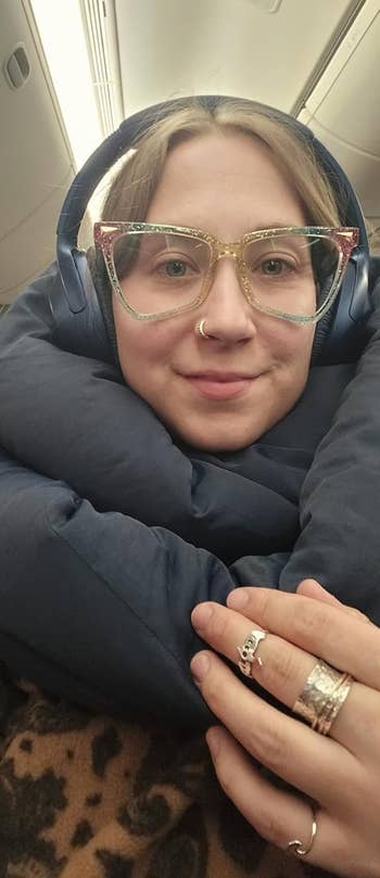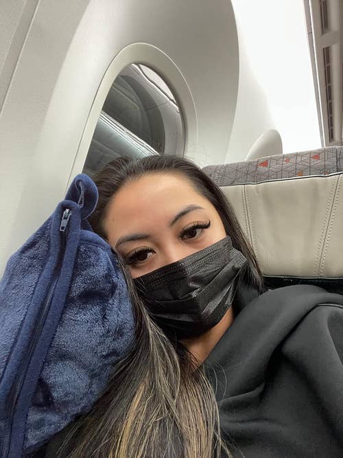 We hope you love our recommendations! While every product is independently chosen by our editors, BuzzFeed and our publishing partners may collect a share of sales or other compensation from the links on this page. You can read more about how our affiliate partnerships work in our Editorial Standards & Ethics Guide. You might even *gasp* look forward to that long plane ride. 👀 PS: The genius Airplane Pocket is a small biz! Check out a TikTok of the Airplane Pockets tray table cover in action. Here's what BuzzFeeder Emma Lord has to say: "I used this on a round-trip from NYC to Tokyo, both with connecting flights in Canada, and cannot sing its praises enough. It fit all four of the different tray tables I used it on and was so ridiculously handy for keeping track of all my littler odds and ends like AirPods, the plane's headphones, earplugs, a sleep mask, a book, gum, a scrunchie, and little snacks. The hanging end of it easily tucked into the built-in sleeve of the seat in front of me for takeoff, and when other passengers needed to scoot past me in my aisle seat. Usually, I feel like a hot mess and get frustrated rooting around in the grimy sleeve for my stuff, and this was such a refreshing solution! Several flight attendants even asked where I got it to buy one for themselves!" Promising review: "Every time I whip this thing out, someone leans across the aisle, asks what it is, and then makes a note to buy one when they get home. On a long-haul flight, it's simply a must for organizing your reading materials, headphones, sanitizing wipes, etc. My favorite use for this thing is when I've fallen deep asleep along the way, only to wake up in a fog and in a rush to deplane. Instead of having to hastily dig things out of the seat back pocket, I just slip the entire thing off of the tray table, pop it in my bag, and worry about sorting things out when I get to where I'm going — safe in the knowledge that I didn't leave anything behind. Love it!" —justinglen This contraption provides 360-degree support thanks to a wraparound design and clips that connect it to your seat's headrest. Promising review: "Just took a 15-hour flight with this travel pillow, and this was the best travel pillow by far. I've used inflatable and memory foam neck pillows before; the major problem is that they don't secure your head and torso, so either your muscles have to hold up your body, or your head and torso will end up swinging around, and both are disruptive to sleep. With this travel pillow, my muscles can relax, and the padded eye mask will hold up my head and torso. One minor downside is that the pillow needs to be mounted on your seat's headrest; if someone bumps your seat, it can be disruptive, but this rarely happens. Its size and weight are also much less than memory foam neck pillows, and I don't have to bring an extra eye mask, so it is very travel-friendly." —Sky Get it from Amazon for $17.84+ (available in nine colors). PS: This only works if you have full access to the window (rather than those seats where you get the weird halves of two windows between the rows in front and behind you). Promising review: "A friend recommended this to me as a vital travel companion now that I've returned to frequent flying. I initially thought of it as a novelty, but now that I've used it, it's a necessity. It keeps the workspace clear for my laptop, but it also organizes all the little pieces that can become so annoying to keep up with — glasses, earphones, etc. It got my seatmate's immediate attention, as well as a few other folks nearby. I suspect they'll have one soon. Watch for one soon in a window near you!" —Timothy G. Wolfe Unlike the regular U-shaped pillows, Trtl Pillows are machine-washable and fast-drying. Promising review: "Used it for a 14-hour flight to Japan last week, and it helped tremendously. This was the first time I was able to sleep on the plane so this helped tremendously. Definitely a must-have for travel. It is very light, so I was able to easily pack it in my under-the-seat wheeled trolley. I want to emphasize how much the light warmth of the fleece (and I don't like being hot) was just right to help me nod off to sleep. Since this is primarily for sitting upright in the seat or someone in the middle or the aisle seat, this was ideal for me. I just got back yesterday. Again, I used it — this time for a 12-hour flight." —Ambience Get it from Amazon for $64.99 (available in four colors). The pillow is made with a breathable, super-soft bamboo fabric and is fully machine washable. Promising review: "We got a few different types of travel pillows for a red-eye to Europe and this was overall our favorite due to its versatility. The loop actually allows you to have various self-supporting positions, and this will contort all sorts of ways to be a pillow, neck rest, armrest…anything. It’s actually just good for any type of travel in general and got a lot of use on the whole trip. The material is soft and comfortable." —Tom Shaw Get it from Amazon for $54.50 (available in nine colors). Promising review: "I bought this product before taking a six-hour flight, and it was a lifesaver. The pillow has a strap behind it to put it on your luggage so that it doesn't have to be carried. Very convenient when traveling. The blanket kept me warm on the plane, and when the blanket is folded into a pillow, it is also comfortable. Would definitely recommend." —Robynn Get it from Amazon for $27.95+ (available in seven colors). Promising review: "I was hesitant to buy these but I have terrible dry eyes so went for it. I love them! They heat up quickly and are so comfortable and soothing I fall right asleep when used at night! I used them on a recent long haul flight and had no problem with dry eyes in the air. I also used the wipes several times during the flight. These are good for anytime you want to take a break and treat yourself to a 20 minute savasana or meditation. Your nervous syst