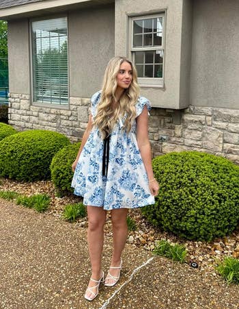 Promising review: "This little dress is a delightful addition to any fashion-forward wardrobe. The mini dress exudes sophistication with its deep V-neckline and charming bow tie detail, adding a touch of elegance to your ensemble. It has a pretty lightweight and breathable fabric and it's perfect for staying cool and stylish during the warmer months. I wore this dress in white on Easter and received so many compliments! The mini length adds a flirty vibe, while the flowy silhouette ensures comfort and ease of movement. Whether you're attending a brunch with friends or a summer soirée, this dress is sure to turn heads!" —Petflix