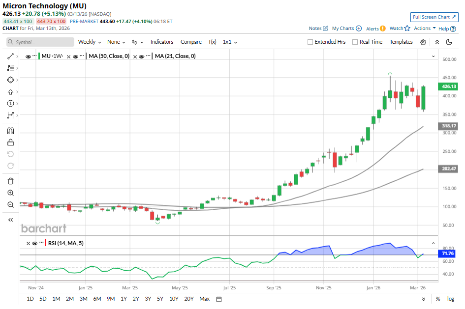 Micron (MU) will release its second-quarter fiscal 2026 earnings on Wednesday, March 18. The announcement follows a big rally in MU stock. Over the past three months, MU has surged 92%. Moreover, the stock has climbed over 342% in the past year, outperforming most top technology stocks. The big rally in Micron stock reflects significantly high demand for its advanced memory products. As artificial intelligence (AI) workloads expand, data centers and AI systems require high-bandwidth, high-capacity memory. This has driven strong growth in Micron’s DRAM, NAND, and high-bandwidth memory (HBM) revenue. NIO Is Outperforming Even as U.S. Stocks Slump: Can the Uptrend Continue? Iran War, Fed Conundrum and Other Key Things to Watch this Week Uber Expands Robotaxi Empire With Nissan Deal. Is UBER a Buy Now? Markets move fast. Keep up by reading our FREE midday Barchart Brief newsletter for exclusive charts, analysis, and headlines. Supporting its investment case are tight supply dynamics, which have driven prices higher and bolstered Micron’s top and bottom lines. Notably, Micron has significantly expanded margins and is growing its bottom line at a solid pace, further driving its share price. Thanks to a solid demand environment, option traders are positioning for a potentially large move following the Q2 earnings release. Contracts expiring on March 27 imply a move of roughly 11% in either direction. That expectation is notably higher than the company’s average post-earnings move of about 5.5% over the past four quarters, indicating that the market anticipates a stronger reaction to this report. However, investors should take caution. Micron’s shares declined after earnings in three of the past four quarters, suggesting that even strong quarterly results may not translate into an immediate positive market reaction. Micron’s management has maintained an optimistic outlook heading into the results. The company has guided for a significant acceleration in revenue growth, supported by strong end-market demand. At the same time, improving pricing dynamics in the memory market are expected to support margin expansion, which could translate into another period of strong earnings growth. These factors may continue to boost investor confidence in the stock, even after its substantial run-up. Management remains optimistic, forecasting new highs across several key financial metrics, including revenue, margins, EPS, and free cash flow. For the fiscal second quarter, Micron anticipates revenue of approximately $18.7 billion, an increase of more than 132% year-over-year (YoY). This would mark a significant acceleration compared with the 57% YoY revenue growth reported in the first quarter. Profitability is also expected to improve significantly. Gross margin is projected to reach 68%, up from an adjusted gross margin of 37.9% a year earlier. EPS is forecasted at approximately $8.42, compared with adjusted EPS of $1.56 in the prior-year period. Analyst estimates are slightly higher, with second-quarter earnings expectations of about $8.52 per share, representing substantial YoY growth. Supporting its financials is the ongoing momentum in the data center segment. Demand for server units remains robust, and Micron has positioned itself well in this segment through its portfolio of high-value products, including HBM, high-capacity server memory modules, and data-center solid-state drives (SSDs), to capture demand and accelerate growth. Supply dynamics in the memory market are also playing a supportive role. Industry supply remains relatively tight, allowing manufacturers to maintain pricing discipline. Overall, Micron’s focus on higher-value products and solid pricing is helping the company expand margins while sustaining strong revenue growth. Looking ahead, Micron has also finalized agreements covering price and volume for its entire calendar-year 2026 supply of HBM, including next-generation HBM4 products. Management expects the addressable market for HBM to expand rapidly in the coming years, positioning the company to benefit from long-term demand growth. In short, Micron will likely deliver significant growth in Q2, which could support its share price rally. While Micron is likely to deliver significant growth and provide an upbeat outlook, its valuation suggests there may still be room for growth. MU stock trades at 12.4 times forward earnings, which appears attractive relative to its EPS growth trajectory. Consensus projections indicate that Micron’s earnings could surge by about 349.4% in fiscal 2026, driven by high demand and increased pricing. Looking beyond 2026, growth is expected to remain robust, with an additional 42% increase in EPS for fiscal 2027. Most analysts covering Micron currently rate the stock a “Strong Buy,” reflecting confidence in the company’s ability to capitalize on rising demand for advanced memory technologies. Overall, strong growth, a reasonable valuation, and a favorable analyst outlook make Micron’s investment case ahead of Q2 earnings. On the date of publication, Amit Singh did not have (either directly or indirectly) positions in any of the securities mentioned in this article. All information and data in this article is solely for informational purposes. This article was originally published on Barchart.com