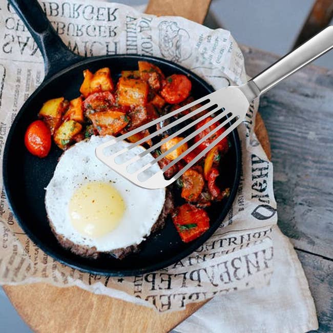 We hope you love our recommendations! While every product is independently chosen by our editors, BuzzFeed and our publishing partners may collect a share of sales or other compensation from the links on this page. You can read more about how our affiliate partnerships work in our Editorial Standards & Ethics Guide. Including an immersion blender that doubles as a vegetable chopper, so you can make delicious soup. Promising review: "So far, every marketing claim has been 100% true. I'll be replacing my 20-year-old All-Clad set with a set of these." —David Promising review: "Nice, and sharp, and easy to handle. Love the floral designs." —Moby The stackable set includes a 5-quart saucepan, a 10-inch deep wall fry with a helper handle, a 3.5-quart sauté pan, two universal lids, and three scratch-proof inserts. Promising review: "This set of cookware pleasantly surprised me. The set is solid and well-constructed. The interchangeable lids also help in reducing space. The set also has an extremely nice nonstick coating throughout. Very nice set and at this very reasonable price point, it's a no-brainer. Jump on this if you can, you won't regret it." —willisa Promising review: "I love this tool. I have only made three cakes, so I'm just starting out. My first time around I didn't have this tool and I really struggled. With my two most recent cakes, I used this tool, and my icing was so smooth and way more professional-looking. Super impressed!" —Emily Promising review: "The six-stage angle system takes the guesswork out of sharpening, and switching between angles feels intuitive even if you're not experienced with sharpening tools. The design is straightforward, and the instructions are clear enough that you can start using it right out of the box." — Koushik Promising review: "This design is my favorite of all my Nordic Ware bundt pans. Cakes turn out flawless and super easy to clean. Made a cake for an auction at a fundraiser, and it sold for $90. This design is a showstopper." —Vicki Promising review: "I love fresh garlic, and a good press is hard to find. I purchased this one because my good, expensive one broke. I have to say that I am truly impressed with the feel, quality, and performance of this budget-priced garlic press. I started out with one clove at a time, then moved to two and three without a second thought. I was concerned about the handle and materials after reading the reviews, but I can assure you that I feel no flex or give in the handle, and I'm a man with strong hands. This is by far the best garlic press I've owned, and I've been around for a bit." —Jerry Promising review: "Looks good, easy to use, and is very effective! Very good value for the money. If you like crisp fries (potato and sweet potato) and vegetables (broccoli, cauliflower), and you want them in 10 minutes or less, this is the unit for you! The unit is also very easy to clean." —Val R Price: $159 (available in seven colors) Promising review: "It's great to have several timers when cooking. I designate a color to each cooking project (as needed), as I bake a lot of bread — these really help..." —Georgia Promising review: "I don't dislike anything about these spatulas. What I like about them is that they are actually better quality than I expected. I like their size and that they are stainless steel. They are easy to handle because they are not too big. They are also thin enough to easily maneuver under a delicate piece of fish or a fried egg, but not so thin as to be flimsy. The price was also fair and not outrageous for two spatulas. They were a good purchase for me!" —anonymous Promising review: "Many thermometers to choose from. Glad I picked this one. Longer, which makes it so much easier to use!" —Peggy Promising review: "My KitchenAid broke after three years of non-heavy use (maybe used once a week or every two weeks), and I was going to look into getting it fixed since I bought it new at about $400. I decided to buy this, and holy crap, it's so good! I have made fresh dough with it, no problem, cookies, cakes, and my own butter with it. It greatly outperforms my previous KitchenAid, and it's super cute! My KitchenAid would get very hot when making dough, and this mixer handles it like a champ. I LOVE IT!!!!" —Hannah Promising review: "Great knives for the cost. Love the covers for the knives that are included. Great protection for the edges, and also when you get them out of the drawer. Protects your fingers from getting cut." —Vicki Promising review: "I learned about using quality pans while working at a bakery. Quality pans bake your goods more evenly. You're taking the time to bake, so make it as good as it can be. A quarter sheet is half the size of your typical baking sheet or cookie sheet. These are not lightweight pans and should last you years and years. You'll notice the difference and will never go back to those thin, cheap pans." —Ellen Promising review: "This actually works SO well! I don't do many reviews, but I felt I should for this product. I made an omelette using 4 eggs and maybe a little less than 1/4 cup of unsweetened almond milk. I put it in for 2:30. I was amazed how evenly it cooked, and it was the fluffiest omelette I've actually ever had. Good size and very easy to clean. High-quality construction. I can't wait to try the poacher, too. It also gives a little guide on how long to cook each type of item. Overall, great product. I love it!" —Sarah Promising review: "It's EVERYTHING I wanted in a blender. It quickly purees to perfection. Easy to use and easy to clean. I love the 16-oz cup, which is the right size for my individual smoothies, which consist of more vegetables than fruit. And the fact that it can crush and puree hard vegetables such as beets, carrots, cabbage, cauliflower, and broccoli, and ice is no problem, which is indicative of the power of its motor! Plus, it doesn't take up much countertop space at all." — sanaa Promising rev