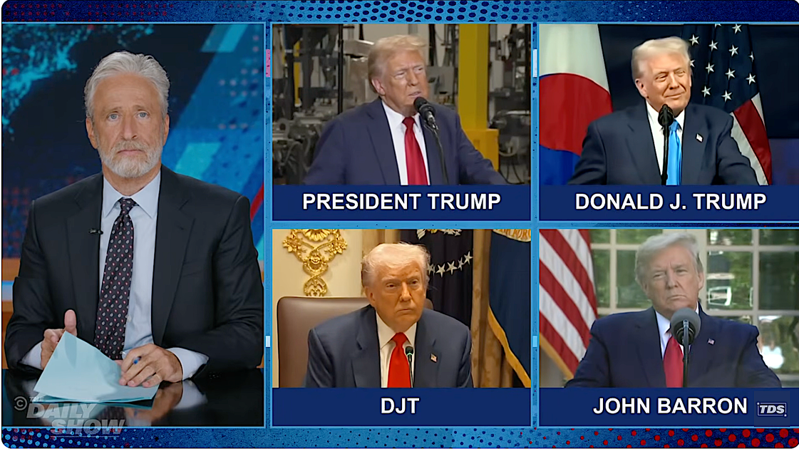 “Daily Show” host Jon Stewart ripped President Donald Trump on Monday night’s show for his ever-changing narrative surrounding the war in Iran using an “expert panel” of talking heads. “Please welcome to the program, President Donald Trump, Donald J. Trump, DJT and John Barron,” Stewart said while featuring a “panel” of various clips of the president under different names. Stewart asked the “panel” to clear up any confusion about whether the United States is, in fact, at war with Iran, then played various clips of Trump contradicting himself. “This was just an excursion into something that had to be done,” Donald J. Trump said. “This is an excursion, a little excursion, and I think it’s only that,” President Donald Trump said. “We’re winning the war by a lot,” Trump’s alter ego John Barron said. “So it’s a war?” Stewart asked. “Because earlier we heard President Trump and Donald Trump say it’s an excursion, not a war.” “It’s both, it’s an excursion that will keep us out of a war,” DJT said. “Alright, DJT, it’s both a war and an excursion that will stop the war that it isn’t,” an exasperated Stewart replied. The “Daily Show” host used the same bit to hit on a number of other contradictions Trump has landed himself in over the course of the now three-week war, including how long the conflict will last and the war’s objectives. Stewart then interrupted the “panel” to hear from “Don from Palm Beach,” where Trump said the war will end “when I feel it in my bones.” Stewart ended the bit by giving a heartfelt speech about the costs of war and the great decisions that fall on the shoulders of world leaders – then showed clips of the Trump “panel” falling asleep, one by one. See more in his Monday night “Daily Show” monologue: By entering your email and clicking Sign Up, you're agreeing to let us send you customized marketing messages about us and our advertising partners. You are also agreeing to our Terms of Service and Privacy Policy.