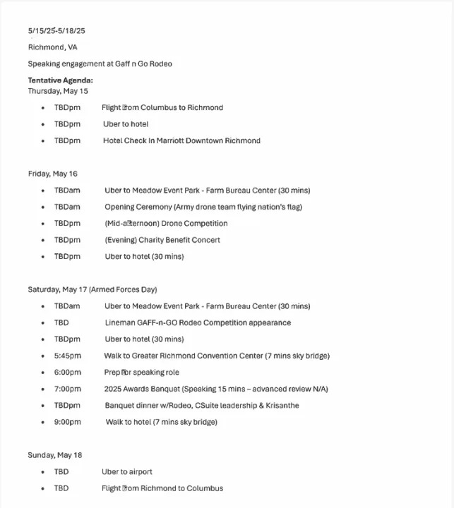 COLUMBUS, Ohio (WCMH) — Former Ohio State President Ted Carter spoke at an out-of-town event with the woman he had an “inappropriate relationship” with last year but did not appear to spend university funds on her. Carter abruptly resigned last week over what was called an inappropriate relationship with a woman seeking public funds to support her private business. The woman has been identified as Krisanthe Vlachos, a podcaster who received support from JobsOhio and resources at Ohio State to produce The Callout Podcast. The nature of the inappropriate relationship has not been publicized. See previous coverage of Carter’s resignation in the video player above. The Callout Podcast connected military personnel and veterans with linemen, or technical workers who maintain electrical and telecommunication lines. The program featured Carter, a decorated combat veteran and Top Gun graduate, multiple times. In May 2025, Vlachos partnered with Ohio State and Carter to connect military and veterans to linemen at the Gaff-N-Go Rodeo in Richmond, Virginia. Ohio bill seeks to crack down on accessible parking misuse Carter served as the keynote speaker for the rodeo, a two-day skills competition for linemen. According to a LinkedIn post, Vlachos presented at the opening ceremonies. On Saturday, May 17, Carter’s schedule listed him as speaking for 15 minutes at the awards banquet, followed by a “banquet dinner w/ Rodeo, CSuite leadership & Krisanthe.” After the dinner, slotted for “TBD p.m.,” Carter would have walked back to his hotel, per the schedule. Carter’s business receipts filed with OSU do not indicate he spent university money on Vlachos at the event. Carter’s expenses were authorized by the university cost center one month before his trip. OSU committed $2,221.16 for his travels, and he spent around $1,745 in total in university money. Carter was in Richmond from May 15 to 18, and the rodeo was a two-day event on May 16 and 17. Carter’s receipts show he paid $1,389.48 for first class, round-trip airfare for one. Carter spent $238 on Ubers, with trips to the airport, hotel and event. The records note the Gaff-N-Go Rodeo covered his hotel fare. Judge to rule on best way to dispose of remains found at Upper Arlington school Carter was allotted $240 for meals before the trip, and spent $263.25. Most of the meal expenses came from two dinners: a $101.26 meal at the Richmond Marriott on May 15 and a $96.72 meal at the Marriott on May 16. Both meals were labeled for “business entertaining,” with Carter saying he dined with event organizer Brian Mosier on his first night and Maryland Co-op leader Mike Millard the second. The month after the Gaff-N-Go rodeo, Vlachos signed a contract with WOSU to use university-owned podcasting studios to produce The Callout Podcast. Vlachos, who lives in St. Louis, would pay $1,874.32 per episode for 50 episodes to be filmed between July 2025 and June 2026. In total, Vlachos agreed to pay $93,716 to use WOSU’s equipment. Details regarding Vlachos and Carter’s relationship are sparse as the university continues its investigation into Carter’s alleged misconduct. Days after accepting Carter’s resignation, the board of trustees elevated Provost and Executive Vice President Ravi Bellamkonda to become the new university president. Copyright 2026 Nexstar Media, Inc. All rights reserved. This material may not be published, broadcast, rewritten, or redistributed. For the latest news, weather, sports, and streaming video, head to NBC4 WCMH-TV.