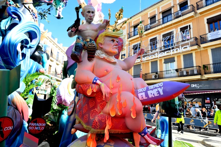Donald Trump isn’t likely planning a trip to Spain anytime soon, given his current contempt for its government’s opposition to his Iran war and refusal to up its defense spending to NATO’s 5% target. But if Trump does decide to hop across the Atlantic for paella or tapas, he might want to avoid the eastern, Mediterranean city of Valencia right now. The president is among the political figures currently being mocked at the city’s famous Fallas festival, where giant satirical papier-mâché sculptures — known as ninots — are displayed across the streets before being dramatically burned on Thursday. Several of this year’s creations have depicted Trump in unflattering, grotesque ways, alongside Russian President Vladimir Putin and Israeli Prime Minister Benjamin Netanyahu. Scroll down to see them: It’s not the first year that Trump has been the subject of ridicule at the event. Here’s how artists have depicted the president in recent times. By entering your email and clicking Sign Up, you're agreeing to let us send you customized marketing messages about us and our advertising partners. You are also agreeing to our Terms of Service and Privacy Policy.
