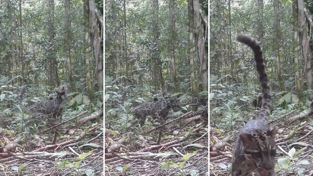 A rare sighting from deep in the forest of Borneo has given conservationists hope that the vulnerable clouded leopard is on the prowl. The Orangutan Foundation and Tanjung Puting National Park captured video of a mother and two cubs hopping through a thicket. One of the cubs even stopped to take a long look at the camera. The Bornean clouded leopard is on the International Union for Conservation of Nature Red List of Threatened Species, according to the foundation. The animal is endangered partly because of its low recruitment rate; few adults produce and raise offspring until they are two years old, at which point they join the breeding population. Deforestation has taken its toll on the leopard, which relies on forests for habitat. The foundation said in a news release that more than two-thirds of the animals have been killed in recent years. On Instagram, it noted this was the first time a mother and two offspring had been recorded. "For the population to be reproducing is an incredibly encouraging sign," it stated. Clouded leopards are known for their long tails, which match the length of their bodies, and teeth, which can reach 2 inches. The canine fangs are the longest of any feline, according to the Felidae Conservation Fund. The big cats prey on monkeys, deer, pigs, and sometimes birds and reptiles. Population estimates vary from 5,000 to 11,000 in Borneo and 3,000 to 7,000 in Sumatra. This sighting shows how important trail cameras are for scientists and researchers, who rely on the tool to track species diversity and distribution. A similar trap in Nigeria recently showed a pair of the rarest apes in the world. They can also help catch poachers. Elsewhere in Indonesia, conservationists are trying to save the Sumatran rhino, of which fewer than 50 remain. "The clouded leopard is an arboreal species and excellent hunter on the ground that plays an important role in maintaining the ecosystem," Orangutan Foundation research manager A. Yoga Perdana said. "As one of the rarest species to find, being able to see a female and cubs gives us evidence that they are healthy and actively breeding." Get TCD's free newsletters for easy tips to save more, waste less, and make smarter choices β and earn up to $5,000 toward clean upgrades in TCD's exclusive Rewards Club.