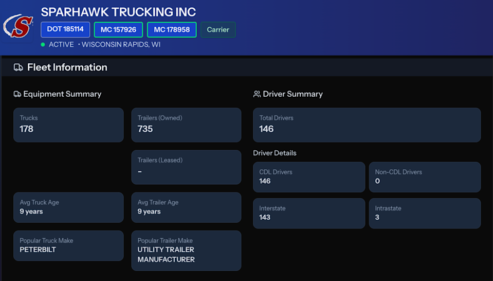 Family-owned Sparhawk Trucking, a Wisconsin-based company that the federal government says has 178 power units, has filed for protection under chapter 11 of the federal bankruptcy code. The company, based in Wisconsin Rapids, has been in business since 1979, according to its website. There were four separate filings in the federal bankruptcy court for the western district of Wisconsin covering that many companies operating under the Sparhawk name: Sparhawk Trucking, Sparhawk Truck and Trailer, Sparhawk LLC and Sparhawk Properties. Sparhawk Trucking is the operating company that puts vehicles on the road. That is the company identified at its website. It is also the company that the Federal Motor Carrier Safety Administration reported as having 178 power units. Sparhawk’s website says it has more than 200 tractors, more than its SAFER file, and more than 1,000 trailers. Its listed services include both dry van and refrigerated transport. Sparkhawk Trucking says the company’s assets are less than $50,000, but it has estimated liabilities of between $10 million and $50 million. In the filing listing the largest creditors, Paccar Parts Fleet Service was by far the largest creditor at Sparhawk Trucking, with debts of $147,805.10. Cintas, a company that provides various business equipment such as uniforms, was listed as the second largest creditor at $50,618.58. Its estimated number of creditors is between 50 and 99. The list of largest creditors for Sparhawk Trucking is the identical list of creditors for Sparhawk Truck and Trailer. The other three Sparhawk-related companies that filed for chapter 11 protection and their key numbers in the filings are as follows: Sparhawk Truck and Trailer and Sparhawk Properties: both between 1-49 creditors, assets of $1 million to $10 million, estimated liabilities of $10 million to $50 million. (The actual categories in chapter 11 filings for liabilities and assets are $1 more than the cutoff point. So the category is actually $1,000,0001 in assets or liabilities). Sparhawk’s Properties creditors with listed secured or partially secured liabilities were two: Nekoosa Port Edwards State Bank of Nekoosa, Wisconsin for about $325,600, and WoodTrust Bank of Wisconsin Rapids for about $438,758. Sparhawk LLC: 1-49 creditors, $1 million to $10 million in both assets and liabilities. Sparhawk LLC listed just one creditor with the size of the claim disclosed: a secured or partially secured claim to the North Central Utility of Wisconsin for $923,098. An email sent to Sparhawk via its online portal and a separate email sent to its bankruptcy attorney listed in the filing had not been responded to by publication time. More articles by John Kingston Derek Barrs defends FMCSA’s bold moves at TCA 6th Circuit rejects NLRB’s Cemex rule, dealing blow to unionization efforts New Jersey delivery firm will reclassify independent drivers as employees The post Wisconsin-based carrier files for chapter 11 protection appeared first on FreightWaves.