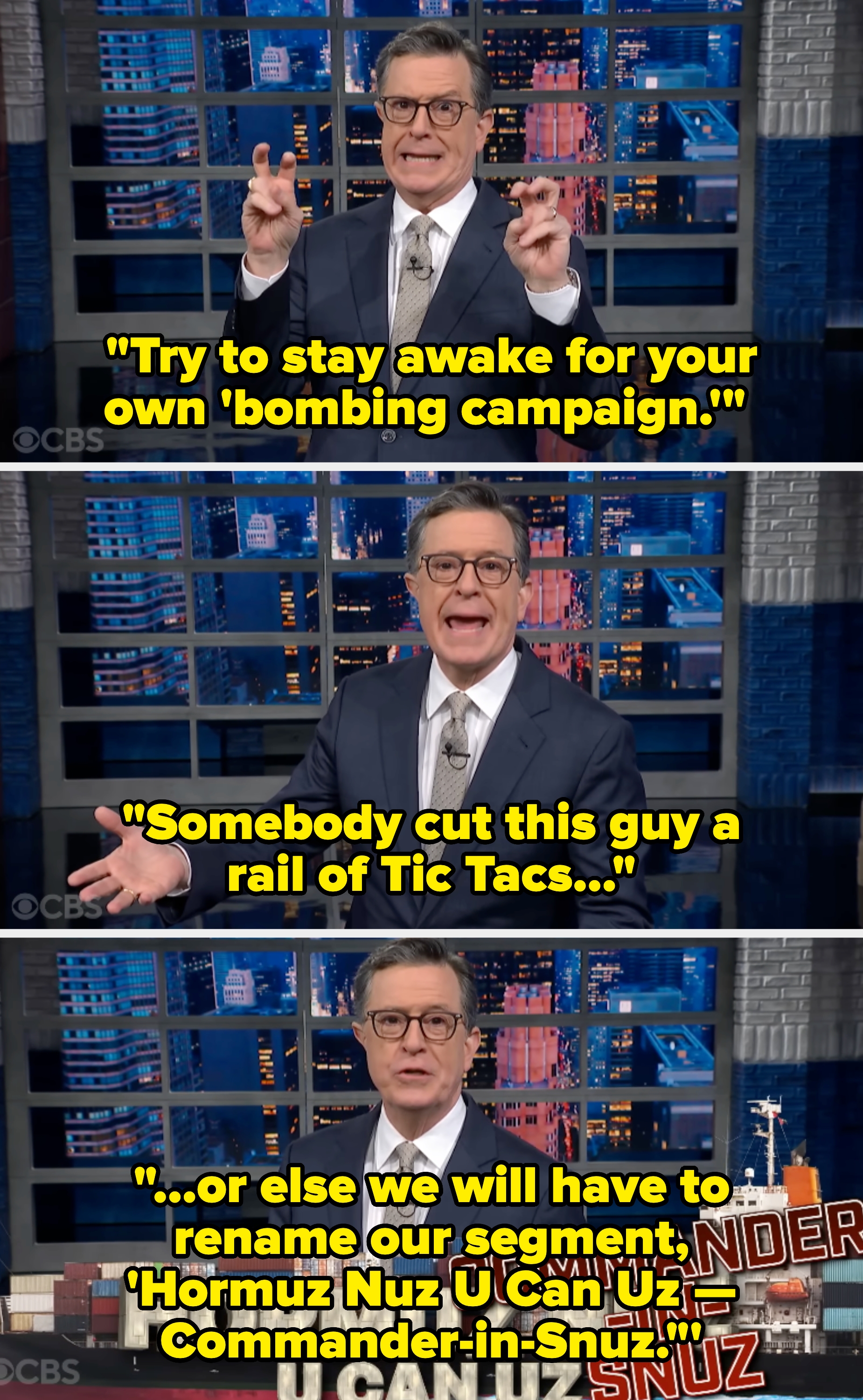 "This is absolutely the dumbest timeline. We're gonna miss you Stephen." If you must know, I based my entire personality on Seasons 2-5 of "Girls," and I'm a huge gamer. The Associated Press reports that the shipping traffic in "the Strait of Hormuz, a waterway for global oil and gas transport that supplies roughly one-fifth of the world's crude oil, has been halted since early March, after the war started. About 20 vessels have been attacked in the area."