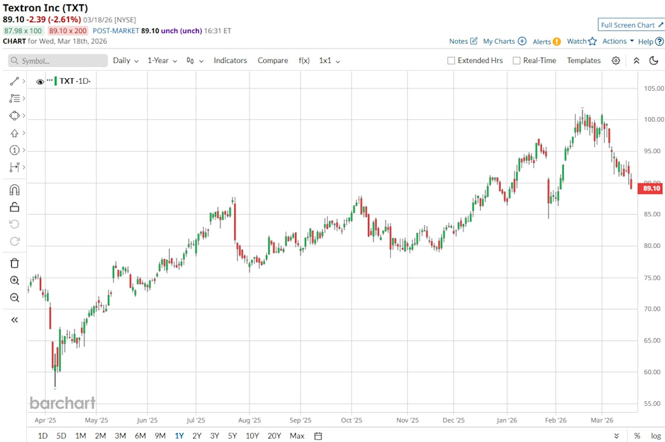 Iran’s escalating use of naval mines and drones in the Strait of Hormuz has turned one of the world’s most vital energy chokepoints into a slow‑motion crisis for global trade. Oil tankers and commercial vessels now navigate a corridor where a single misstep can trigger both physical damage and a fresh spike in risk premiums across energy and shipping markets. The immediate question is no longer simply who sells missiles and interceptors, but which companies can supply the unglamorous, highly specialized technology needed to actually clear the waterway and keep it open. That shift is propelling a once‑niche corner of defense (that is, autonomous mine‑countermeasure systems) into the center of Washington’s and its allies’ operational planning. Textron (TXT) now stands out as a relatively under‑the‑radar name. Following the Fed's Rate Decision, the S&P 500 and Dow Fall to New Closing Lows for 2026 As Tesla Gears Up to Launch Terafab, Is TSLA Stock a Buy? Huge, Unusual Trading in Nvidia Put Options - Investors Bullish on NVDA Get exclusive insights with the FREE Barchart Brief newsletter. Subscribe now for quick, incisive midday market analysis you won't find anywhere else. If the Strait of Hormuz becomes the first real‑world test of large‑scale, autonomous mine‑countermeasure operations, could Textron be one of the most asymmetric ways to invest in that shift? Let’s find out. Headquartered in Providence, Rhode Island, Textron builds aircraft, defense systems, and unmanned platforms that now include mine‑sweeping and mine‑hunting technology tied directly to the Strait of Hormuz narrative. Its shares trade at 0.36%% year-to-date (YTD) and 17.52% over the past 52 weeks. This valuation profile sits at about 14.97x trailing earnings against a sector median near 20.79x and at 1.97x book versus a sector median of 3.07x, suggesting the market has not fully priced in the upside from Textron. Their most recent reported quarter, ending in December 2025, showed EPS of $1.73 versus a consensus estimate of $1.74, a small 0.57% downside surprise that did little to change the underlying trajectory. This print was paired with revenue of $4.18 billion, which translated into 15.6% year‑over‑year (YOY) growth and signaled that key defense and aviation programs are scaling. It also came with adjusted EBITDA of $506 million versus estimates of $497.5 million, good for a 12.1% margin and a 1.7% beat. The cash‑flow picture adds another layer to the story, supporting Textron as a mine‑sweeping proxy rather than just a cyclical industrial. Their operating cash flow for December 2025 reached roughly $1.31 billion, up 114.38%, which points to stronger cash conversion from earnings and healthier funding for R&D and capital returns. This improvement was mirrored in the net cash flow of about $584 million, a surge of 620.99% that gives the company more flexibility to backstop long‑cycle defense programs linked to the Strait of Hormuz. Textron’s aviation arm has been busy, and that matters for anyone looking at the stock as a way to play mine‑sweeping tech in the Strait of Hormuz. The Cessna Citation CJ3 Gen2 has now entered service, bringing what the company describes as the most significant Gen2 updates so far to its popular midsize platform. These upgrades help reinforce the franchise with operators that value efficient, modern cabins and avionics, and they support the cash flows that ultimately fund Textron’s unmanned and mine‑countermeasure work. Another step forward came as the Cessna Citation M2 Gen2, already the most delivered light‑entry jet in its class, entered service with Garmin autothrottles. This feature gives pilots greater control and precision, and it keeps the M2 Gen2 competitive with newer rivals without requiring a clean‑sheet design cycle. A quieter but important piece is training. A full‑flight simulator for the Cessna Citation Ascend, developed by Textron’s TRU Simulation unit, has secured Federal Aviation Administration (FAA) qualification. That certification expands advanced training capacity for midsize‑jet pilots and deepens relationships with operators that rely on high‑fidelity simulators. Textron’s earnings setup is more “steady grind higher” than explosive, with the next earnings release scheduled for April 23, and the Street looking for Q1 2026 EPS of $1.29 versus $1.28 in the prior-year quarter, implying a modest YOY growth rate of about 0.78%. That slow‑and‑steady message also shows up in the company’s guidance. Their adjusted EPS guidance for the 2026 financial year sits at $6.50 at the midpoint, which comes in 4.9% below where analysts had been modeling. The way the Street is framing the stock backs that up. One of the more vocal voices, Jefferies analyst Sheila Kahyaoglu, recently reiterated a “Buy” rating while trimming her price target to $110 from $115, reflecting a slightly more tempered valuation outlook without changing the positive stance on execution or the long‑term story. The broader analyst consensus lands at “Moderate Buy,” based on input from 16 firms. Their average price target stands at $98.86, which implies roughly 12.4% upside from the recent share price. Textron looks like a quietly compelling way to express a view on mine‑sweeping demand in the Strait of Hormuz, backed by real cash flow and credible programs rather than just headlines. Its earnings expectations for 2026 are conservative, and guidance sits a bit below prior forecasts, yet the Street still leans “Moderate Buy.” The setup points more toward a gradual grind higher than a moonshot, helped by growing interest in unmanned surface vessels and mine‑countermeasure tech. In that context, Textron looks less like a speculative bet and more like a reasonably priced ticket. On the date of publication, Ebube Jones did not have (either directly or indirectly) positions in any of the securities mentioned in this article. All inf