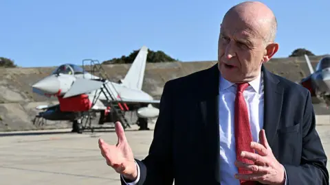 The UK's two military bases on Cyprus are a "colonial consequence" on the island and talks on their status and future need to take place, Cypriot President Nikos Christodoulides has told the BBC. "When the situation is over in the Middle East we are going to have an open and frank discussion with the British government," he said as he arrived for an EU leaders' summit in Brussels. Under the 1960 treaty establishing Cypriot independence from Britain, the UK was given sovereignty of bases at Akrotiri and Dhekelia. However, RAF Akrotiri was targeted by drones this month shortly after the start of the US-Israeli war with Iran and the UK has faced some criticism for its response to the attack. The drones are thought to have been fired from Lebanon by Iranian-backed group Hezbollah and protesters have complained that the British bases on the island have made Cyprus a target. Two of the drones were intercepted, but a third hit Akrotiri causing "minimal damage". A British naval frigate dispatched in response to the drone strike is on its way to the island. The two sovereign bases in the south and south-east of Cyprus have not been used for US operations against Iran, although the UK has since granted the US permission to use them for "specific defensive operations". Akrotiri and Dhekelia make up 98 sq miles (254 sq km) of Cyprus and are a significant source of employment. "We have more than 10,000 Cypriot citizens within the British bases. We have responsibility for those people," Christodoulides said. Any potential negotiations on the future of the bases would be very complicated given the founding agreements involved the UK, Greece, Turkey as well as representatives from the Greek and Turkish Cypriot communities. Asked if he wanted the bases to go, the Cypriot leader said: "We have a clear approach with regard to the future of the British bases... I'm not going to negotiate publicly." Responding to a BBC request for a response to the remarks, the UK's Ministry of Defence highlighted Defence Secretary John Healey's comments in Parliament last week, when he said Cyprus's head of the National Guard had told him: "Our military co-operation has never been closer." Healey visited the UK's air defence team on Cyprus earlier this month and said UK support there was backed up by Nato allies including the US, France, Greece and Germany. The UK said it had boosted its presence its military presence in response to the attack on Akrotiri, although it was not until this week that HMS Dragon, which was deployed to boost defences in Cyprus, entered the Mediterranean. Two Greek frigates and a French naval ship arrived off Cyprus within days of the attack, and Spain also deployed a frigate, as part of a broader response to help their European ally.