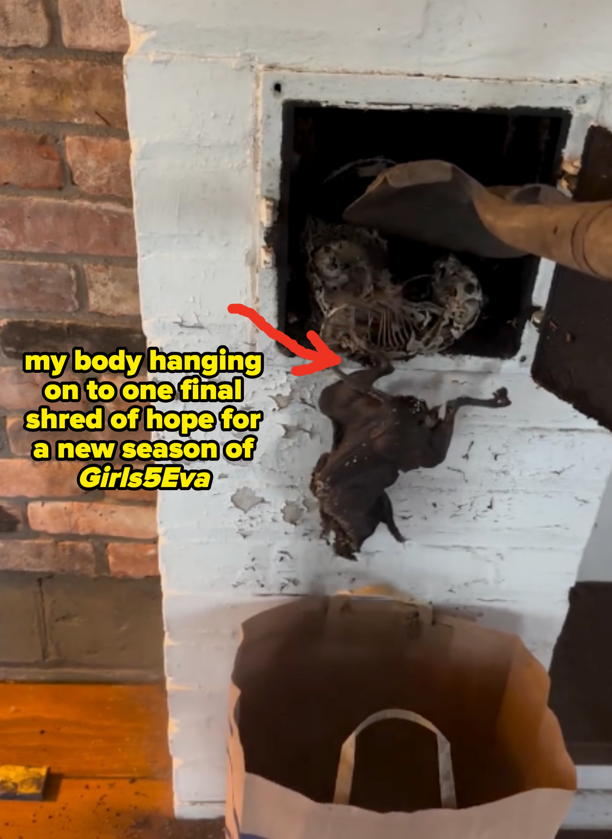 This was the most horrifying (and funniest) thing I've seen on the internet in months. Iβm the Editorial Director at BuzzFeed β where Iβve reported on TV, film, and lifestyle trends (travel, fitness, and food) since 2013 β and I also post about the latest in pop culture news to my 850k+ followers on TikTok. You know and love Sara Bareilles. She's been nominated for four Emmys, nine Grammys (winning two!), and three Tonys. I have no doubt that she'll EGOT someday, but today, well, she may be having the worst day of her life. Let me explain. If you don't see ~it~ yet then don't worry because there are PLENTY more pictures below. Here's everything Busy said in the first IG story: "Wait. You guys, I don't know if you follow Sara Bareilles, but she's currently in her house upstate, removing several carcasses from some sort of hole in her wall, and it is so vile, and I'm laughing and screaming watching it. This is the worst HGTV show I've ever seen in my life. I don't know what to say, except 'oh my God, she's braver than I am.' I don't know what I would have done in this situation. And I'm just grateful that I've been having my phone on grayscale for a few weeks, which is where it's just in black and white, because I'm trying to, like, break a phone addiction, you know? And, um, and it's better for your brain to not see the colors because that's what, like, gives you the dopamine. It really sucks, but I'm just grateful for it in this moment 'cause this is the most horrifying thing I've ever seen in my life." Here's everything Busy said in the second IG story: "I'm not kidding. I'm so horrified. I don't know if I can go back and finish the stories of her taking these giant rodent carcasses out of her wall by herself with a shovel into, like, a Petco brown paper bag. She says, 'I know there must be a better way to do this.' 100-fucking-percent, yes. Like, you call a friend to come over and hold the bag with gloves on. You couldn't pay me enough fucking money. Like, this isβ I've never in my life. Never in my life! It's horrifying. Horrifying. And I did have a rat die in my wall once. Everyone in New York, I think, has experienced this, and I hired a guy that came over with, like, a cadaver detector. He still couldn't even really find it. We just had to get, like, air purifiers for, like, two weeks."