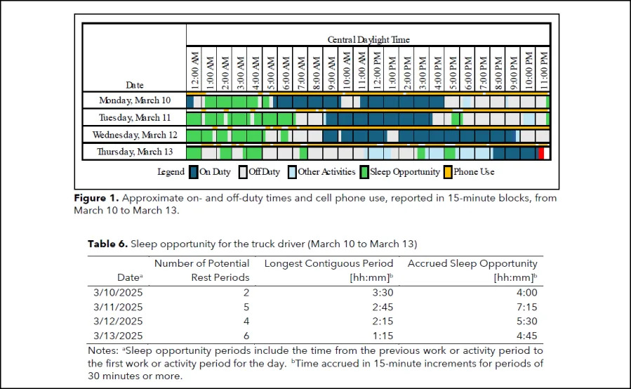 AUSTIN (KXAN) — The truck driver in a March 2025 crash that killed five people on Interstate 35 in north Austin was not under the influence of drugs or alcohol, but may have had little sleep before the crash, according to a new report from the National Transportation Safety Board (NTSB). One year after the crash that killed three adults, a child and a baby, the NTSB’s new report shows granular detail of Solomun Weldekeal Araya’s actions in the days before, including his mobile phone use, opportunities for sleep and a trip to an urgent care facility. PREVIOUS: ‘It was hard to see this’: Bystanders help after fatal 17-vehicle crash The crash happened at 11:20 p.m. on March 13, 2025, on I-35 between Parmer Lane and Howard Lane and involved 17 vehicles. In addition to the five people killed, 11 others were injured. The initial crash investigation was done by the Austin Police Department. The NTSB compiled data from Araya’s cell phone and electronic systems in his truck to create a timeline of his movements between midnight March 10, and 11: 30 p.m. March 13, 2025. The agency divided Araya’s time into four categories: on-duty, off-duty, other activities and sleep opportunity. The report included a graph that showed time spent on each category, with an overlay showing the times where Araya was likely using his cell phone. PREVIOUS | Stretch of I-35 in Thursday night’s crash has seen 14 traffic fatalities since 2022 Based on its analysis, the NTSB said Araya had the following total opportunity for sleep in the days leading up to the crash: March 10: 4 hours of sleep opportunity periods March 11: 7 hours, 15 minutes of sleep opportunity periods March 12: 5 hours, 30 minutes of sleep opportunity periods March 13: 4 hours, 45 minutes of sleep opportunity periods The NTSB said “sleep opportunity periods” refer to the time from the driver’s last known activity — including driving or using a mobile phone — to the next period of activity. The report says Araya’s phone turned “on” one minute before the crash, but the phone did not show specific activity at the time of the crash. PREVIOUS: Fatal I-35 crash: NTSB provides second update on its investigation The report also says Araya visited an urgent care clinic around noon on March 13 for “preventative screening for infectious disease.” In a statement, Araya’s attorney, Bristol Myers said, in part, “The NTSB report reinforces that this was a tragic accident, not a crime.” Myers added that, at the time of the crash, Araya had a valid CDL Texas driver’s license and the truck was properly maintained, Araya did not have any known health issues and Araya was not found to be under the influence of drugs or alcohol at the time of the crash. “He was not drunk. He was not high. They tested his blood for everything they could. It was clean,” Myers said. “They examined his cell phone. At the time of the accident, he was not on a call, not texting, and not using social media.” “Nothing in the NTSB report suggests the kind of ‘conscious risk creation’ required under the law to prove recklessness,” Myers said. The NTSB report said testing of blood samples obtained during APD’s investigation of the crash “did not detect the presence of alcohol or other drugs.” In addition to information about Weldekeal-Araya, the trucking company and road conditions, the report also contained about 100 pages of interview transcripts with victims. I-35 crash victim spent 25th birthday in a coma, attorney says It appears these individuals featured were not too seriously injured, because the interviews are dated within a week of the crash. These drivers all shared their experience of the moment of the crash and shared a similar narrative of the collision happening suddenly as cars were either stopped or at a near stop in the construction zone. Below are excerpts from these interviews. “We were just rolling and all of a sudden I just hear a bang, and then I had looked up and I see another bang, and then all I see is this 18-wheeler just trying to stop, but just plowing through cars.” “It was coming like full speed, striking everyone on the back of my truck, left side of my truck and the one in front of me and he kept going.” “It was like a shark attack, you know, all of a sudden it was just — there’s nothing and then allof a sudden, you know, just the crash.” Solomun Weldekeal Araya faces five counts of manslaughter and 17 aggravated assault charges – all felonies. His next court setting is set for May 4. Several lawsuits are also active. The full NTSB report, which will include a “probable cause” of the crash, has not yet been released. Copyright 2026 Nexstar Media, Inc. All rights reserved. This material may not be published, broadcast, rewritten, or redistributed. For the latest news, weather, sports, and streaming video, head to KXAN Austin.
