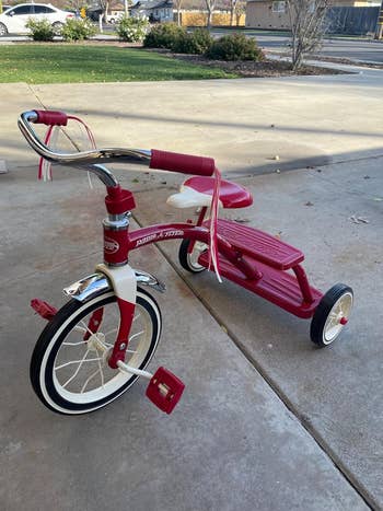 We hope you love our recommendations! While every product is independently chosen by our editors, BuzzFeed and our publishing partners may collect a share of sales or other compensation from the links on this page. You can read more about how our affiliate partnerships work in our Editorial Standards & Ethics Guide. With warmer weather finally on its way, you better believe I'm kicking my front door wide open, grabbing my tiny gremlins, and heading out to the park. If you're anything like my family (and I'm sure you are), you know that more time outdoors = and less time away from the pile of kids toys in your living room. Instead, you'll be chasing your kids as they speed away on ride-on toys and tricycles. If you're in the market for your kiddo's first trike — look no further! From an affordable Bluey tricycle and iconic options from Radio Flyer to the splurge-worthy Doona Liki Trike that'll grow with your kids for years, I'm here to help guide you in the right direction (which is, hopefully, the same one your toddler is currently running in.) This trike is a great starter option for your little one! In addition to its exciting light-up wheels (no batteries needed!), it features a three-position adjustable seat and a two-position handlebar lift to ensure kiddos can get the perfect fit. Not to mention, it has detachable baskets in the front and back, so they can stash their precious snacks or take their beloved plush toy along for the ride. It's also only 6.6 pounds, so when they inevitably ditch it to run across the playground, you won't be left with an aching back. Reviewers have also noted it's not difficult to put together — always a bonus! Promising review: "Ridiculously easy to assemble! Great directions, and a solid product for the price! Our nephew loves it and was immediately mesmerized by the lights on the back wheels! Definitely recommend!" —coralreef Get it from Amazon for $49.99+ (available in seven colors). You're never too young to get your first Harley-Davidson, right??? This one can hold up to 55 pounds, has a sturdy frame and durable tires, and a secret storage compartment in the seat. Kiddos will love riding up and down the block like they're starring in a kid version of Sons of Anarchy. My son actually got this bike as a gift a few years ago and at age 4 is still a fan! Promising review: "Such a sick little trike. My 6-year-old can ride regular bicycles but loves powering around on this in the backyard, screaming, 'How do you like the sound of my pipes?!' Adding the stickers to the bike is also a good little kids’ activity. Reasonably sturdy, but wouldn’t risk a heavier older child on it. Hopefully, the 2-year-old will be able to reach the pedals soon, as it’s light enough to be powered by a tiny person. Colors are traditional Harley, and the little storage under the seat is a cute touch. Recommended buy!" —rizalvaro To infinity and beyonnnnnnd — or at least around the block! Your toddler will love jumping right onto this trike and pedaling around the neighborhood alongside their bestie, Buzz Lightyear. There's even a button on the handlebars that'll play familiar phrases and sounds from Toy Story! This bike is ideal for younger kiddos, think ages 18–36 months. Promising review: "My kid is obsessed with Buzz right now, so when I saw this, it was a must-have, especially being at a great price. It was easy to assemble, and I had a hard time getting him inside because all he wanted to do was ride up and down the sidewalks! Great purchase!" —Cfrancis21 A trike for less than $30? Is this "for real life?" as Bluey would say. IT SURE IS! Your tyke will be over the moon excited to ride around on this tricycle — it has a bunch of cool sound effects from the show and can be assembled without tools. It also has an extra-wide front wheel to help keep them nice 'n' stable as they galavant around the neighborhood. Promising review: "Easy to put together. My little one loves this little trike, and it’s so affordable for a Bluey-themed product. We were excited to get our hands on this!" —Ashly This cute starter trike was clearly made with first riders in mind. It weighs only 5.25 pounds, has a supportive backrest, and soft, easy-to-hold handles. It can be used indoors or outdoors, luckily for you, since the second your kiddo gets on this bike, they're not going to want to get off. Promising review: "I Am Trike is a great first trike for any baby or toddler out there. I love that it has an inspirational quote on it. It was easy to assemble and seems very sturdy. It rolls great on the carpet and hard tile floor. I love that it boosts confidence in those just starting to walk that may use it as a walker, and also those that are better at walking, who can use it as a trike to ride on. It's the perfect size." —Valerie02 Get it from Walmart for $30+ (available in four colors). Honestly, when I think of "tricycle," I think of this exact bike from Radio Flyer. You simply can't go wrong with this iconic red trike! The brand has been around since the '50s, so you know you'll be putting your money in good hands. This classic trike has an all-steel frame, spoked wheels, comfy handgrips, and reliable rubber tires. Promising review: "This tricycle is of the same quality and construction (all metal) as it was in the '50s and '60s. I bought it for my 3-year-old grandson, and he loves it! It was so easy to assemble; he could have done it himself. I highly recommend this product." —Jesse E. Get it from Amazon for $69.99+ (also available in pink). This Radio Flyer trike (an Amazon exclusive!) is exactly what you want if your kiddo typically likes to ride in public places like playgrounds or parks. It features quiet-ride wheels (lovely!), an adjustable seat (to grow with your kid), a covered rear storage bin, and an easy-to-carry seat back handle. It's made from steel, so it'll definitely stand the test of time. Promising review: "The Radio Flyer Red Rider Trike is exactly 