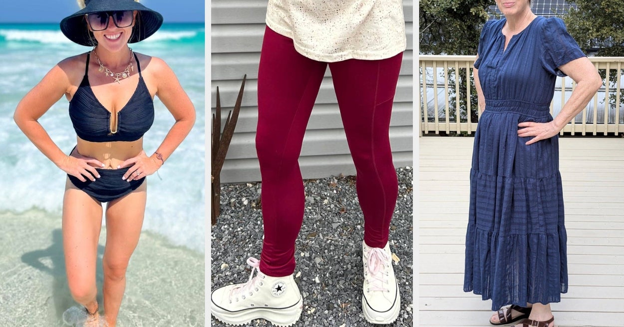 We hope you love our recommendations! While every product is independently chosen by our editors, BuzzFeed and our publishing partners may collect a share of sales or other compensation from the links on this page. You can read more about how our affiliate partnerships work in our Editorial Standards & Ethics Guide. ~Spring~ into a new season of fashion with a new sundress or lightweight blouse. Unless otherwise specified, all sizes in this post are listed in women's. Promising review: "OMG!!!!!!!! I have many leggings, but these may very well be my favorite ever!!!!! They are buttery soft, stretchy but not loose, have large pockets, and feel very sturdy and fit like a glove!!!!! I need a pair in all my favorite colors, and then I can throw the other brands away because these are it!!!!" —L. Stynnett Price: $8.99+ (available in sizes S–4XL and 37 colors and patterns) Promising review: "Soft and comfortable! Love that they have pockets, so I have somewhere for my phone. Price is great, and the stitching is good." —Mary Price: $7.98+ (available in sizes S–4XL and 17 colors) Promising review: "This is a great casual dress that can be dressed up with heels and a cardigan or dressed down with sandals for a casual lunch. Fits nice, love the pockets." —alltimeshopper Price: $17.98+ (available in sizes S–XXL and 22 colors and prints) Promising review: "Super cute and comfortable. The material is nice and breathable. Very nice top to wear to work or just going out." —Leanna R Price: $14.98+ (available in sizes XS–4XL and 27 colors) Promising review: "10 out of 10 LOVE these barrel jeans! I've tried a few others now, and none of them seem to look great. But these really hit the mark for me. They are super soft (not rough) but are durable, not see-through." —SERE Price: $41.99+ (available in sizes XS–XXL and 17 colors) Promising review: "I am someone who HATES bathing suits, I just don’t feel confident in one and haven’t found one I really love, until I ordered this. It’s so comfortable and sexy, while providing full boob and butt coverage. This is the first swimsuit I really love and feel confident in. I’ve worn it seven times so far, and this is going to be my go-to swimsuit now." —Demi Price: $35.99+ (available in sizes XXS–XXL, 18–24 Plus, and 31 colors) Promising review: "Not even kidding when I say this, hands down the best bathing suit I have EVER owned!! I came back to order more colors and leave a review, which I never do. I promise you won’t be disappointed. Order it!! It tops my $140 one. It fits perfectly and is true to size. I’m usually a small and ordered a small and it’s perfect. Super soft material, amazing color, and the top is like a push-up bra, nice, perky support. This will make you feel so confident and comfortable!! OBSESSED!!" —Amazon Customer Price: $33.99 (available in sizes XS–XXL and 23 colors) Promising review: "I love this shirt! I get so many compliments on it every time I wear it!!! It’s a win-win because there are no worries about tucking it in or letting it hang! It’s so soft and cozy, and the knot is perfectly placed to go along with anything you want to wear with it! It can dress you up or just make you look so cozy and comfortable, yet stylish!!! And the price and the quality are amazing!!! Washes well and is true to size. You cannot go wrong with this shirt!!! I plan on buying one in every color!!!" —Kimberly Price: $14.99+ (available in sizes XS–XXL and 35 colors) Promising review: "These are the most comfortable shoes I have. I prefer them over tennis shoes and over my Brooks. I wear these almost every day. I love the way they look and feel. So easy to wash. A quick rinse makes them clean so quickly. I take them when I need to walk a lot for long periods of time. So so incredibly comfortable. 💚" —Mari Ontiveros Price: $25.21+ (available in sizes 4–11 and 21 colors) Promising review: "So cute for the price! Fabric is nice and hangs well. True to size. Liked it so much for look, quality, and feel that I ordered a second in a different pattern." —JB Price: $14.98+ (available in sizes S–XXL and 16 colors and prints) Promising review: "I wore this shirt on a trekking trip in the Huayhuash mountain range in Peru, and it performed amazingly — breathable, light, and super comfy even during long days of hiking. Highly recommend if you’re looking for a basic but well-fitting shirt for both everyday use and outdoor adventures. It fits perfectly. The fabric is very comfortable, especially around the neck and underarms, where some shirts can feel tight or scratchy. I also love the length: it’s just right, not too short or too long." —Melanie Wong Price: $14.99+ (available in sizes XS–XXL and 35 colors) Promising review: "So freaking cute! It’s comfy and lightweight, and perfect for everyday wear! Definitely gonna repurchase in a different color!" —Melanie Ochoa Price: $16.60 (available in sizes XS–6X and 26 colors) Promising review: "Love, love, love this top! This is my third one, and I can't say enough about them. Dress it up or down, washes great, and you can't beat the price." —Amazon Customer Price: $14.99+ (available in sizes S–XXL and 30 colors) Promising review: "These pants are so incredible, I ordered three colors. They can be dressy or casual. The waist is stretchy but holds tight. It’s my goal to have every color. Do your body a favor and get these!" —Abbey Jordan Price: $19.99+ (available in sizes S–XXL and 25 colors) Promising review: "I have bought three colors now! I love this tank, so soft and comfortable, and good quality for the price! A perfect length. Great for low-impact workouts or everyday wear! Washes well and hasn’t shrunk!" —Ktsm1th Price: $13.49+ (available in sizes XS–XL and 33 colors) Promising review: "I absolutely love these jeggings! I purchased the light wash and am probably going to get the navy and khaki, too. I read the reviews and saw these 
