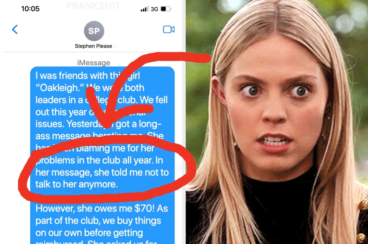 "She has been blaming me for her problems all year. In her message, she told me not to talk to her anymore. However, she owes me $70." ❗ I have no clue WTF to do post-graduation.