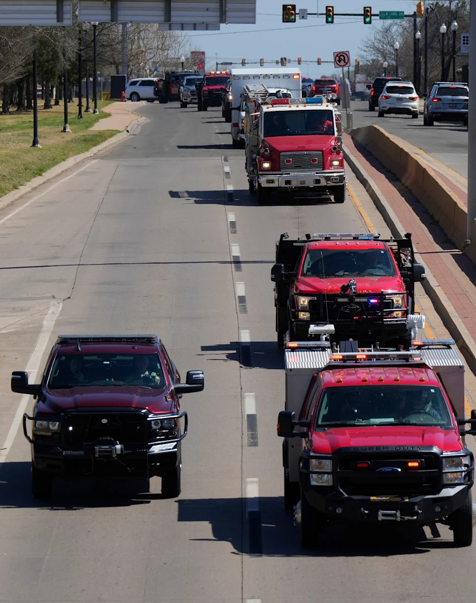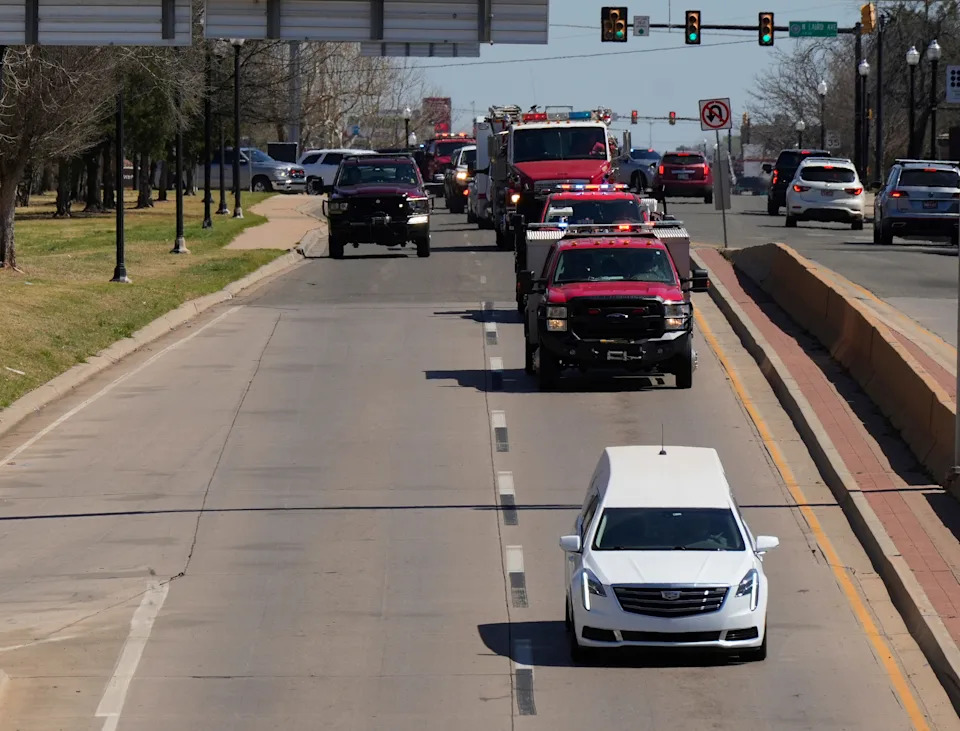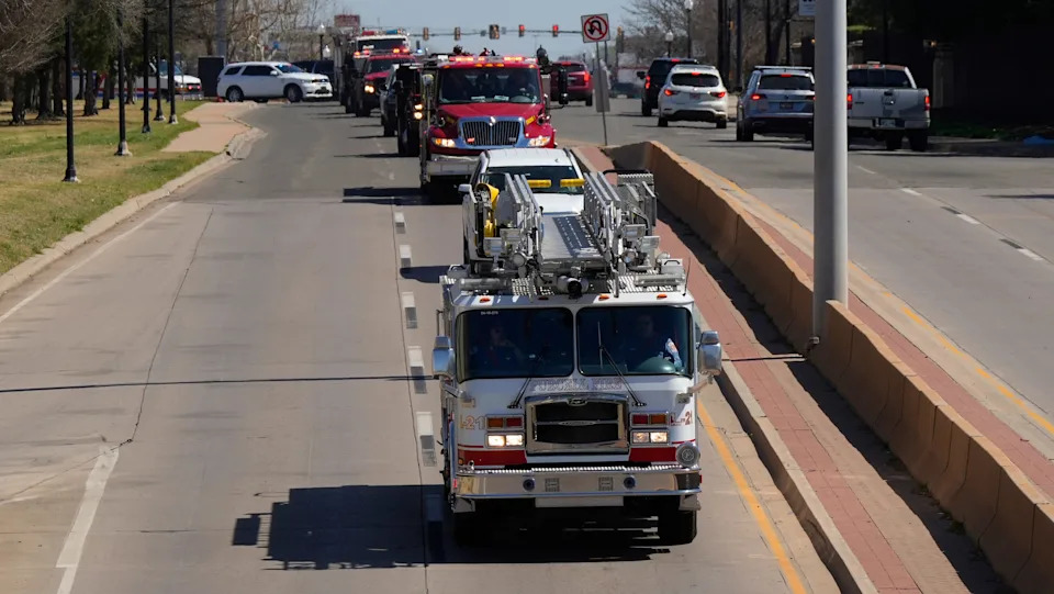 Two Goldsby volunteer firefighters died early Friday, March 20, while responding to a structure fire in McClain County, the Oklahoma Highway Patrol has confirmed. The OHP said they responded to a call at 3:17 a.m., where a Goldsby Fire Department tanker had overturned and struck a tree. The truck was eastbound on Redbud Road when the crash occurred around SE 12th Avenue. OHP confirmed the victims as Bryan Jenkins, 63, who served as fire chief of the Goldsby Fire Department, and Todd Pendleton, 62, a longtime journalist with The Oklahoman. The Town of Goldsby shared on Friday morning the news of the deaths. "The loss of these individuals is devastating to our town and the entire firefighting community. We ask that you please keep their families and our first responders in your thoughts and prayers during this unimaginably difficult time," the town shared on Facebook. Friday afternoon, a processional of fire trucks and police vehicles escorted the fallen firefighters from the medical examiner's office in Oklahoma City through Goldsby to funeral homes in Purcell, Oklahoma. American flags waved along both sides of Goldsby's Main Avenue as friends and family gathered to pay their respects. Goldsby is a tight-knit community, many of the spectators said as they watched the processional travel by, and the loss of Pendleton and Jenkins will be deeply felt. Ronda Farrow, widow of another fallen firefighter, carried a sign reading "5555," which references the longstanding tradition of signaling five measured dashes four times when a firefighter died in the line of duty. "When I lost my husband, they were the first ones that knocked on my front door. So this is close to home," Farrow said. "My heart goes out to them and their families." Cary Bryant, McClain County Sheriff's Office deputy and public information officer, said that the loss of Pendleton and Jenkins is a hard hit for the community. "These two veterans are friends and family of people who live here and other firefighters. A volunteer fire department is a very close-knit community in itself, and when you lose one, it's horrible. When you lose two, the pain isn't even double; it's worse than that," Bryant said Friday afternoon. Pendleton was a 12-year veteran firefighter and EMT in his hometown. In addition to his volunteer work, Pendleton was a graphic journalist for The Oklahoman, where he had worked for nearly four decades. He is survived by his wife of nearly 40 years, Robyn, three sons in their 30s, Ethan, Evan and Erik, and five grandchildren. "We are devastated by the loss of Todd and his colleague, Chief Jenkins," said Ray Rivera, executive editor of The Oklahoman. "Todd loved his work as a firefighter, and, as a journalist, he was one of the most talented, kindest people any of us have ever worked with. Our hearts go out to both families." Pendleton graduated from the University of Oklahoma with a degree in commercial art and worked for a time as a freelance artist. More: See some of Todd Pendleton's latest political cartoons, art in The Oklahoman He joined The Oklahoman in 1988, working first in the advertising art department. He transferred to the editorial department a year later, where he worked on illustrations and cartoons for the opinion and news pages of the paper. In 2004, he was named art director. "There are many bylines and photo credits throughout The Oklahoman everyday. But a name you might have missed was Todd Pendleton. Behind beautiful graphics, you would see Todd's name in small letters. He brought light, color and context to the newspaper," said Kelly Dyer Fry, former editor and publisher of The Oklahoman. "He was beloved by all. On a regular basis, Todd would come to work after spending a long night as a volunteer fireman. He never missed a beat in his job. No matter what you asked of Todd, his answer was often 'Let me see what I can do.' Then he delivered." Pendleton also taught a Graphics in Journalism class as an adjunct professor at the University of Oklahoma from 2010 to 2014. He was one of the pioneers in making the transition from hand-drawn art to digital illustration and graphic design. Bryan Jenkins, 64, served in various capacities in Norman, Cleveland County and McClain County. Jenkins began working for Cleveland County in 1987 and further managed the fairgrounds starting in 2014. "He was a public servant full of courage, professionalism, and an unwavering commitment to those around him. He was also a dedicated first responder who served with courage and honor," said Alysa Moore, director of communications with Cleveland County. Jenkins was a retired firefighter before volunteering for the Goldsby Fire Department as fire chief, with 35 years serving as a firefighter. He graduated from Norman High School and received a business degree from Rose State College. He is survived by his wife, Sandy, and their three children, Brittany, Brandy and Brent, and two grandchildren. "These firefighters have spent their lives in the service of their community. They served alongside their family, friends and neighbors. We in the Town of Goldsby mourn their loss and honor their memory," the town shared on Facebook. This article originally appeared on Oklahoman: Two Goldsby firefighters killed in tanker crash include Oklahoman journalist