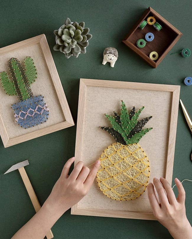 We hope you love our recommendations! While every product is independently chosen by our editors, BuzzFeed and our publishing partners may collect a share of sales or other compensation from the links on this page. You can read more about how our affiliate partnerships work in our Editorial Standards & Ethics Guide. Especially if you are like me and are on re-watch 20 of Big Bang Theory — it might be time for a hobby. In addition to the 40 colorful bundles of felt, this kit comes with felting needles, scissors, bells, protective finger cots, foam pads, stencils, and even plastic eyeballs so you can create tiny fur friends! Promising review: "So I have always been intrigued by needle felting, but I thought it would be much harder, so I never looked into supplies. This craft is SOOOO fun to pass the time and keep your hands busy. This little kit was so perfect for beginners and for the price!!!!? Perfect." —Tali Get the 40-color set from Amazon for $26.99 (also available in two smaller sets). The kit comes with a crafting board, small hammer, a holder, nails, glue, screws, cotton string, a frame, a pattern, and a detailed instruction manual, so there's no need to buy other supplies. Promising review: "These instructions are easy to follow — I finished it in two hours. This was so much fun and I love my finished results! It looks so beautiful. It was a gift for my friend. I would buy it again and recommend it to others." —yuyantan Get it from Amazon for $23.99 (available in five styles). Rita Papers is a small business that specializes in personalized poster sets, stickers, and journaling supplies. Each pack varies in the specific stickers, posters, and construction paper you get, which honestly makes it more fun in my book! It will be a nice surprise to open. Promising review: "My package arrived today, and I'm over the moon!! The quality of the stickers is amazing, and you get a great variety for different aesthetics. My favourite would have to be the free sheet, it's very autumnal vibes. This would make a fabulous gift for anyone who loves to journal or craft. I would love to see Rita make customisable bundles in the future and will 100% be ordering from her again. 🩷" —Cassiopeia Jewellery Get it from Rita Papers on Etsy for $19.12+ (available in medium or large packs). Promising reviews: "This was my first sticker by number book. It was so fun and addictive to finish each one. I showed family and friends and they all ordered one. The photos of the flowers were so beautiful and following each piece was very easy. Highly recommend for a fun activity on a road trip or for just something extra to do while watching TV." —Nichole "I’m a young adult who spends a lot of time in the hospital due to bad health issues. Most of the time, it’s nerve-wracking and very boring. I ordered this little book to take with me for next time, and I was very happy with it! It kept me busy and calmed my nerves. It was easy to do and therapeutic. I like the variety of pictures!" —Cherry Promising reviews: "Plenty of stones. I like these small projects so that I can complete them in my lap while watching sports." —Bobbi Kirk "When my granddaughter comes, I always buy her a craft for how to sit and do. She absolutely loves this. Kept her busy for hours and very inexpensive." —Arlene Get it from Amazon for $8.99+ (available in 10 designs). Each piece is 12x16 inches. The kit comes with 12 images, color-coded gems, a single-tip diamond painting pen, a small tray, and wax. The pen holds a small piece of wax to help you grab the individual gems. Each canvas comes coated in a sticky adhesive protected by a clear film. Because that's how the gems stick on, I recommend peeling it off a little at a time as you go to preserve the adhesive, so you're not left with a picture covered in dust and dog hair. Promising reviews: "Bought it over a year ago, I do them every so often when I’m bored and they’ve lasted me this long. They’re fun, something to do while watching my shows, there’s always left over gems so they’re nice for other things too. I’d get larger pickers cause it’s slow without but I didn’t mind much. Very pretty, shinny, the stickiness is good, it’s enough that they stay but if you need you can pry gems off or push them around" —customer "First time I ordered something like this, and I'm glad I started with this one. The pages are large, and you get 12 of them, which should last me probably two years. I haven't had this much fun doing something in a long time. I don't wanna stop. I don't know what it is, but there is something satisfying about dropping little gems on the sticky paper. I can't wait until I finish my first one." —Female in Rochester NY Promising reviews: "This is exactly what I was looking for! It lays flat to easily complete the word search and not have to fight with the book. There are different types of puzzles, and some have extra secret searches! It’s great for the slow days at work!! I will definitely be buying more of these word searches!" —Roy Y Hahn "I really appreciate having puzzle books around when I’m feeling anxious. It’s a quick activity I can turn to when needed or even on a cozy night when watching a movie. The price for these was on point. It kept me busy for a few months before I made it through the book. I also appreciated that it was spiral so I could fully open each page! Would buy again in another variety from this brand!" —Cannon Fam Promising review: "I love it! It’s so fun and nice to have and keep my hands busy while watching TV with my partner. The paper is thin, so you have to put something between the pages to keep it from bleeding, but it says that at the beginning of the book. Highly recommend for a self-care-crafty item!"—Erika Jorren Get it from Amazon for $9.99 (also available in a spiral-bound version). Promising review: "I love this book. I pre-ordered after seeing it on TikTok and couldn't wait to get i