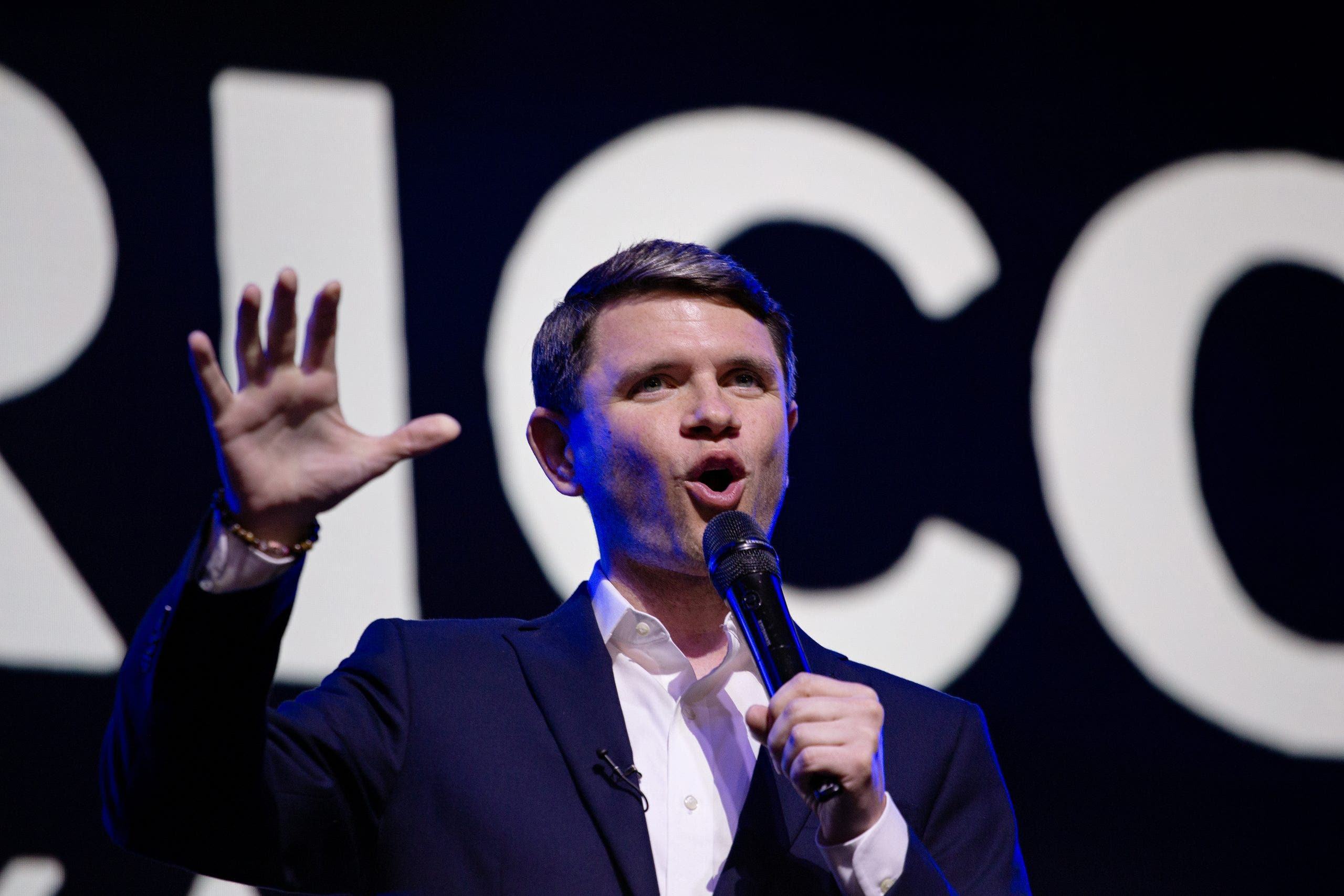 An unearthed 2022 clip of Texas Senate candidate James Talarico urging voters to scale back "meat consumption" went viral on Tuesday. (Mark Felix/Getty Images)