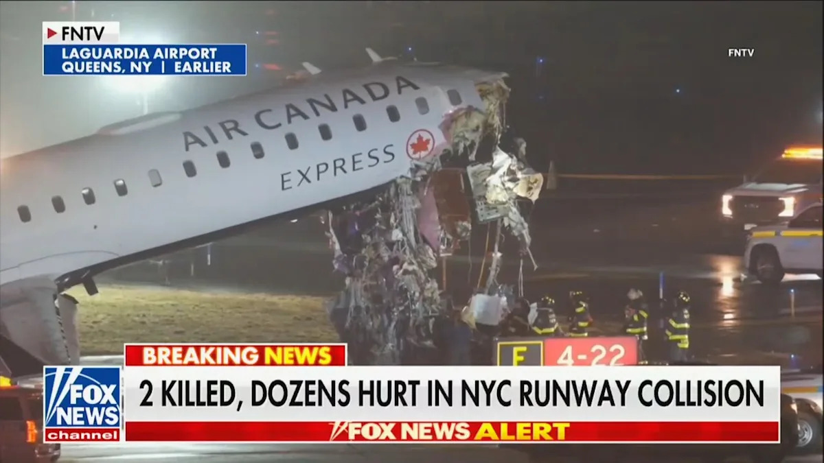 A beleaguered air traffic control officer was heard saying, “I messed up,” moments after an Air Canada passenger jet collided with a fire truck on the runway at New York’s LaGuardia Airport late Sunday, leaving two pilots dead. The terrifying accident occurred as the fire truck was making its way to a United flight reporting an odor in its cabin that left flight attendants feeling sick, according to CNN. But as the truck attempted to cross a runway, a landing Air Canada jet crashed into the vehicle. Audio of the LaGuardia tower circulated hours after the crash, with an air traffic controller in the LaGuardia tower telling the fire truck, “Stop, stop, stop, stop, stop, stop. Stop, Truck 1, stop. Stop, Truck 1. Stop.” A longer exchange was revealed on Monday morning, with one of the controllers heard saying, “I messed up” moments after the crash. “Frontier 4195, I got the word that we’re going to be closed for a little while,” one official is heard saying. “Uhh, if you want to prepare to return to the ramp, let me know.” “Yeah, we got stuff in progress [inaudible],” said another. “That wasn’t good to watch.” “Yeah, I know. I was here,” the air traffic controller said. “I tried to reach out to them. I stopped. We were dealing with an emergency here earlier. I messed up.” One of the voices then tried to comfort him. “Nah, man. You did the best you could.” The plane’s two pilots were killed as the nose of the aircraft was crushed on impact. Numerous others were injured. LaGuardia Airport was closed as a result of the incident, with the FAA confirming that no flights would depart or arrive until at least 2 p.m. ET on Monday. Watch above via Fox News. The post ‘I Messed Up’: Air Traffic Controller Heard Admitting Blame for Deadly LaGuardia Runway Crash first appeared on Mediaite.