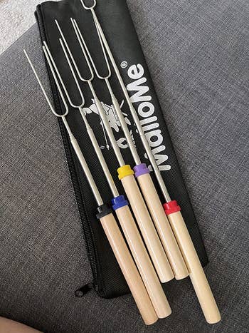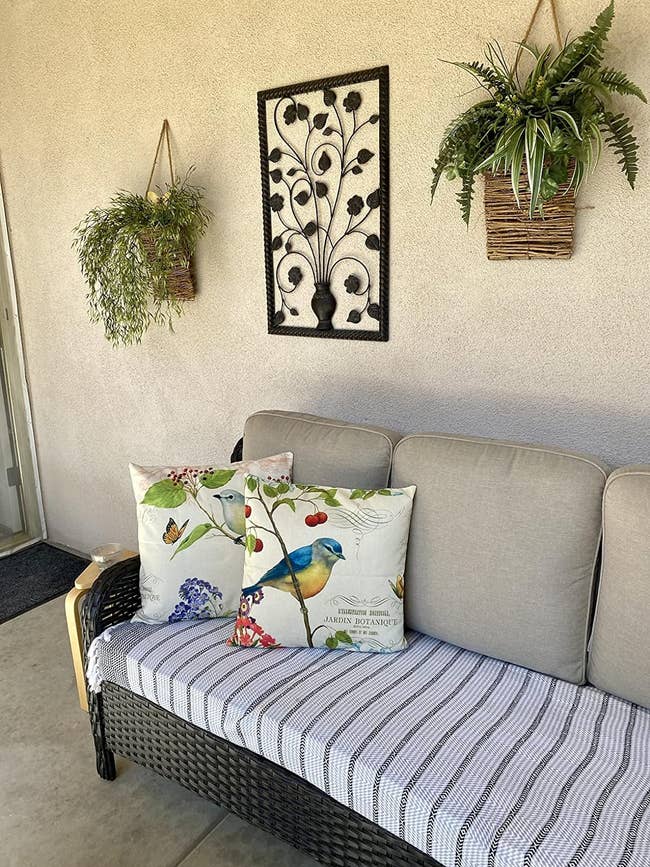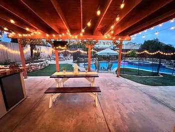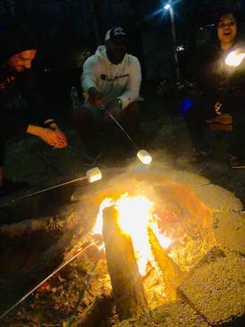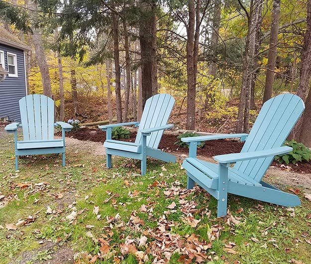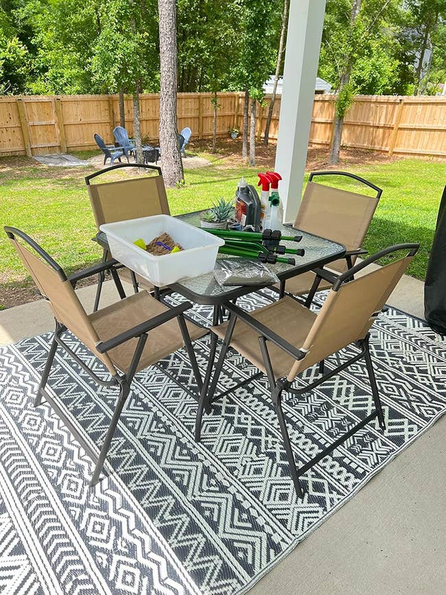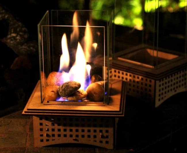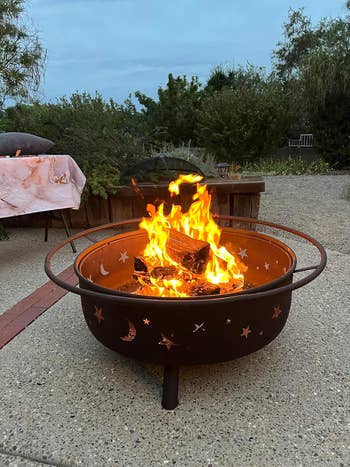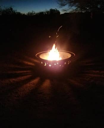 We hope you love our recommendations! While every product is independently chosen by our editors, BuzzFeed and our publishing partners may collect a share of sales or other compensation from the links on this page. You can read more about how our affiliate partnerships work in our Editorial Standards & Ethics Guide. This stunning, cosmic-themed firepit is ready to be the centerpiece of your backyard parties. Reviewers note that you should remove the bulbs before stringing up the strands and then install the bulbs. Promising review: "I am loving my new lights! Just got them up in time for hanging out on the back deck for springtime. They give a great outdoor cafe feel to my back deck. I advise purchasing extra light bulbs when purchasing these lights. It comes with one extra, but they are extremely fragile/delicate. We ended up breaking four total during the hanging process." —charlee harris Get 25-foot strand from Amazon for $19.99+ (available in four styles and seven lengths). Since these are solar-powered, you'll need to place them in the sun to get them to light up. Five to eight hours of sun exposure will work if you want roughly eight hours of light. And if you don't want to do that, no worries, because they have a spot for an optional battery if you'd rather power them up without the sun. Promising review: "I purchased these solar lights last weekend for my front porch space redo, I absolutely love them! They are high-quality, and work great. I like that they have an on/off switch on the underside of the lid, so I can turn them off when I’m finished using them for the night. I’m very happy with my purchase and will definitely recommend these to anyone." —Deb It comes with two chairs and a small matching glass table. Promising review: "Exactly what I was looking for. Construction seems sturdy. Dimensions and style were perfect for the small patio space I was looking to get use out of, and the egg shape of the chairs is very comfortable. I paired them with a seagrass outdoor rug, faux fur chair pads, a beanbag-style poof footstool, and some boho throw pillows, and I love how the space was instantly transformed. I highly recommend this set." —Baby blues Get it from Amazon for $164.99+ (available in four colors). Don't have any pillows on hand? No worries, you can buy a set of these hypoallergenic pillow cushions to get started on your patio update. Opt for cushions two inches bigger than your covers for the fluffiest effect (so 20x20 inserts for 18x18 covers, for instance). Promising review: "These are some of the best outdoor pillows we've had. They're not super soft but I don't expect that in an outdoor pillow. But they are beautiful and durable, which is what counts! I'd definitely buy them again." —Amy B Get a set of four 18x18 covers from Amazon for $14.99+ (available in five sizes and 17 designs). It's super easy to clean — just wash it off with the garden hose if it gets dirty, and it'll dry in no time! Promising review: "The first thing I noticed about this rug is that the color is exactly what I expected based on the seller's photo. This feels like a high-end outdoor rug. I put my yoga mat on top of it and do yoga on my deck, and I can comfortably be on my knees without any pain. This rug adds a nice cushion to my deck in a seating area where we often go without shoes. The rug feels good on your feet. I have cleaned the rug with mostly just a broom; however, I hosed the pollen off during the spring, and it dried quickly. The material stitching on the rug's edges looks like it can hold up to heavy foot traffic over time. I have had it for several months now, and there is no fraying at all." —Antoinette Get an 8x10 rug from Amazon for $79.89 (available in eight sizes and seven colors). It has a range of up to 1,500 square feet! Promising review: "Usually if I am outside with a group of people, the bugs come hunting for me, and nobody else gets bitten if I am in the area. I got tired of putting on bug spray every time I go out on the patio, so I bought this to try, and it has made a huge difference. I turn it on for a little bit every night, even if I am not outside, and you can hear and see it doing its thing, and now I can sit out back and have no bug spray and nothing bothers me. Very effective product. On the recommendation of some other reviews, I also purchased a Black Flag Octenol Lure to help attract even more bugs, and I think it helps too." —Todd F It's made of thick durable steel and covered with rust-resistant, high-temperate pain. And the effect of the light shining through the moon and stars at night? Stunning. Promising review: "Got this as part of our backyard renovation project. Shipping was super fast, received it earlier than expected. Large firepit, super easy to assemble. It’s a sturdy piece! I read the reviews and decided to take some precautions — we drilled three drain holes at the base, fast and easy to do. We also bought a cover just in case. Used it the same day during a chilly NC night to watch an outdoor movie with friends and blankets in the backyard. Worked amazingly and kept us toasty. Love the cutouts! Friends asked where we got it all night. Would recommend to anyone!" —Isabel A bit of assembly is required when you first unpack this mini fireplace, but the pieces snap together pretty easily. You'll just need to provide your own fuel (this three-pack of Sterno cans from Amazon will work just fine), and you can buy it with or without sand and rocks (which come with the deluxe kit). The sand is needed to protect the wood base from direct heat, so you'll need to use some of your own if you don't get the deluxe kit. When not burning a fire, you can also just use this as a holder for a regular candle! One Man One Garage is a small business based in Nashville that was founded in 2013 and offers artisan designs, many of which also make great gifts! Promising review: "Absolutely beautiful! I bought this for a friend, and she had a