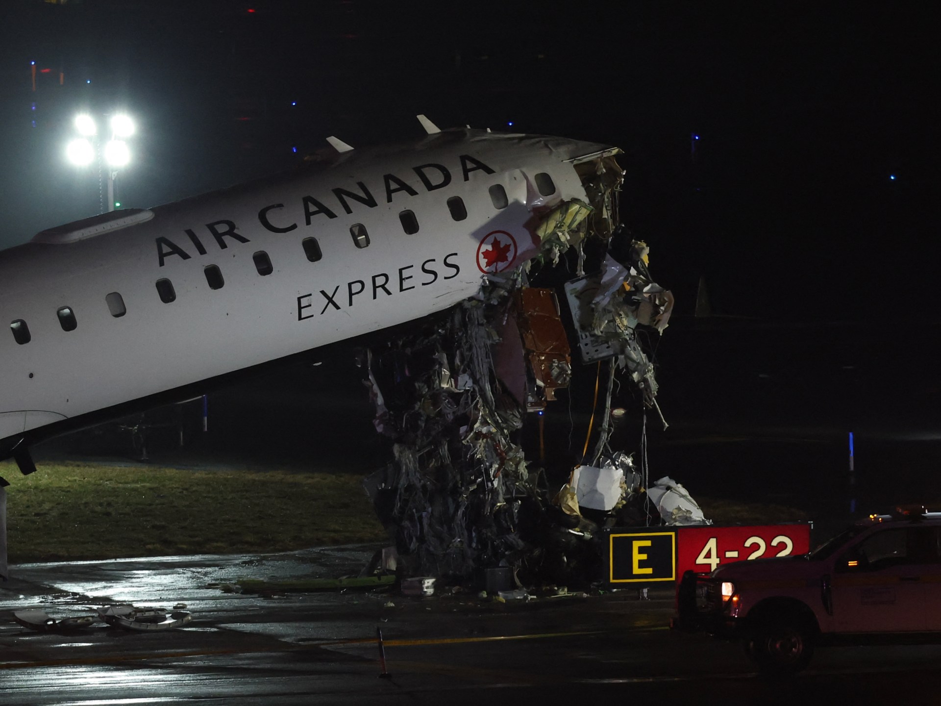 The incident occurred while the Air Canada Express flight 8646 from Montreal was landing at New York’s LaGuardia. Save Share An Air Canada Express flight 8646 from Montreal has struck a ground vehicle while landing at New York’s LaGuardia, leading to the airport’s closure. The New York police told the AFP news agency on Monday that the Air Canada plane “collided with a port authority vehicle”. Separately, the fire department said it had “responded to a reported incident involving a plane and vehicle” on runway four. Air Canada in a press release said the preliminary passenger list indicates the plane was “carrying 72 passengers and 4 crew members, although this is subject to confirmation”. The incident occurred at 11.47pm (0347 GMT) local time, it added. The CRJ-900 aircraft struck the vehicle on Sunday evening at a speed of about 24mph (39km/h), flight tracking website Flightradar24 said. It was operated by Jazz Aviation, Air Canada’s regional partner. The United States Federal Aviation Administration (FAA) issued a ground stop for all departures to LaGuardia due to the aircraft emergency, with the airport closure in effect until 05:30 GMT. The probability of an extension was listed as high. The FAA notice stated that the airport halt was due to an emergency and that there was a high probability of an extension, providing no further details. Unverified footage on social media showed damage to the plane’s nose as it tilted upwards. The Reuters news agency could not immediately verify the footage. LaGuardia’s website showed arriving planes had been diverted to other airports or returned to their point of origin. In a separate notice to airmen, the FAA said the airport could be shut until 18:00 GMT. New York’s emergency management authority warned people to “expect cancellations, road closures, traffic delays & emergency personnel” near the major transport hub in the borough of Queens. “Use alternate routes,” it said on X.