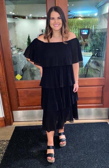 We hope you love our recommendations! While every product is independently chosen by our editors, BuzzFeed and our publishing partners may collect a share of sales or other compensation from the links on this page. You can read more about how our affiliate partnerships work in our Editorial Standards & Ethics Guide. The title of "Best Dressed Wedding Guest" will be earned if you're wearing one of these gowns... trust me. Whether you're the invited wedding guest or a plus one, are attending your work bestie's big day, or the nuptials of your third cousin twice removed (you haven't talked in a while, but it's polite to go, right?) — semi-formal is semi-formal. Meaning the attire is elegant, but not black tie. Comfortable, but not casual. And it's only right that you stick to the happy couple's request. Think strapless satin gowns, chiffon cocktail dresses, and pretty off-the-shoulder numbers. If one of the numerous wedding invites piling up on your counter has semi-formal noted as the dress code, take a look at the options below! Unless otherwise specified, all sizes in this post are listed in women’s. This breathable chiffon pleated off-the-shoulder dress has tiers that'll make you want to dance the night away just to show off how great the ruffles look when you twirl. When "I Wanna Dance With Somebody" comes on — that's your cue to work it! Promising reviews: "I got sooo many compliments on this dress, and I felt super comfortable and stylish while wearing it! I got the blue one, and it's the perfect color for the beach or a summer event. The material is lightweight, and it moves gracefully while you walk. You can wear off the shoulder or on the shoulder." —Kristy and Norris Hartog "Love this midi/maxi off-the-shoulder ruffle dress, it's perfect for spring, summer, and vacations! I personally would style it up for summer weddings too! The fit is great [and] the ruffle is definitely trending, highly recommend." —Nikita C. Get it from Amazon for $37.98+ (available in sizes S–L and six colors). A flowy floral number is a great option because, no, semi-formal doesn't have to mean structure and no fun. This dress is giving "dark romance" vibes, with just enough detail (aka the tiered skirt) to move beautifully in the wind. Impromptu photoshoot, anyone? Promising review: "Really love this dress! Super attractive and incredibly comfortable. Just the right amount of stretch. I sized down because I have a smaller bust, and it still fits my sizeable backside lol. Highly recommend!" —KaytlynR Get it from Torrid for $31.96 (originally $79.90; available in sizes 10–30). Is it just me, or is this double-lined strapless satin dress the type of gown you'd wear to step out of the limo as a Bachelor contestant? ...I guess you can also just wear it to your co-worker's wedding (whichever comes first). The back strap is stretchy too, ensuring it fits you just right. Promising reviews: "I ordered this last minute for a formal event, and let me tell you, I was pleasantly surprised! It runs true to size and [fits] you in all the right places... a MUST-BUY!" —Ryan "My new FAVORITE wedding guest dress. This dress was soooo perfect for our friend's summer wedding...The material is so thick and beautiful. I received sooo many compliments in this dress." —Amazon Customer Get it from Amazon for $49.99 (available in sizes XS–XL and in 30 colors). For those looking for something bold, this V-neck ruffle slit maxi dress will make you feel like the dance floor's disco ball with the amount of people gravitating toward you all night. Reviewers of various body types say this beauty is SE-XY, fun, comfortable, and makes them feel fantastic when they have it on! Promising review: "I would recommend this dress to every person I know. The material was super soft and stretchy. It can be worn for a formal or casual wedding. It wasn’t see-through at all and had two layers of thickness. The quality of this dress was great. Super functional for exactly what I needed." —Sydney Cordeiro Get it from Amazon for $44.99 (available in sizes S–XL and 17 colors). Bring the drama in this satin gown! It has flutter sleeves that turn into ever-flowing ruffles and a hem length that'll reach the ballroom floor. If you're looking for a statement piece, this is the one. But be warned, all statements from other guests will be of the compliment variety. Promising reviews: "RUN to buy this dress. I bought it for a wedding and honestly wasn’t expecting much as I have never ordered from Cider before; however, the dress is BEAUTIFUL. It fits perfectly, and I felt so gorgeous the whole day; I got so many compliments on it with everyone asking where it was from. It’s the perfect length, and what I love is that it actually hugs my waist, which is what some silk dresses lack. Honestly, my favorite dress that I own!!" —Cider Customer Get it from Cider for $47.90 (available in standard sizes 0–10 and eight colors, and plus sizes 12–24 in pink). This pretty chiffon maxi dress has a fun open back, billowing sheer sleeves, and a *stunning* frilled waist that brings in a soft and delicate feel to this elegant look. Get it from Boohoo for $42.40 (originally $106; available in sizes 12–26 and in colors burgundy and black). Everyone needs a midi-length satin dress with a cowl neck in their closet, but this one is budget-friendly and stunning all the same. Also, it may just be the easiest stylish outfit there is. A satin dress with sneakers during the day is edgy, but a satin dress at night? Epic! And FYI, there are TONS of pregnant reviewers who are obsessed with the amount of stretch this dress has. Promising reviews: "This dress is super gorgeous and totally worth the money! TikTok made me buy it, and it was on sale, so even better. The fabric is also really good quality." —Melanie Get it from Amazon for $32.99 (available in sizes XS–XL and in 23 colors and styles). And here's a similar plus-size version (L–5X) for $39.