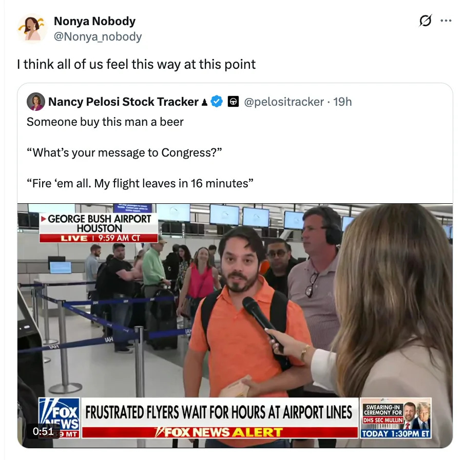Related: 43 Seriously Unsettling Small-Town Scandals And Tragedies People Still Can't Believe Happened So Close To Home Fox/pelositracker/Twitter: @pelositracker Related: 31 Horrifying Facts I Learned Against My Will And Now You Have To Suffer With Me Related: I Will Never Not Laugh At Mild Vandalism, Here Are 24 Really Funny Pics So You See What I Mean You Might Like: Just 30 Casual Pieces From Amazon For Anyone Sick Of Their Pajama WFH Uniform You Might Like: 27 Wedding Guest Dresses From Lulus For The Spring Wedding You RSVP’d To Months Ago Read it on BuzzFeed.com