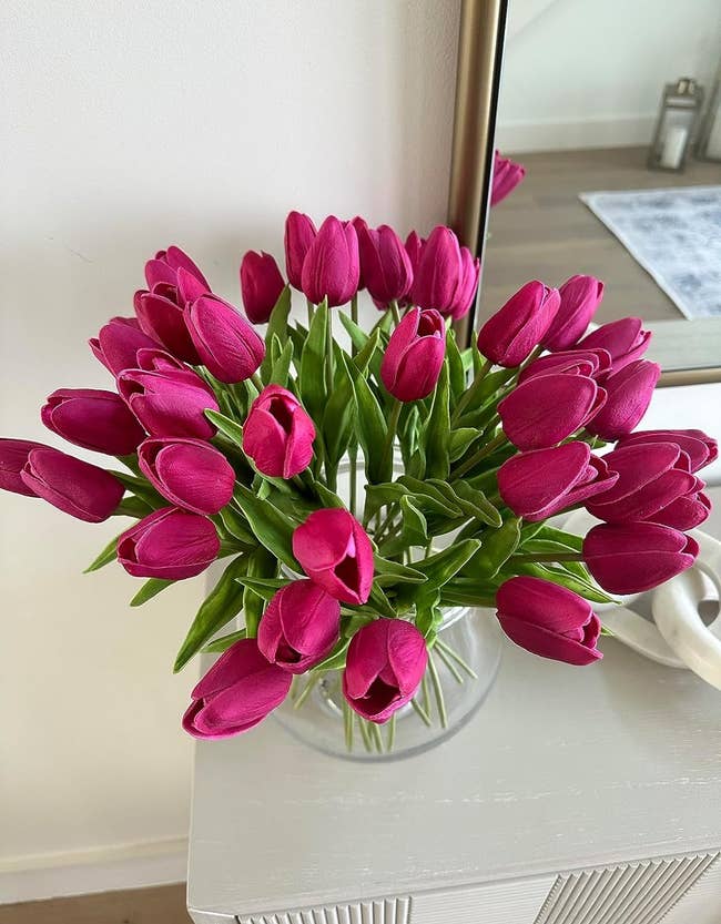 We hope you love our recommendations! While every product is independently chosen by our editors, BuzzFeed and our publishing partners may collect a share of sales or other compensation from the links on this page. You can read more about how our affiliate partnerships work in our Editorial Standards & Ethics Guide. It doesn't need to be warm outside to bring the magic of springtime into your home. Promising review: "This is a high-quality peel-and-stick wallpaper with a substantial weight and an elegant textured finish. The pattern and colors are beautiful. Take your time with it to minimize the need to peel it up and reposition it. That said, it can be repositioned relatively easily without wrinkling or ripping. Great customer service, too. Highly recommend." —CDC Get it from Amazon for $13.99+ (available in five sizes and three styles). Promising review: "Such a cute mood lamp! I found something similar on Urban Outfitters that has a price tag of $100, and found this on Amazon for more than half off the UO one. Great buy! It’s so cute!" —Love Parent Promising review: "It is surprisingly hard to find good placemats. We have found that quilted placemats are the best because they don't curl or shrink after one wash, and they are thick enough to prevent condensation from building up under your hot plate at dinner time, which is kind of the point, right? But they are expensive or hard to find. But these are great! They are beautiful. We have washed them several times, and they are still beautiful and completely intact. Definitely buy these." —Alyona Get a set of six for $31.99 (available in 15 colors). Get a set of four from Rifle Paper Co. for $28.80. Dream Big Printables is a small business that specializes in wall art and decor. Promising review: "Absolutely love these prints. They are more beautiful in person and of great quality. They are sturdy and not just a piece of thin paper. I will definitely buy from this seller again." —Sherry Wagner Psst — you can snag six 8 x 10 frames to fit them on Amazon! Promising review: "The scent of this candle is relaxing; it fills the space with a soothing scent that lingers without being overwhelming. The candle is expensive, but it burns evenly, so when the wax and the wick are almost gone, you would be ready for another splurge." —Mari Get it from Nordstrom for $48+ (available in two sizes). This comes with two dimmable 50-watt bulbs and has a built-in timer. Promising review: "I love candles, but I'm terrified of them since I learned that they are a major cause of house fires. With three pets, I worry about candles getting knocked over. This is a fantastic safe alternative. Makes my house smell great without fire!" —Sarah M. Get it from Amazon for $23.98+ (available in 12 styles). Promising review: "Wow wow wow!!! 🤩 This blanket is so soft, and the colors and image are so vibrant! The material is great, lightweight but also snuggly weighted. I don’t know how to describe it. I almost bought the one from Anthropologie, but this is exactly like it, but way less expensive! I think I’ll be gifting a few of these because they are so nice!" —Amy Get it from Amazon for $29.99+ (available in six sizes and 17 styles). Read more about this dazzling rainbow window film. Promising review: "This was great for privacy! I purchased it because I live on the bottom floor of a dorm next to a high-traffic walkway. It works great at letting light in during the day while keeping my space private day and night."—Erica Jennings Get it from Amazon for $8.99+ (available in 11 sizes and three colors). Promising review: "The magnets look good! I have them displayed at work and receive so many compliments. Perfect addition!" —Amazon Customer Get a set of four from Amazon for $11.99 (also available in four other styles, including quirky food boards). Some elements are even made from plant-based plastic, so yeah, the designers really went above and beyond. Check out these beauties in a TikTok from @shaelorend. Promising review: "I wasn’t expecting this to take as long as it did; I see why people do this with someone else. But it was even more fun to do this by myself and watch my shows. The instructions are in picture form and detail which pack is which. Some of the pieces can be similar and you have a couple of pieces left behind but I think they’re a weird form of 'extras.' But if you’re not super messy or plan on moving these around too much, you won’t have to worry about the pieces but keep them safe. I love how these will never die and look forward to another set of forever flowers to build! :)." —Bri J. Promising review: "They look so real, and I get a ton of compliments on them. Everyone always thinks my husband surprised me with tulips (my favorite flower) and is shocked to learn these are not real. I have several of them throughout my house, and plan to buy more because they are great!" —Abbey S. Get them from Amazon for $19.99+ (available in many colors and in sets of 20, 28, or 60). These silky tulips are 13.5-inches in length. As a general rule of thumb, the vase should be 1/3 to 1/2 the height of your floral arrangement. This particular vase is 5-inches, but if you prefer a taller vase, you can opt for this 8-inch one instead. Sun Sprinkles Shop is a small biz based in Saint Johns, Michigan and sells vases, earrings, stickers, and more! Promising review: "I purchased the large squiggle vase and small dots vase. They are so fun and whimsical and get lots of compliments." —Amanda Gayer Get it from Sun Sprinkles Shop on Etsy for $85 (available in five styles). Promising review: "I love the vibrant color and pattern of this shower curtain! I leave the bathroom door open in my small home, so I needed a curtain that fit my decor, and this was it! The quality is good, not very thick so I use it with a liner. To improve the appearance I ironed it on low heat to remove the packaging wrinkles. I would buy it again." —TMP Get it 
