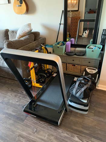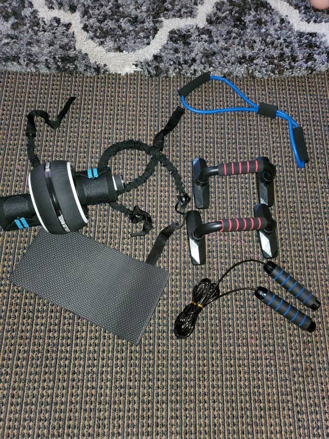 We hope you love our recommendations! While every product is independently chosen by our editors, BuzzFeed and our publishing partners may collect a share of sales or other compensation from the links on this page. You can read more about how our affiliate partnerships work in our Editorial Standards & Ethics Guide. Sometimes the best way to get yourself to the gym is by bringing the gym to your living room. Promising review: "I saw these on TikTok, and I wanted to try it because I HATE working out. But y’all — I received mine today and it was so easy, AND SO FUN. I can feel it working cause it makes my whole body tired when I stop. Very easy to put together, and it’s easier than an actual fitness hoop. I was skeptical at first because I always buy workout stuff then shove it in my closet and never use it again — but I can already tell I’m going to use this everyday. I love it, and I’m excited to start seeing results. 🥰🥰" —Mookie UrbnFit is a small business creating a variety of different pieces of fitness equipment. Promising review: "Came in a compact box with a hand pump. Pretty easy to blow up! I use it at my desk instead of a chair, and it's been great for my posture. Also just super fun to bounce around on and stretch with. It's so fun to use that it actually has motivated me to do little ab workouts with it every day. Seems very durable and great quality for such a good price! :)" —Amazon Customer Get it from Amazon for $14.49+ (available in six sizes and nine colors). Promising review: "This dumbbell set is great for anyone looking to do some home workouts. The neoprene coating is comfortable and easy to grip. They are also very durable — I dropped the 8-lb on the ground cause I tripped on my own feet, and there wasn't even a mark on it (unlike my floor). I also really like the hexagon shape since I don't have to worry about them rolling away between sets. I haven't noticed any uneven weight distribution or balance issues either. Even though I bought the 3-lb, 5-lb, and 8-lb set it would be easy and affordable to add more dumbbells that match in higher weights when I'm ready. The stand is a little flimsy so you have to be careful when grabbing or putting away a weight, but it's held up so far and does the job." —Rachel Fuji Get the three-pair set from Amazon for $35.99+ (also available as single sets from 1–20 pounds). Palace Learning is a small business creating educational, anatomy, art, fitness and more posters. Promising reviews: "I love these cards! I get bored of doing the same workouts over and over and then lose my motivation, but with these, it's easy to quickly change up your routine. I love the art style of the illustrations (ones with faces creep me out!) and the detail on the back of the cards, explaining how to properly do the exercise, as well as what muscles are targeted, and the amount of reps to aim for. I've been choosing about 6 cards to lay on the bench/floor, and then pairing them with an app which automatically times my intervals for me, and it keeps me focused for the full length of my workout!" —Alanna BuzzFeed Shopping editor Genevieve Scarano says, "I work out at home a lot, so it's important for me to have an exercise mat that's cushy, sturdy, and easy to roll up and put away. I received this Gaiam yoga mat as a sample and really enjoy using it for yoga and Pilates! It's so comfortable to stand, sit, and lay down on, and I don't have to worry about sliding around, thanks to a grippy material. It's also fun to flip the sides (my mat above came with light blue and dark blue sides) — I've never had a yoga mat with this design before! And if you don't have a lot of space, no worries, because this mat rolls up to a compact size when you're done exercising." Get it from Amazon for $22.89+ (available in two sizes and two colors). Promising review: "I am not one to take time to write a review, but I LOVE THIS! It takes a few minutes to get used to the balance, but I walk in a backward motion on it all the time now. I seem to go faster and smoother in a reverse motion. It had a slight squeak when I first got it, but no longer, it's quiet and so compact. I jump on anytime and watch TV or Netflix. I've exercised on and off my whole life, this is by far my favorite machine ever!! I look forward to getting on and catching up with the news or whatever is on TV, but not just sitting there and being able to exercise at the same time is so easy now. I'm ordering a second one today to keep in my bedroom when my children take over the basement with their friends and my elliptical. Don't hesitate to buy this — you won't regret it!" —Amazon Customer Get it from Amazon for $119.39+ (available in three colors). Quiet Punch is a small business that started to make boxing accessible for all! Plus, the punching bag comes with access to the Quiet Punch Play app, which has more than 100 hours of on-demand training and workout routines, meaning even beginners can use this equipment. Promising review: "I have a really hard time self-motivating when it comes to exercising. But since I’ve gotten the Quiet Punch play system, I have felt totally excited and motivated to use it daily and have really noticed a difference in my energy, strength, and endurance. The bag is really easy to use, convenient for any space (especially small spaces like apartments), and installing it couldn’t be easier. I love being able to track my punches and the amount of content online; training videos, technique how-tos, and live classes provide so many great options for workouts. I just downloaded the app, which is amazing, and I am so happy with the positive changes in my mood as a result of this awesome product. Highly recommend!!" —Elizabeth K Promising reviews: "Obsessed. I’ve been working from home since March 2020 and have struggled with a sedentary life. Since I got this treadmill for under my desk, I actually look forward to starting work, feel more product