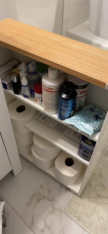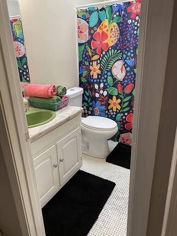 We hope you love our recommendations! While every product is independently chosen by our editors, BuzzFeed and our publishing partners may collect a share of sales or other compensation from the links on this page. You can read more about how our affiliate partnerships work in our Editorial Standards & Ethics Guide. Just because it isn't your most frequented room doesn't mean it should be bland and chaotic. Promising review: "This shower curtain is well made and the design is beautiful! It makes me extremely happy every time I see it and instantly brightens my day!" —EB Get it from Amazon for $15.99+ (available in 14 colors and seven sizes). Promising review: "This shower curtain is such a good find! The linen texture looks high-end and adds a soft, neutral vibe that works with any bathroom style. It’s lightweight but hangs beautifully, and the length is perfect for extra height. I’m honestly shocked at how much it upgraded the whole space for such an affordable price. If you want a simple, chic, easy bathroom refresh — this is it!" —MrsBlandford Get it from Amazon for $16.95+ (available in six sizes and 23 colors). Promising review: "In spite of this rolling cart being on the pricier side, I really appreciate its functionality and aesthetics. My apartment bathroom is on the smaller side and has no built-in storage, aside from an over-the-sink medicine cabinet. I knew I needed a space-saving solution that would keep eyesores out of sight (e.g., cleaning supplies, extra toilet paper), so I finally bit the bullet and purchased this cart. I have no regrets! I love that it fits right next to the toilet and doubles as a side table for things like tissue paper, room sprays, and cellphones. The top of the cart is a solid plank of wood, which is a nice touch, and the handle makes it easy to pull the cart out. The cart's dimensions are perfect for fitting several rolls of extra toilet paper, a toilet scrubber, cleaning products, and any other items you'd like to keep out of sight. Assembly was easy as well. All you need to do is attach the handle and wheels. Overall, I'm really enjoying using this cart in my small living space!" —Solae Studio Get it from Amazon for $165 (available in three colors). Promising review: "I’ve been wanting to try peel-and-stick tiles for a long time, and I’m so glad I found these for our kitchen facelift! They are so easy to apply and look amazing! I love that they are actual-size subway tiles as well! They’ve given our kitchen the last very important piece that it needed!" —April Grill Get a pack of 10 sheets from Amazon for $32.99+ (available in eight colors). This is IP44 waterproof certified, meaning it can withstand splashes of water. DO NOT put this in the water with you (obviously!) or place it somewhere precarious where it can fall into the water or will get wet — but know that it'll be ok if splashed. Hear one TikToker's thoughts on the shower lamp. Promising review: "I bought this kind of as a joke for our shower, but it's the best thing I've purchased so far in 2025! It's easy to use, love the dimmer, and it creates a nice ambiance." —Holla Get it from Amazon for $32.90+ (available in two sizes and six colors). Promising review: "This stuff is a lifesaver. Life is tremendously busy with kids and cleaning the shower is at the bottom of the list. I bought this due to pure frustration and disgust of my shower and it has turned it around in a weekend. You literally spray it and forget it and just with that little effort, I have a clean shower!! Also great for glass doors. It cleaned everything! Love it!" —Amanda Nichols Get it from Amazon for $20.98+ (available in two sizes, two scents, and multipacks). Promising review: "Who knew that the solution to all of my soap bars getting mushy and gross was this small magnet? It’s aesthetic in my bathroom and holds any size soap — it really is an ingenious invention. It adhered very well to my mirror and was easy to install. A true game changer." —Irene Get it from Amazon for $7.95+ (available in two colors). Promising review: "I’m so in love with this bath mat! It absorbs water, so it dries fast, and it's soft to stand on. I love this cute design! Cheery for my bathroom! Makes me smile!" —Drhonda fitzroy Get it from Amazon for $19.99+ (available in two styles). Promising review: "I actually saw this type of bath mat on TikTok and decided to look them up. I ordered the gray one and was extremely impressed with it. I’ve already recommended it to coworkers. It’s very absorbent and quickly dries up the water after a shower." —DirectorPrime Get it from Amazon for $29.69+ (available in three colors and a two-pack). Promising review: "These are such great quality! I’ve had others that ended up sagging in the middle, leaving me concerned my fragrances were in danger of breaking. My daughter had purchased these long before I purchased mine, and hers have held up beautifully. Although these were more expensive, you get what you pay for! I highly recommend these over other cheaper-made models for peace of mind that your fragrances will be safe!" —Tammy Caudell Get it from Amazon for $9.98+ (available in two sizes, two colors, and packs of one or two). It features a built-in timer that heats your towels for 15, 30, 45, or 60 minutes before automatically shutting off. Promising review: "Absolutely love this! My husband and I use it every day to have fresh hot towels when getting out of the shower. We also use it on blankets before bed if it’s really cold. 100% recommend getting this!!!" —Stephanie And this has SEVEN suction cups to keep it in place! Promising review: "This is one of the best things I’ve ever bought! If you love to soak in a hot bath and be completely comfortable, this is a must-have. It stays in place, is totally supportive of your back and shoulders, and doesn’t slide around. The best part, too, is no soggy towels to deal with after your bath. I highly recommen
