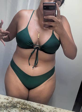 We hope you love our recommendations! While every product is independently chosen by our editors, BuzzFeed and our publishing partners may collect a share of sales or other compensation from the links on this page. You can read more about how our affiliate partnerships work in our Editorial Standards & Ethics Guide. Make a ~splash~ in these must-have swimwear pieces. Unless otherwise specified, all sizes in this post are listed in women's. Check out BuzzFeed's full write-up on this suit. Promising review: "Absolutely beautiful and as pictured. Straps are easy to adjust and, due to their length, can be tied in a variety of ways. Comfortable and complementary to many body types. True to size." —L. Foreman Price: $33.99+ (available in sizes XL–3XL and in eight colors) Promising review: "This bikini set is a total confidence booster. The twist-front V-neck top adds a chic touch, and the adjustable spaghetti straps make it easy to get the perfect fit. I love how the high-waisted bottoms offer great coverage while still feeling sexy and modern. The wine red color is stunning — rich, bold, and perfect for summer. The material feels high quality, with just the right amount of stretch, and the removable padded cups are a nice bonus for customizable support. It’s comfortable enough to wear all day, whether you’re lounging or swimming. If you’re looking for a swimsuit that combines style, comfort, and a great fit, this one’s a winner." —Daisy Price: $36.99+ (available in sizes XS–XXL and 32 colors/prints) Promising review: "What a great swimsuit! I got numerous compliments on this one. The material feels nice and thick, as if it were a lighter color, it would not be see-through. It was slightly small for my long torso, but a few little tugs had it moved to all the right places, and it did not ride up. I definitely prefer the full coverage in the back versus a thong or high cut. I read a review that somebody felt the bow was awkward on them, but I did not get that at all. Overall, I thought this was very cute. If it weren’t such a unique style, I’d probably order another color!" —S.Lang Price: $35.99+ (available in sizes XS–XXL and three colors) Promising reviews: "I got this spare of the moment for my trip to Mexico, and I wasn’t disappointed at all. Size was perfect, I’m 140 pounds. The material is super soft and doesn’t irritate your skin when wet. This set holds everything, and I mean everything, being bigger on top! 10/10" —Autumn "This is a gorgeous suit. The top is amazing with the adjustable string front and gives great support and flexibility, while the bottom fits really well. The cut covers the lower belly while sides ride a little higher on the hips without being a high-waisted suit and a little cheeky in the back. Absolutely love, lots of compliments! I am 5’3”, about 145 pounds, and athletic/muscle build/thighs and butt. 36C. The medium top fit great with some cleavage, but the bottom cut into my hips, so I got a medium top and a large bottom. It was worth buying two for a perfect fit. I’ll give the medium bottom and large top to a friend." —Adebault Price: $32.99 (available in sizes S–XXL and 13 colors) Promising review: "I absolutely LOVE this swimsuit!! It is so pretty, and I love how versatile it is! There are a few different ways to wear it, which I really like. It is really comfy, and I love the fit. I would definitely get this in more colors!! The only downside is that the top is just the slightest bit too loose, so I can't wear it strapless unless I use the ruffles for sleeves, which does look really cute too, but that is such a minor thing that I couldn't care less about. I can't wait to get some use out of this on vacation!" —LoveToRead Price: $31.27+ (available in sizes S–XXL and 11 colors) Promising review: "I recently purchased this swimsuit, and I couldn’t be happier with the quality and design. The material is lightweight, breathable, and dries quickly, making it perfect for both swimming and lounging by the water. The modest coverage gives me comfort and confidence without compromising style. The fit is excellent. I usually wear a large size, but I bought one size bigger. For reference, I’m 5’3” and 160 pounds. It’s a must-have for anyone looking for a modest yet practical swimsuit. Highly recommend!" —Fraz Khalil Price: $39.99 (available in sizes S–4XL and four colors/patterns) Promising review: "As a chronic overpacker, it's VERY easy for me to accidentally pack everything I own. This swimsuit has saved me the space of two swimsuits in one by having two adorable looks. I packed this for my Cancun trip and got so many compliments on it. I'm a traditional medium, and the medium fits me perfectly. Straps were adjustable yet supported my chest well, which helped me feel comfortable all day long. Love this swimsuit and highly recommend!" —Nina Wong Price: $33.99+ (available in sizes 2–14 and five colors/patterns) Promising review: "Love this high-neck style as it provides nice coverage on top. The top and bottom can be mixed and matched, too, which I love having as an option. Bought this style in several different patterns and designs over and over again. Holds up well in the wash and does not fade." —Karen Gouge Price: $25.99+ (available in sizes XS–XXL and 30 colors/patterns) Promising review: "Super cute bathing suit that fits well and doesn’t ride up the bum. Colors are vibrant! Does not fade in the sun or pool chemicals. Very top-quality material." —Dawn Statler Price: $29.99+ (available in sizes XXS–XXL and18–22, and 22 colors/patterns) Promising review: "My newest obsession. The way my jaw dropped when I put this on. This is my new favorite. I purchased a handful of one-pieces for my trip to Italy, and this one was easily my favorite of the bunch. I never thought I’d be so excited to wear a one-piece!" —Autumn Calica Price: $27.99+ (available in sizes S–XL and 13 colors/patterns) Pro