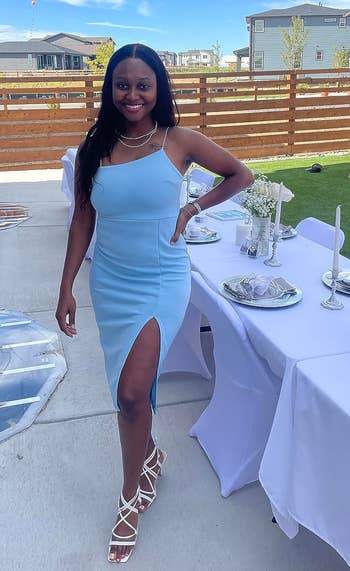 We hope you love our recommendations! While every product is independently chosen by our editors, BuzzFeed and our publishing partners may collect a share of sales or other compensation from the links on this page. You can read more about how our affiliate partnerships work in our Editorial Standards & Ethics Guide. We agree that all eyes should be on the happy couple... but boy will it be hard when you walk in dressed this good. If you've got a fridge full of wedding invites, I have no doubt that you're already thinking, "What the heck am I going to wear?". From garden party attire to black tie, we've rounded up the most gorgeous long flowing gowns, mini statement dresses, (of course) everyone's favorite Reformation dress, and every worthy floral and ruffled dress in between. Cheers to the bride, the groom, and to you having the best wedding guest looks around. Unless otherwise specified, all sizes in this post are listed in women’s. Promising reviews: "I ordered this last minute for a formal event, and let me tell you, I was pleasantly surprised! It runs true to size and [fits] you in all the right places... a MUST-BUY!" —Ryan "My new FAVORITE wedding guest dress. This dress was soooo perfect for our friend's summer wedding...The material is so thick and beautiful. I received sooo many compliments in this dress." —Amazon Customer Get it from Amazon for $41.99+ (available in sizes XS–XL and in 23 colors). Promising review: "This was the perfect wedding guest dress. It is so stretchy and comfortable but still formal for an event." —Jessica Fee Get it from Amazon for $9.99+ (available in sizes XS–XL and in 20 colors). Promising review: "LOVE this dress. Wore this to my sister’s wedding in the Dominican Republic. I received many compliments, and I didn’t feel squished... it was perfect with heels, a little long without. I had room to dance, it felt airy, I loved how it fit. Really happy with this one!" —Kathryn Tamondong Get it from Amazon for $69.99 (available in sizes 2–26 and in 25 colors). Promising review: "Stunning! I am short and a bit curvy, so usually shapeless column silk dresses like this are... too tight,... too loose, or look like a tent on me. But this dress is magic! It has just enough room to skim the body without being too loose or too tight. Super comfortable, and I got so many compliments. And it came in petite length so no hem required! Love love love it." —AngelaRegina Get it from Anthropologie for $168+ (available in sizes XXS–3XL, in standard, petite, and plus fits, and in three colors — not all sizes available in all colors). Promising reviews: "A classy vintage feel with the niceties of being modern. This dress fit exactly as described [and] it has just the right amount of stretch... I've really dressed this up (I wore it to a wedding), and then it's great for a more casual setting, too. I've gotten so many compliments...but the main thing was how I felt like 'A Lady' wearing it! It's a real confidence booster!" —Gr8ful Nurse "A must-buy! I purchased two of these dresses (one for my daughter and one for myself) to wear to a wedding. We received so many compliments. We will be ordering this dress in more colors. It’s beautiful and comfortable!" —Slau Get it from Amazon for $39.99 (available in sizes S–XXL, 13 colors, and in straight pencil or fishtail styles). Get it from Boohoo for $39.20 (originally $98; available in sizes 12–16 and 20–24). Promising review: "Just get it, perfect for a summer wedding! I was a little hesitant at first because of the shoulder flower, but honestly, this dress was beautiful... It fit beautifully, and the biggest perks were: 1) didn’t show a lot of wrinkles because of the fabric and print, 2) didn’t have me looking like a sweaty mess despite the very hot weather, 3) has some stretch and is very lightweight (but not see-through!). Be mindful the slit is high, I wore bike shorts under." —Kailey McEvilly Get it from Amazon for $59.99+ (available in sizes 6–18 and 15 colors). Get it from Reformation for $298 (available in straight sizes 0–12 and in seven colors/patterns, and in plus sizes 14–24, in three colors/patterns). Promising review: "I don’t ever write reviews, but had to because this dress is literally EVERYTHING!! It’s so pretty, and the fabric is high-quality. I just wish for more occasions to wear it!!" —Norah Barnes Get it from Amazon for $64.99 (available in sizes 0–28 Plus and in 13 colors). Promising reviews: "This dress is perfect! It fits my body well. The draping and ruching [is great]... I got so many compliments. Honey, the color — rich! Very saturated." —Sheila D. "I absolutely love this dress. My son got married in October, and it was perfect for the day. The blue is stunning, and the material is beautiful. It surpassed my expectations, and I will be buying another color!" —Bdale Get it from Eloquii for $99 (originally $189.95; available in sizes 14–32 and in three colors). Promising review: "I was worried about ordering this dress because some of the reviews stated that the sizing is weird. I'm 5'4" and around 112 lbs, so I ordered an XS, and it's PERFECT! I wore it to my brother's wedding and got so many compliments. The straps being adjustable helped to make it a perfect fit. This is my new go-to dress for weddings and other events. For those asking about what bra to wear, I just wore silicone petal covers, and they worked great with the dress." —Kelsey Get it from Amazon for $19.99+ (available in sizes XS–XXL and in nine colors). Promising reviews: "Gorgeous wedding guest dress! Form-fitting...with quality material. Not see-through except for the sleeves. I love this color and the detail. Highly recommend! Gorgeous dress! I love the gold. It's elegant looking but also very comfortable, quality material, and a value for the price." —Jaime "LOVE. This dress is gorgeous. It is extremely comfortable and well-fitting. I wore this to a wedding and g