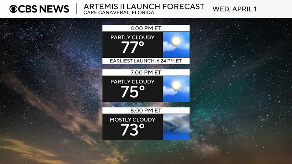 On the eve of the launch countdown for their trip around the moon, the Artemis II astronauts said Sunday they're "ready to go" as ground teams prepare their rocket for blastoff Wednesday, weather permitting. Artemis II commander Reid Wiseman, Victor Glover, Christina Koch and Canadian astronaut Jeremy Hansen flew to the Kennedy Space Center from Houston on Friday to prepare for launch. Isolated in medical quarantine, they fielded questions from reporters Sunday during a virtual news conference. "Things are certainly starting to feel real here at the Cape," said Koch, who carried out six spacewalks during a 328-day expedition aboard the International Space Station in 2019-20. "Our families joined us yesterday, and we had a chance to be in the pre-test brief[ing] for the actual starting of the launch countdown," she added. "So we're excited to be a part of all that." The astronauts originally hoped to take off in early February, but work to fix hydrogen fuel leaks, and more recently, trouble pressurizing the rocket's upper stage propulsion system, combined to push the launch to April 1. While the crew is optimistic about their chances of getting off the ground Wednesday, Wiseman cautioned that it is a test flight. "This is the first time we're loading humans on board," Wiseman said. "And I will tell you, the four of us, we are ready to go. The team is ready to go, and the vehicle is ready to go." "But not for one second do we have an expectation that we are going. We will go when this vehicle tells us that it's ready, when the team is ready to go. So we might go out to the pad, and we might have to try again a few more times. And we are 100% ready for that." The 49-hour, 40-minute countdown is set to begin at 4:44 p.m. ET Monday. If all goes well, the clock will hit zero at 6:24 p.m. Wednesday, when the crew hopes to blast off in an Orion crew ship atop a 322-foot-tall Space Launch System rocket — both making their first flight with astronauts on board. "When you see this vehicle on the pad, you look at the size of this vehicle, and you know it's going one place ... It is going to space, and it is going to go there in a hurry," Wiseman said. "When those engines light, this thing is moving out." "So it's surreal. I almost want to say, though, I just feel relaxed. It's good to be here. We've trained for this, and we're ready to go." Forecasters are predicting an 80% chance of acceptable weather, with a 20% chance of high winds and thick clouds that could pose problems. "Yesterday, we had an important meeting, our launch countdown pre-test briefing," said ground systems manager Shawn Quinn. "This is like the last step before we get into actual launch countdown. And I will tell you that it was one of the cleanest launch countdown pre-test briefings we've ever had. ... We had no significant open work." The Artemis II mission is the first piloted flight back to the moon in 53 years, a mission designed to thoroughly test the Orion crew capsule's propulsion, navigation, communications and life support systems before setting off for the moon 25 hours after liftoff. The Artemis II astronauts will not land on the moon or even go into lunar orbit but will instead loop around the far side, using lunar gravity to bend the capsule's trajectory back toward Earth and a Pacific Ocean splashdown off the Southern California coast near San Diego a few minutes after 8 p.m. ET on April 10. If the crew takes off at the opening of the two-hour launch window Wednesday, they'll travel farther from Earth than any humans before them, reaching a distance of 252,799 miles — about 4,144 miles farther than the record set by the Apollo 13 crew in 1970. The mission is seen as a trailblazer of sorts, setting the stage for a flight next year in Earth orbit when another crew will test rendezvous and docking procedures with moon landers being built by SpaceX and Blue Origin. NASA plans to follow that flight with one and possibly two moon landings in 2028. Meet the masked artist who conjured a concrete jungle of 20,000 orchids Ret. Gen. Frank McKenzie says "we're on our way" to making Strait of Hormuz passable Olivia Munn sounds the alarm after shocking breast cancer diagnosis: "No symptoms"