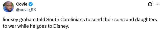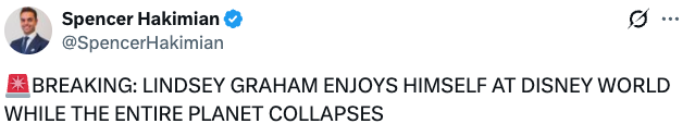 "Despite having no wife and kids, Lindsey Graham was spotted vacationing at Disney World amid shutdown."