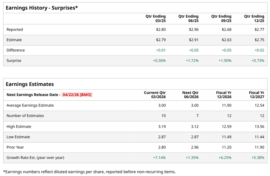 CME Group Inc. (CME), headquartered in Chicago, Illinois, operates contract markets for the trading of futures and options on futures contracts. Valued at $105.4 billion by market cap, the company offers futures and options products based on interest rates, equity indexes, foreign exchange, agricultural commodities, energy, and metals, and more. It facilitates trading on its trading floors, electronic platform, and through privately negotiated transactions that it clears. The leading derivatives marketplace is expected to announce its fiscal first-quarter earnings for 2026 before the market opens on Wednesday, Apr. 22. Ahead of the event, analysts expect CME to report a profit of $3 per share on a diluted basis, up 7.1% from $2.80 per share in the year-ago quarter. The company has consistently surpassed Wall Street’s EPS estimates in its last four quarterly reports. Everyone Is Talking About Volatility. That’s Not The Story. Iran, Oil Prices and Other Key Things to Watch this Week As Meta Doubles Down on Data Center Investment, AMD and American Tower Could Be the Top Stocks to Buy Get exclusive insights with the FREE Barchart Brief newsletter. Subscribe now for quick, incisive midday market analysis you won't find anywhere else. For the full year, analysts expect CME to report EPS of $11.90, up 6.3% from $11.20 in fiscal 2025. Its EPS is expected to rise 5.4% year over year to $12.54 in fiscal 2027. CME stock has outperformed the S&P 500 Index’s ($SPX) 11.9% gains over the past 52 weeks, with shares up 12.2% during this period. Similarly, it outperformed the State Street Financial Select Sector SPDR ETF’s (XLF) 4.7% losses over the same time frame. CME's strong performance is driven by broad-based growth across asset classes and increased retail participation, with key drivers including increased activity in interest rates, energy, metals, agriculture, and crypto products. The company is focused on launching new initiatives like securities clearing, 24/7 crypto trading, and additional crypto futures, while maintaining cost discipline and driving innovation. On Feb. 4, CME shares closed up marginally after reporting its Q4 results. Its adjusted EPS of $2.77 surpassed Wall Street expectations of $2.75. The company’s revenue was $1.7 billion, topping Wall Street forecasts of $1.6 billion. Analysts’ consensus opinion on CME stock is moderately bullish, with a “Moderate Buy” rating overall. Out of 17 analysts covering the stock, six advise a “Strong Buy” rating, two suggest a “Moderate Buy,” six give a “Hold,” one recommends a “Moderate Sell,” and two advocate a “Strong Sell.” CME’s average analyst price target is $312.50, indicating a potential upside of 6.4% from the current levels. On the date of publication, Neha Panjwani did not have (either directly or indirectly) positions in any of the securities mentioned in this article. All information and data in this article is solely for informational purposes. This article was originally published on Barchart.com