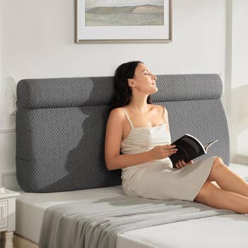 We hope you love our recommendations! While every product is independently chosen by our editors, BuzzFeed and our publishing partners may collect a share of sales or other compensation from the links on this page. You can read more about how our affiliate partnerships work in our Editorial Standards & Ethics Guide. If your headboard (or lack thereof) is causing your strained neck to talk smack about you to your pained back, you need a headboard pillow. Promising review: "Love the color, softness and how thick the pillow is. It fits perfectly in our travel trailer queen bed and on the jack knife couch to watch TV. It was the perfect buy! It even has a removable and washable cover!!" —Amazon Customer Get it from Amazon for $79.98+ (available in five sizes and 14 colors). Promising review: "I absolutely love this Headboard Pillow. I like sitting up and relaxing. I don't like having to hit my head on the wooden headboard and constantly repositioning pillows. This fixes all my problems. To be honest. It's a cozy pillow as well. 5 Stars for this." —Reader Get it from Amazon for $62.99+ (available in four sizes and six colors). Promising review: "I never knew that headboard rests such as these were a thing!!! They fit well and certainly make the lean-back against the headboard so much more comfortable!!! So soft, so smooth, so perfectly fitted to my headboard! They feel absolutely heavenly!!!" —Gypsy Gaeda Get it from Amazon for $47.99 (available in ivory and grey). Promising review: "Just look at how cool this is. And it really is so comfortable to lay your neck in the neck spot. Headboard size and strong, not under-stuffed, but still soft to rest my head on or sit up." —sandy Get it from Amazon for $69.98+ (available in three sizes and five colors). BorysCa is a Ukrainian design brand that was started by a husband-and-wife duo. They specialize in unique and cozy home decor. Get it from BorysCa on Etsy for $75.60+ (originally $84; available in 12 sizes and lots of colors). Promising review: "Bought this for my guest room because I bought a metal platform bed, and pillows would slide back against the wall. My sister said it was perfect. So it’s a 5-star day." —Phyllis Get it from Amazon for $96.95+ (available in three colors). Laura Park Designs is a woman-owned, family-run small business creating unique and colorful textiles that'll help transform your home. Get it from Laura Park Designs for $179 (available in 13 styles). Get it from Amazon for $49.99+ (available in two sizes). Promising reviews: "I just underwent a major surgery, and I have a lot of pain in my stomach and my back, so getting up from my deep-set bed was painful and difficult. I struggled to get comfortable, trying to adjust the pillows to support me just right. When I tell you this product is a LIFE-SAVER. Worth every penny. I can finally get in and out of bed with ease. And when I'm in bed, I'm finally comfortable. The adjustable neck pillow is perfect to center the pillow right under your neck. Absolutely incredible." —Skylar Evgi "I originally bought this wedge pillow for spinal support — you know, the adult way of saying 'my back hurts when I breathe.' But little did I know, this orthopedic masterpiece would soon become the unsung hero of our bedroom Olympics. First night using it, my husband looked at me like I was the newest model in a Tesla showroom. Next thing I know, I’m folded like a lawn chair on the Fourth of July. And guess what? ZERO back pain. Ten out of ten. Would get folded again. So, if you want improved posture AND the ability to try positions that previously required a personal injury attorney — get the wedge. Your chiropractor might be disappointed, but your marriage won’t be." —Doug Schramm Get it from Amazon for $37.98+ (available in three sizes and 11 colors). Promising review: "I had spinal surgery and am not able to lie flat on my back. If a recliner is not available, then this works best so I can sleep. It helps to take the pressure off my spine." —Sunshine P Get it from Amazon for $29.99+ (available in six colors). My Little Space is a woman-owned small Etsy shop making cute and unique goods for kids and their rooms. Promising review: "It's so lovely. Soft and plush but firm enough to hold its own. Absolutely love this piece!" —Alaina Get it from My Little Space on Etsy for $52.09+ (available in six sizes). Get it from Pottery Barn Teen for $149 (available in pink and blue). Promising reviews: "Love this thing! Hate when my pillows fall in the crack between mattress and headboard. This solves it!" —Maya Lynne "I've had trouble with my pillows always slipping down between my bed and the wall. Not anymore. This is a great product to have. I don't have a backboard, but it really doesn't matter as it stays firmly in place." —Jeff Brown Jr. Get it from Amazon for $22.99+ (available in sizes Twin–California King) Promising review: "Gorgeous headboard! Easy to put together and looks just like the photos, so happy!" —Karl LaishaLeatherStudio is a small business specializing in custom leather upholstery, cushions, and outdoor decor. Promising review: "Excellent headboard cushions. Custom to exactly what I needed. Very happy with purchase. Quickly made and shipped." —Brooke Get it from LaishaLeatherStudio on Etsy for $93.55+ (originally $187.11+; available in four sizes). BlueBrushGifts is a small business based in Poland that makes gift and decor items. Promising review: "Absolutely stunning! We’ve had our pillow for our 180cm wide bed for about 2 months now, and it’s the best thing we've ever bought. We love reading in bed and watching films, and it has just transformed the comfort of our bed for us. Quality and colour are gorgeous! Would 100% buy again! And reallyyyyy worth the price." —Marlene Get it from BlueBrushGifts on Etsy for $333.16+ (originally $416.44+; available in 16 sizes and a variety of colors). Promising review: "Perfect as an alternate headboar