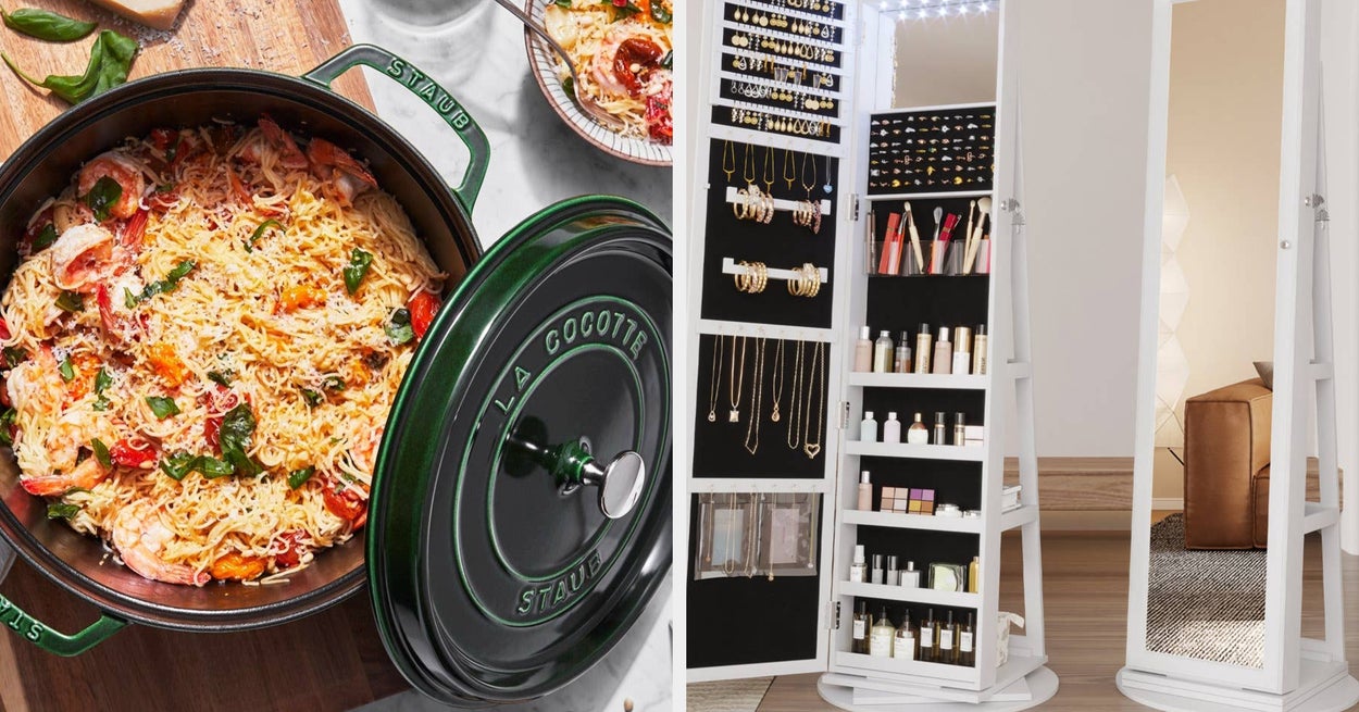 We hope you love our recommendations! While every product is independently chosen by our editors, BuzzFeed and our publishing partners may collect a share of sales or other compensation from the links on this page. You can read more about how our affiliate partnerships work in our Editorial Standards & Ethics Guide. Take this as your sign: It's time to get a bidet. Promising review: "I was worried that it wouldn’t work the way I wanted it to so I’m pleasantly surprised that it works exactly how I wanted it to! Loved it so much I bought two!!! Plus, it matches my bathroom tiles perfectly!!!" —Lissel Price: $56.99+ (available in three finishes) Promising review: "I love this garment rack! It only took about 20 minutes to assemble using the step-by-step instructions, which were easy to follow. The price is reasonable for the quality. It’s made of durable materials that are not flimsy. In the past, I purchased an inexpensive garment rack made of plastic and was disappointed when it became top-heavy and fell over after I put my clothes on it! This rack doesn’t fall over! I appreciate that it fits in a small space, while giving me extra room to store clothes. The only downside to this purchase is it only holds a small number of clothes compared to other racks. The trade-off is that it’s shorter in length and fits in a bedroom or laundry room without taking up valuable space. I would highly recommend this to anyone in need of a drying rack or extra storage space." —Sarah Promising review: “This is such a great machine, and simple enough to use! Once you learn how to use it, it becomes super easy to remember the steps and techniques. Great buy!” —Fabo Promising review: “This tile is gorgeous! It looks so glam and high end in a subtle way. Exactly what we were looking for.” —Rick Promising review: "The chaise is well constructed/solid, and the fabric looks nice, especially at such an affordable price point. Some customers mentioned the size being too small, but that’s exactly why I got it. You need to check the measurements in the product description (very accurate) before getting it. Also worth mentioning is that the seat cushion is hard/very firm. Overall, it’s a great buy." —Qing Price: $199.99 (originally $223.99; available in three colors) Promising review: "This chair is absolutely PERFECT!! It fits my office so well and is actually really comfortable to sit on. I work from home, so I’m always in my office, and this chair has the best support and comfort for those long hours. It was also super easy to assemble, I did it myself in less than 10 minutes! Best purchase." —Destinee Price: $134.99+ (originally $599, available ten colors) Promising review: “Love this soap dispenser. Definitely more modern-looking than most, but it’s exactly what I was looking for.” —Jill Price: $116.99+ (available in five finishes) Promising review: "Who needs those noisy blades when you can get them encased in a pretty light fixture and you have the best of both worlds with a quiet fan and remote control lighting!" —Mary Promising review: "Purchased a large size in red. In addition to being easy to clean, it looks so nice that I often leave it on the stove just to brighten the room. Has turned out to be a very useful item in my kitchen. I especially appreciate the side handles that make it easy to pick up!" —Joyce Price: $299.99+ (originally $699; available in nine colors) Promising reviews: "Woooooooo! So, so comfy!! All nestled in, warm and comfortable! Just the best feeling! Love it!!" —Barbara Conroe "Everything I dreamed it would be! I haven't had a goose down comforter for years. I had one before and always thought I should get another. The hotel-quality was a selling point. Not disappointed. The only problem is...it is now harder than ever to come out from under my feathers in the morning. Sooo cozy!" —Barbara Selden Price: $95.99+ (originally $199.99+; available in sizes twin–California king) Promising review: "Why I waited all my adult life to purchase this gem is beyond me! It beautifully appoints my 'baking' section of the kitchen, and so far I’ve made 8 dozen cookies and fresh homemade bread! If you’ve put off buying a KitchenAid because of the price, just stop right there and hit the BUY button!" —Sarah Price: $449.99+ (available in 22 colors) Promising review: "I seriously thought I would never really use this but we use it daily. We love it especially in the winter! We put towels, blankets and robes in it. It’s one thing I can’t live without!" —Ashley Promising review: "Works well and I really enjoy using it in the winter. Need to plan ahead at least 30 minutes and have it on in order for towels to be warm." —Amy Price: $141.62+ (available in two finishes) Promising review: "Really nice pillows. Casper does a great job of making pillows that last and keep their shape, and they are really comfortable." —Tammy Promising review: "Sleek, elegant, and functional. It tucks into the space between my wall and armoire, and the color blends with the wall. I have lots of cables in there! Would purchase again." —Hilary Promising review: "FINALLY A TRASH CAN THAT ISN’T AN EYESORE! Can a trashcan be beautiful? I never thought it would be possible until I found THIS trashcan. I got it in the white color which compliments my white fridge perfectly. The separate compartments for trash and recycling are helpful to avoid having several cans lying around. It’s a WIDE trashcan, so make sure you measure your space before purchasing. 10/10 ⭐️⭐️⭐️⭐️⭐️." —Annie Price: $124.99 (available in two finishes) Promising review: "Exactly what I needed. Very spacious as I have A LOT of jewelry. I absolutely love it. I could put my four small jewelry boxes worth of jewelry in it. Absolutely recommend." —Nazlah Price: $163.99+ (originally $219; available in three finishes) Promising review: "ABSOLUTELY LOVE THIS HEATER! It was easy to 