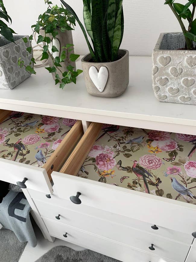We hope you love our recommendations! While every product is independently chosen by our editors, BuzzFeed and our publishing partners may collect a share of sales or other compensation from the links on this page. You can read more about how our affiliate partnerships work in our Editorial Standards & Ethics Guide. Including these scented drawer liners, some "stained-glass" window privacy film, and a goose planter that's an absolute diva (and knows it). Spring is the perfect time of year for a home refresh, and filling your space with things that lift your spirits is a great way to set the tone for the season ahead. These decorative and functional products will have your vibes on point so your home is truly your happy place. Promising review: "Soooo pretty and makes the room dance with glittery disco spots. It’s such a whimsical little addition to the plant window." —KB You could even color-coordinate the flowers you put inside. 🌈 Previously, these were only available in the 4-inch size, which some reviewers felt was too small, but they now come in a larger 6-inch size! Promising review: "Lovely colorful flower pots. Perfect size to hold a single flower, and they add such a nice pop of color to my yard. Very easy to hang up, no hardware required! I’m getting a lot of compliments on them. I bought several sets and planted bright flowers in them. I have them lining the inside of my yard and on the front of the house. They add a lot of cheer and homeyness for a simple and cheap project." —Maegan Get a set of 10 from Amazon for $27.99 (also available in a smaller size, and all black or all white). Promising review: "This is a traditional scented drawer liner paper — the kind people used for decades before modern adhesive (plastic) papers — and it's beautiful. I purchased the royal bloom scent and it smells like fresh pears. The paper comes in a tight roll, and I suggest reverse rolling or laying it flat and weighing it down for a night before installing it. I very much prefer non-adhesive paper like this because it is easy to install and replace, but also because it is old-school elegance." —Trillium Get it from Amazon for $18.99 (available in four colors). Promising review: "Very dainty and caviar-esque, LMAO. I love it! I have to be delicate with this piece as I don’t want to break it. It’s beautiful easy to clean and just freaking cute." —Diamond Girl Promising review: "Beautiful design with fun colors, durable and stable cord, easy to clean. Perfect for smaller birds but it attracts a lot." —Mely Get it from Amazon for $19.99+ (available in eight colors). Each set comes with a rain showerhead that you can get in four sizes (8, 10, 12 or 16 inches), a shower mixer valve control, a handheld showerhead, a stainless-steel shower hose, a showerhead arm, and a brass shower bracket holder. Promising review: "This rainfall shower and handheld provide a luxury spa experience in the privacy of your own bathroom. They are made of substantial, high-quality materials, and look and feel high-end. The rainfall shower is amazing, with perfect pressure combined with beauty. It encourages standing for long, relaxing showers, just enjoying the water as it falls over you. The handheld is magic for sore muscles or just to enjoy the massage like water. The diverter is easy to use. The price for such high-quality products is more than reasonable." —linda33 Get it from Amazon for $101.99+ (available in five finishes and four sizes). This is IP44 waterproof certified, meaning it can withstand splashes of water. DO NOT put this in the water with you (obviously!) or place it somewhere precarious where it can fall into the water or will get wet — but know that it'll be ok if splashed. Your nighttime shower mood lighting will be just as cozy with this on your bathroom counter or shelf. Safety first! Hear one TikToker's thoughts on the shower lamp here. Promising review: "I bought this for my bathroom because the one light is super bright and it's too much in the mornings. I still needed some light, so I looked into a lamp like this over some kind of night light or plug-in lamp. I bought this because the reviews were promising, and so far I'm really happy. I charged it when it arrived a week ago, and haven't needed to charge it again yet. I love the warm, but not yellow-y light it emits. The lamp also seems really sturdy, like if I knocked it off the counter, it would be fine. The dimming function is great, no flickering, and I'm really happy the lamp 'remembers' the brightness level it was last on. My one complaint is that the wood grain color appeared different on my computer than in real life, and it's a little more reddish in person. However, I like this lamp so much I've been moving it to my desk to use in the evenings, so I may just buy another one that matches my bathroom better and leave the wood colored one at my desk." —Syd Smith Get it from Amazon for $29.91+ (available in six colors). Promising review: "Diva goose is very cute and gorgeous. They have a hole at the bottom with a plug, just in case you want to be able to drain your plant. This goose is who I want to be when I grow up." —alexah17 Unicorn Eclipse is owned by two sisters who make extremely cute stationery, planners, stickers, decor, and more! Get a closer look at some of their planner notepads on TikTok. I received a planner and some sticky notes from this shop after hinting to my partner that they would make *great* stocking stuffers, and they are just delightful in person! The quality is fantastic, and the designs make staying organized (both for work and personal tasks) more fun. BTW, you could attach magnets to the pack of the planner pad or to-do list and stick it on your fridge — these spring-y designs featured above would really brighten up a kitchen! My former colleague Haley Zovickian also loves this small biz: "It would be an understatement to say that I'm obsessed with this shop. I am head over he