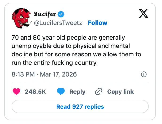 "I'm running for US Senate. If elected, the first bill I introduce will draft Lindsey Graham into any conflict he publicly supports while in office." I'm the AAPI Culture Editor here at BuzzFeed, where I cover everything from trending news to pop culture to AAPI issues. Editor's Note: While we can't endorse what X has become, we can bring you the worthwhile moments that still exist there, curated and free of the surrounding chaos. He looks alive to me. https://t.co/T0FzKy2Z3a Take your hat off, you disgusting little man. https://t.co/9CLllVr2nI Note: The image in the original tweet was replaced here due to photo rights. Rubio: “Iran is run by religious fanatics.”The White House right now: pic.twitter.com/zWxY3wvwAK Note: The video in the original tweet was replaced here due to photo rights. Note: The images in the original tweet were replaced here due to photo rights. SCHLAPP: Who wants to see impeachment hearings?CPAC CROWD: *cheers*SCHLAPP: No. That was the wrong answer. pic.twitter.com/16jYBL9nSM Why the fuck would you not want to protect this https://t.co/XPCpQ4SCDW pic.twitter.com/RVcYFARaIf > bombs Iran> oil prices go up> “why would Biden do this” https://t.co/ZKmJFmeX3X Grown ass man btw https://t.co/Fx9ouKyBFO Holy shit. Even for Trump this is bad. https://t.co/o8ff30IN97 68,000 Americans die each year because they can’t access healthcare https://t.co/sYavGkmYTX THIS IS HILARIOUS 😭😭"Iran 🇮🇷 wanted to make me their Supreme leader but i refused and said no thanks" - Donald Trump 🤣He has totally lost it pic.twitter.com/PcF2ds4LTB Reporter: If you could say something to Trump, what would it be?PA voter: You’re a worthless pile of sh*t.Reporter: How many times did you vote for him?PA voter: 3 times. That was my bad. Apparently I’m an idiot. pic.twitter.com/pvCzuFBkI5 tough look for a man with a line of antiperspirant deodorant https://t.co/MRaOOMAVv9 pic.twitter.com/L4mZARPmrW I’m begging you to watch the part where Pete puts his hand on the imaginary “throttle” and says “as long as it’s hard as is necessary” and watch Trump raise his eyebrows LMAO https://t.co/a3mHJcdZks For more political tweets, check out our most recent roundup: "Do Some Research, B—tch": 40 Political Tweets Of The Week That Deserve A Round Of Applause