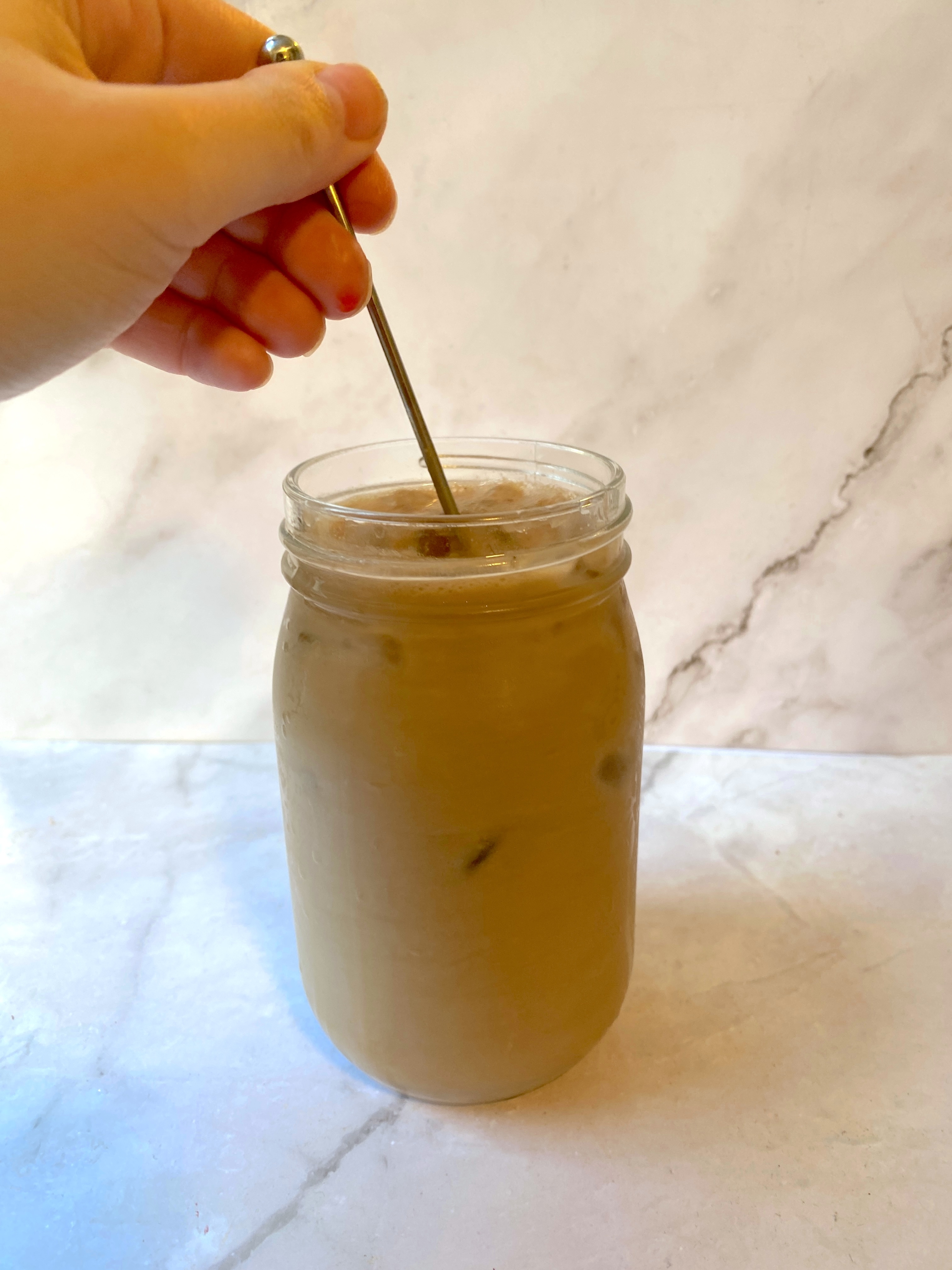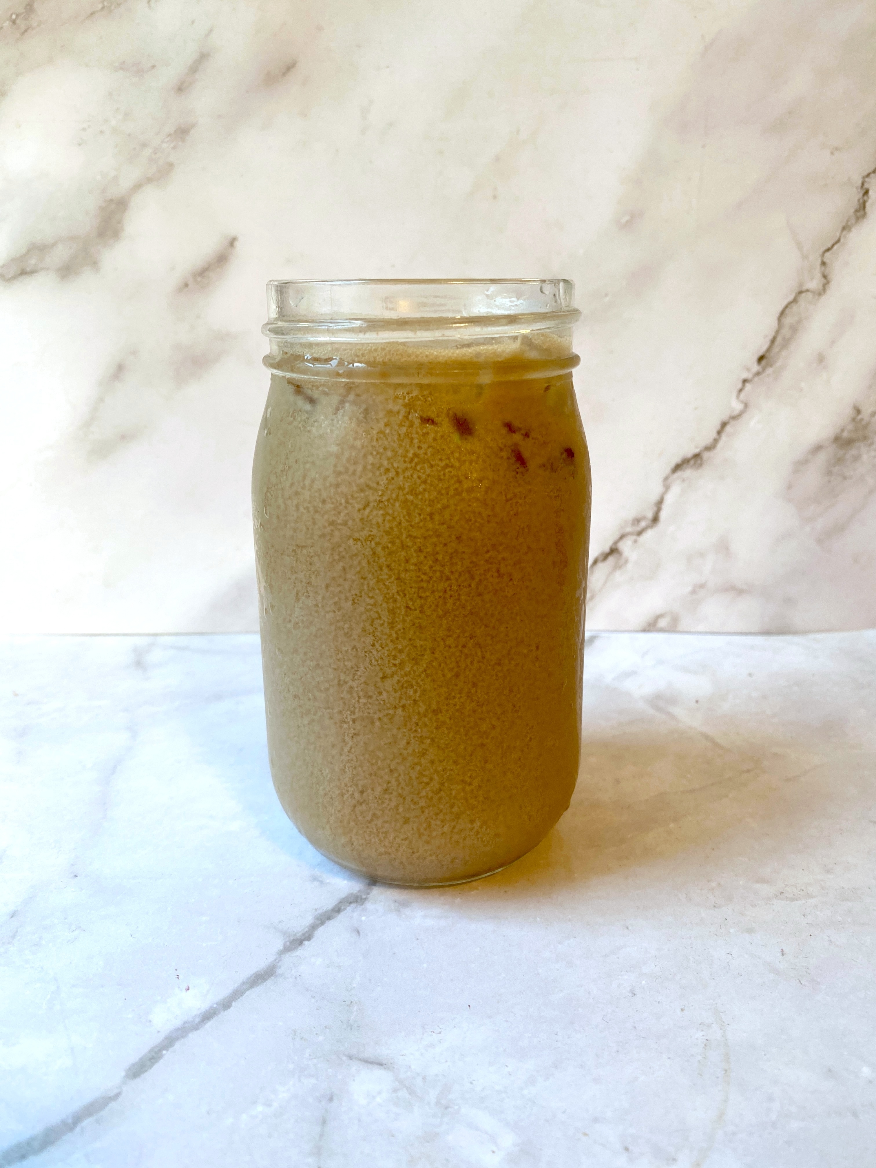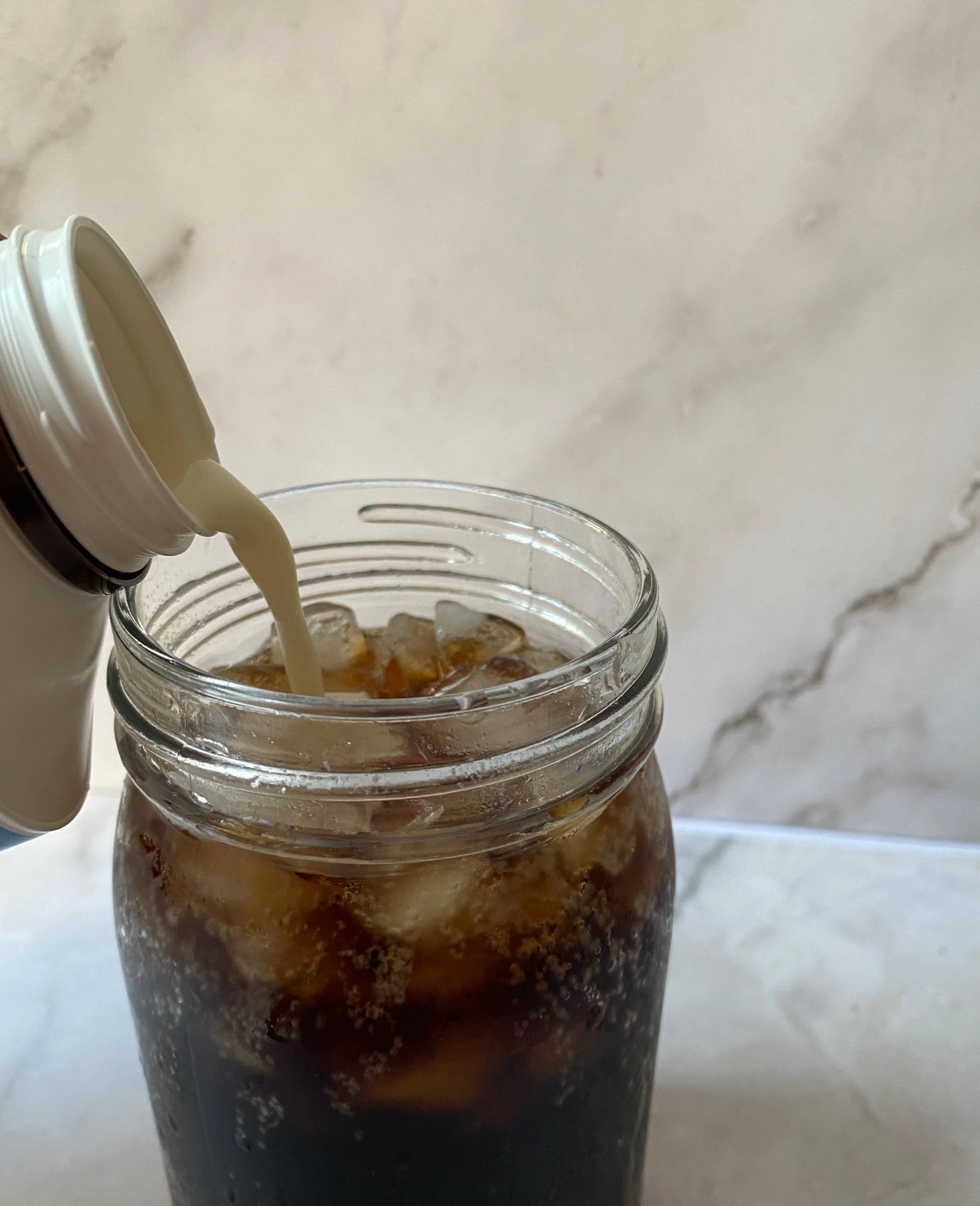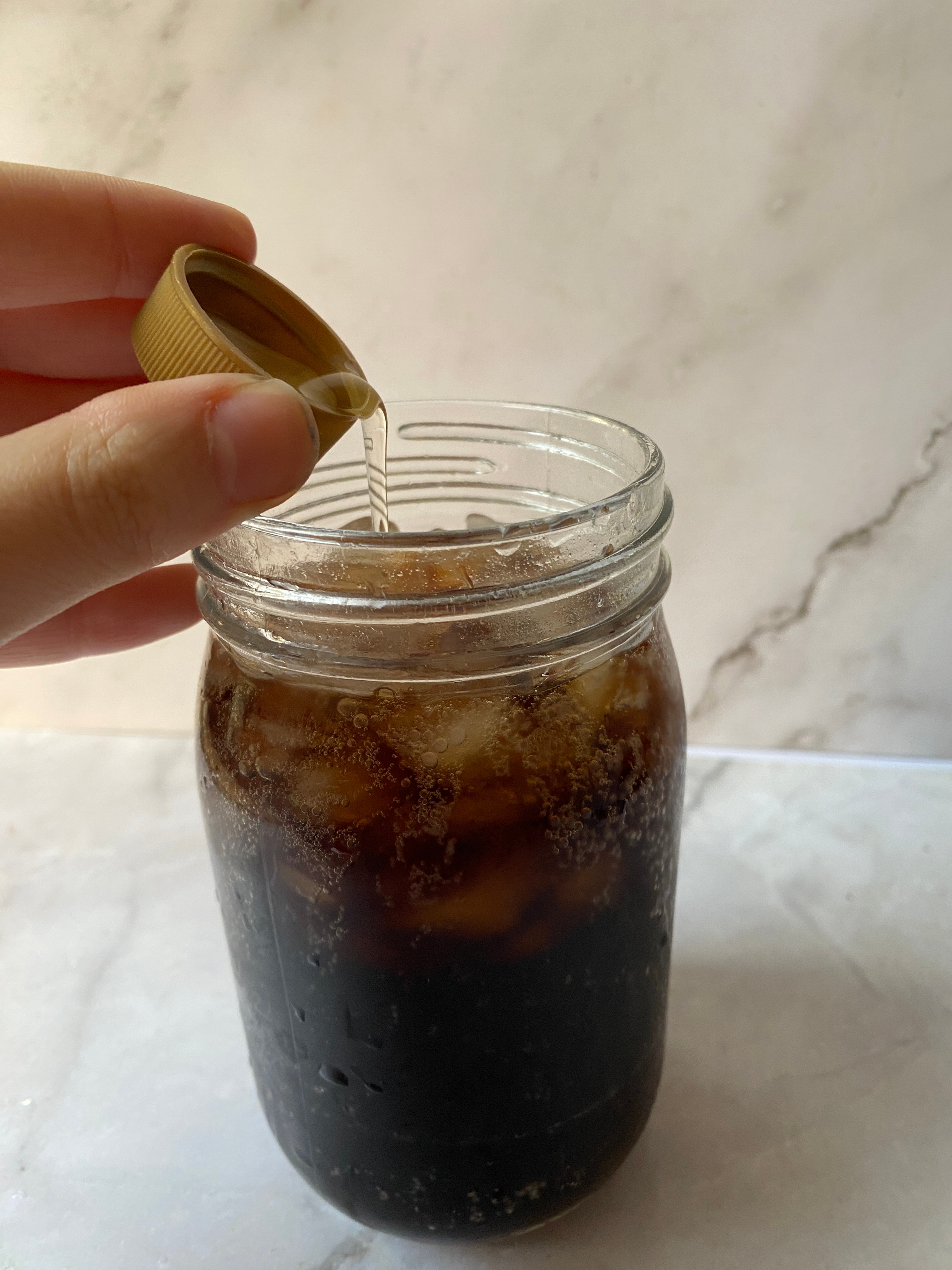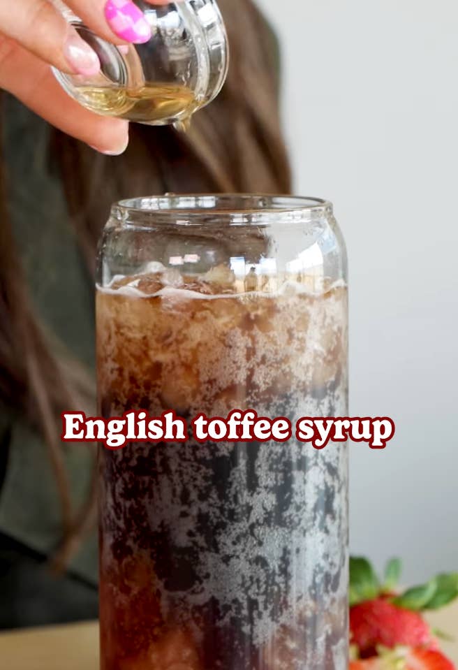 Dr. Pepper and vanilla coffee creamer might seem like a strange combo, but trust me (and Jessi). I'm Adriana, an NYC-based freelance writer for Tasty and BuzzFeed Shopping. I added another capful of strawberry syrup and eyeballed more creamer until it matched the color of Jessi's drink. As is, the drink had an optimal level of sweetness and was refreshing with the heap of crushed ice. With the heavy pour of cream, though, it was too rich to finish. I would recommend making a smaller glass than I did.