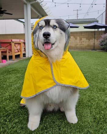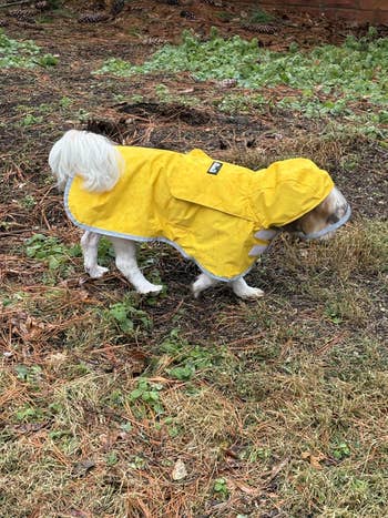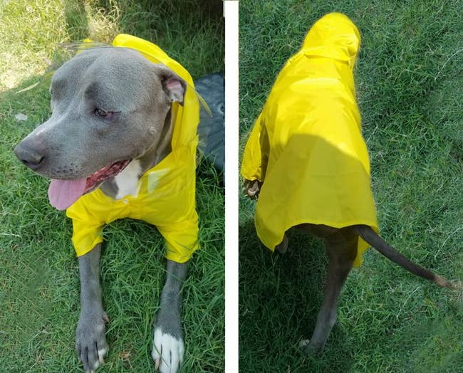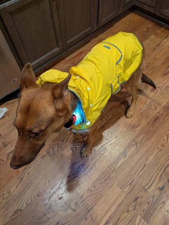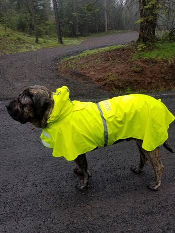We hope you love our recommendations! While every product is independently chosen by our editors, BuzzFeed and our publishing partners may collect a share of sales or other compensation from the links on this page. You can read more about how our affiliate partnerships work in our Editorial Standards & Ethics Guide. Because if you've ever tried to towel dry a dog after a rainy walk, you know the struggle is REAL. If your dog refuses to even put their paw out the door when it's raining, trust that you're not alone, and honestly, I don't blame 'em. I know all I want to do when it's raining is curl up under a blanket... but as a human, I can also use the toilet when I need to go to the bathroom. Our little furry friends, though, not so much — which means finding the right dog raincoat that allows them to do their business while also keeping them from turning into a soaking wet mess is key. With so many options out there, it can be hard to know what will make for a good dog raincoat for your pup. Do you need a lightweight option or something more hefty to also withstand snow? Would you like them to be covered from head to tail, or would you rather prioritize having it be easy to take off? Are you all about it being functional, or does having some style also hold equal importance? And then large dogs and small dogs each have their own special considerations, too. What would be perfect for your Frenchie, for instance, might not give your golden retriever or lab what they need. It's A LOT to think about. That's why I did all the work for you (you're welcome), and have compiled the best of the best, whether you're concerned about budget, coverage, or style. Now your walks can be less “ugh” and more paws-itively pleasant. This is the one-and-done dog raincoat you've been looking for if you want the works. It’s designed to keep your pup warm and dry — especially if they're not working with a lot of natural insulation (aka fur). But it's also still flexible enough for park sprints or random bouts of the zoomies. And it's basically the queen of adjustability, since you can tighten or loosen the neckline, the back length, and the collar circumference to achieve the perfect fit. Plus, the reflective accents are a huge bonus for dark, dreary days. And can we talk about this chic silhouette? I'm gonna need a matching human one, stat! Promising review: "I'm 100% sold on Hurtta coats for my dogs, and this one is absolutely worth the money for my giants. It's a bit of a challenge to find great dane-sized gear, and most of what's available doesn't protect their necks or chests effectively. This coat has fantastic coverage and maximum adjustability, and durability. Even during the coldest winter months, my dogs are toasty, and I end up removing the coats if we're in a store for very long so that they aren't too warm. We've walked through rain and snowstorms, and my pups stay dry. I bought the coat for my merle dane two years ago from a different site, and it has stood up to all Chicago winter weather and the dog's crazy rough-housing. The only wear came from my boy chewing the buckle and one leg loop, but Hurtta even sells replacement buckles and patches for a great price. I have already recommended this coat to a couple of friends who also have danes or mastiffs, and I highly recommend it for anyone needing something warm and stylish to protect their pet through winter." —Shaina W Get it from Amazon for $58.80+ (available in four colors and in 16 size options that include options specifically for dachshunds and bull-type dogs). If you just need something simple and affordable, you can't go wrong with this reflective jacket that also has an adjustable hood for under $25. It helps keep your pup dry in light rain, fits securely thanks to the adjustable strap, and lets you clip onto their harness easily with the dedicated opening. Plus, the reflective details can give you more peace of mind on those occasional cloudy, late-day walks. It’s easily the best budget pick because it gives you all the essentials without cutting corners where it counts. HDE is a small biz that offers affordable clothing options for dogs and humans. Promising review: "I first bought this raincoat for my American pitbull terrier in June 2023. I got a size large in the cartoon pattern. It lasted this long!! The Velcro held up beautifully, and so did the coat itself. The only reason I recently had to buy another one is that my dog is older and has put on weight. So I noticed the raincoat was getting too small and didn’t look comfy anymore. This raincoat is top quality. We used this raincoat VERY often over the years, many times a day sometimes, especially in the summer, and it held up fine. Even worked great during winter to keep my dog dry walking in snowstorms over her jacket. It also doesn’t look old and worn, either; it still has bright colors and still looks beautiful. Also, it 100% keeps my dog dry even during pouring rain and wind. Absolutely recommend for any breed of dog. It’s 100% waterproof, dries really fast, and I hang it up in my bathroom in the shower. Best affordable dog raincoat on the market that actually does what it’s supposed to do!!! Plus quality materials, you can’t beat that! Lightweight, not stiff, a bit of stretch to it, 10/10 recommend, I have nothing bad to say about it. Even on walks, the Velcro stayed put, even with heavy rains, shaking, all that, no issues whatsoever. Buy it !! 💯💯💯 Happy walks to everyone and every breed, big and small. 🐾❤️🐾❤️🐾❤️🐾❤️🐾" —Ashley Get it from Amazon for $21.99+ (available in sizes XS–XL). It can be so ~ruff~ being a small dog in a big world, and if every rainy walk finds your lil' angel looking like they lost a battle with a puddle, you need this waterproof jacket that was specifically designed with small dogs in mind. It has full leg coverage to help keep their whole body dry, but it's still lightweight and breat