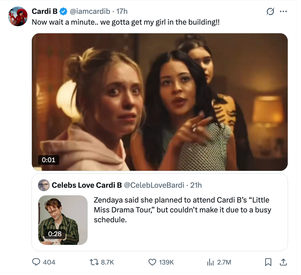 Zendaya Just Said She Wants To See Cardi B Live, And The Rapper's Response Has Fans Going Wild