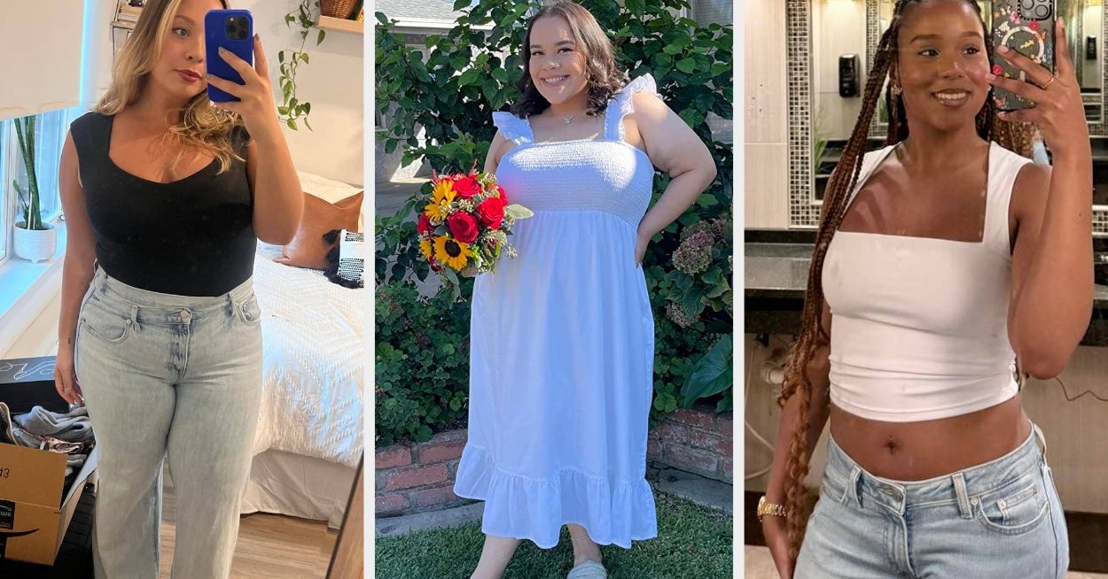 We hope you love our recommendations! While every product is independently chosen by our editors, BuzzFeed and our publishing partners may collect a share of sales or other compensation from the links on this page. You can read more about how our affiliate partnerships work in our Editorial Standards & Ethics Guide. Regular outfit offenders never looked so good — or cost so little. Unless otherwise specified, all sizes in this post are listed in women's. Promising reviews: "One of my favorite going out tops. It's pretty thick, so it snatches everything in as long as you size down. It's lasted several months and several washes with no pilling or snags." —Nadezhda Popova "Excellent quality. True to size. Wide straps do not slip off the shoulders, so they can be worn with a strapless or normal strapped bra underneath. Very comfortable and versatile. It can be dressed up or dressed down. The material is neither too thick nor too thin; you can not see-through it! My daughter loves it! Highly recommend!" —Ashlei Grier Price: $17.99+ (available in sizes XS–XXL and 25 colors) Promising reviews: "Obsessed with these pants. Super cute and great for fall and spring." —Nina B. "I love these pants! They are so stylish and versatile. You can style these sooo many different ways. I wear them at least once a week! Plus they are super comfortable and the fabric is breathable. Get these, you won’t regret it!" —Annie Kellum Price: $24.64+ (available in sizes XS–2X, regular, long, and short lengths, and 28 colors and patterns) Promising reviews: "This is literally the most perfect white basic tee. Great length and thick but stretchy." —Rylee "I’ve been looking for a plain white tee that has a '90s, Jennifer Aniston-like fit. This is it. Don’t think twice. It’s also sweat-proof. I love it and will be purchasing more colors. Thank you!!" —Christina Price: $14.99 (available in sizes XS–XL and 16 colors — also available in a long-sleeve) Promising review: "This dress is so cute! I love the smocked detailing as it makes it breastfeeding-friendly! Huge win in my book! The color is so bright and vibrant, it’s beautiful for summer! I’m short, so the short length is perfect for me. This dress is super flowy, so it could be bump-friendly, and then transition once you are breastfeeding! The staps are perfect because you can wear a regular bra without anything showing! Love this. Great quality!!" —Megan Avne Price: $69.90 (available in sizes XXS–5X and eight colors) Catch one reviewer wearing this on TikTok! Promising reviews: "I have a bunch of Skims and this is comparable. Great stretchy, soft material and great value for your money." —Carissa phoel "Incredible material thick enough where a bra isn’t really needed. I will be buying more from this brand." —Alexis Brady Price: $19.99 (available in S–XXL and seven colors) Promising review: "This beautiful maxi skirt is versatile, it's flirty, flexible, and looks amazing on all shapes, body types and sizes. It is perfect for every occasion, you can dress it up or down to fit your personal style comfort, and you can literally wear it all year long. I love it!" —Finfin Krzanowski Price: $21.75 (available in sizes XS–5XL and 28 colors) Promising review: "Love it! Fits perfect, exactly what I was looking for. I was skeptical of ordering clothes off Amazon but decided to and I’m glad I did. I saw this in a TikTok." —Meredith McDonald Price: $13.99+ (available in sizes XS–L and 17 colors) Promising reviews: "I didn't expect this simple, inexpensive sweatshirt dress from Amazon to become one of my favorite go-to outfits (with skinny jeans or leggings, it is ADORABLE). But it did. I love it. It's warm and comfortable and holds up in the wash." —Tracy Anderson Price: $13.34+ (available in sizes XS–XXL and in seven colors) Promising review: "I saw these black mesh shoes on an IG influencer and had to try them, so glad I did! They’re super comfortable, lightweight, and I’ve already gotten a ton of compliments. Easy to style and perfect for all-day wear.- they run true to size, not slippery, and great quality for the cost! I want them in every color, they seem sturdy so I have no worries about durability!" —Buy & Tell Price: $42.49 (available in sizes 6–11 and nine colors) Promising reviews:"I wear this while I’m gardening all the time! The material is perfect and dries quickly if it gets wet. I’ve probably worn and washed it over 30 times so far and it’s holding up great (I line dry it though)." —Alexia Melms "Wanted something fun to wear when traveling in the airport and running errands. This is very easy to wear and not hard to get on and off. Easy to wash and wear." —Melissa Price: $19.53+ (available in sizes S–3XL and six colors/patterns) Promising reviews: "Another awesome staple in my closet this fall! Almost identical to J Crew's Coatigan but a fraction of the price! The open, fold detail is eye catching. The material is thick and holds up well on a gentle wash cycle. No pills and it hasn’t snagged. Great with a pair of jeans and flats! Awesome with a sleeveless shirt and heels and always a solid belt to break up the outfit. It is really warm, I wore it comfortably on a 48 degree day and was comfortable all day! Another awesome Amazon purchase!" —Mom On A Mission PA "I don’t have enough amazing things to say about this sweater jacket. I have washed it many times and it still fits the same. The quality is amazing. Will be buying in other colors ! I also get so many compliments on it!" —Cara L Price: $49.99+ (available in sizes XS–XXL and 27 colors) Psst! I have the brown and it's the perfect hue to channel the chocolate trend this season! Promising review: "This top is high quality. The material is thick and fully double lined, and I love the way the ruching shapes my body. Can’t beat the quality for the price!" —Marina Andrade Price: $14.99+ (available in sizes XS–L and six colors