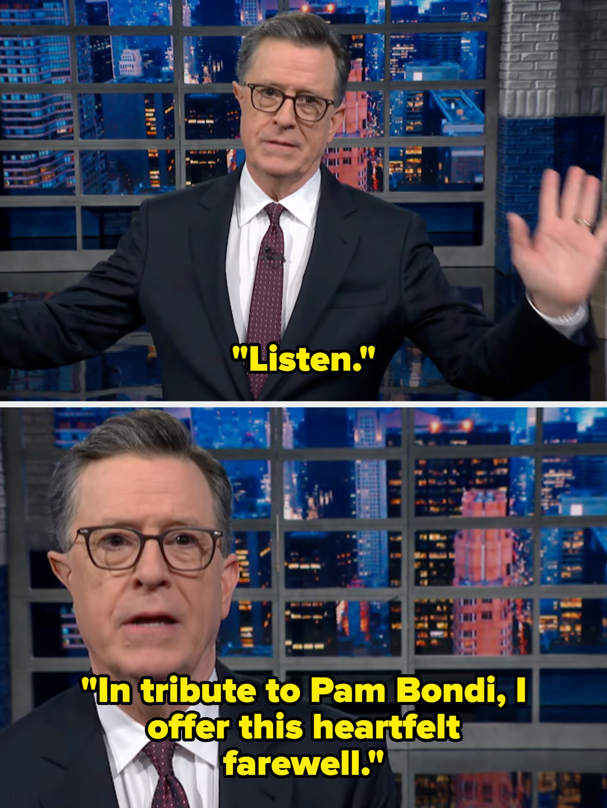 Stephen Colbert Roasted Pam Bondi's Firing, And Everyone's Saying The Same Thing