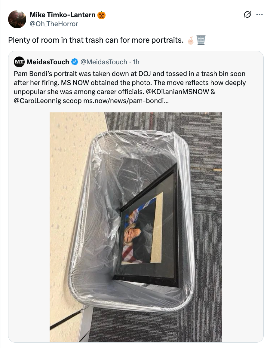 Wait Till You See What Happened To Pam Bondi's Portrait After The Justice Department Fired Her