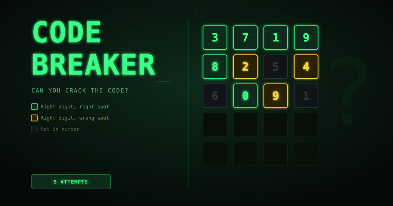 It's like Wordle, but with numbers — crack the 5-digit code in 6 attempts. Digits can repeat! Want to get your very own quizzes and posts featured on BuzzFeed’s homepage and app?