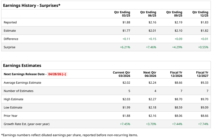 Saint Paul, Minnesota-based 3M Company (MMM) provides diversified technology services in the Americas and internationally. The company has a market cap of $75.5 billion and operates through Safety and Industrial, Transportation and Electronics, and Consumer segments. MMM is expected to release its Q1 2026 earnings soon. Ahead of the event, analysts expect the company’s EPS to be $2.02 on a diluted basis, up 7.5% from $1.88 in the year-ago quarter. The company has exceeded Wall Street’s EPS estimates in each of its last four quarters. Tesla Stock Keeps Falling - But 10% Lower TSLA Puts Yield 2.0% for One Month Out The Market Isn’t Pricing War. It’s Pricing What Comes After Iran War, Inflation Reading and Key Things to Watch this Week Stop Missing Market Moves: Get the FREE Barchart Brief – your midday dose of stock movers, trending sectors, and actionable trade ideas, delivered right to your inbox. Sign Up Now! For fiscal 2026, analysts project the company’s EPS to be $8.66, up 7.4% from $8.06 in fiscal 2025. Moreover, its EPS is expected to rise by roughly 7.7% year over year (YoY) to $9.33 in fiscal 2027. MMM stock has declined 2.2% over the past 52 weeks, underperforming the S&P 500 Index’s ($SPX) 22% rise and the State Street Industrials Select Sector SPDR ETF’s (XLI) 23.1% return during the same time frame. On Jan. 20, MMM stock dropped nearly 7% following the release of its Q4 2025 earnings. The company’s revenue for the quarter amounted to $6.1 billion, up 2.1% from its year-ago value and surpassing the Street’s estimates. Moreover, its adjusted EPS for the period came in at $1.83, also coming in on top of Wall Street estimates. However, investor confidence was brought down by a 510 basis point drop in its operating margin, weighed down by significant special items. Analysts are moderately bullish on MMM, with the stock having a “Moderate Buy” rating overall. Among the 16 analysts covering the stock, eight are recommending a “Strong Buy,” seven analysts advise “Hold,” and one suggests a “Strong Sell” for the stock. MMM’s average analyst price target is $177.60, indicating an upside of 22.9% from the current levels. On the date of publication, Aritra Gangopadhyay did not have (either directly or indirectly) positions in any of the securities mentioned in this article. All information and data in this article is solely for informational purposes. This article was originally published on Barchart.com