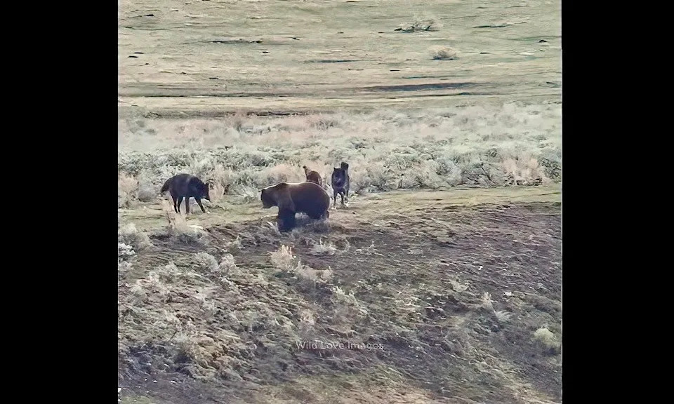 Massive Yellowstone grizzly bear ambushed by wolves on way to carcass