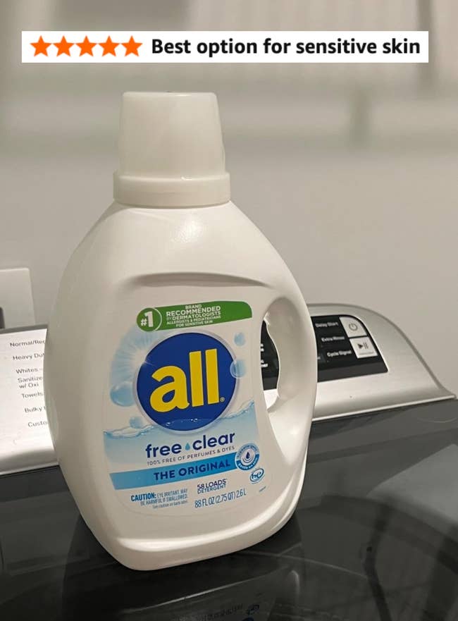 We hope you love our recommendations! While every product is independently chosen by our editors, BuzzFeed and our publishing partners may collect a share of sales or other compensation from the links on this page. You can read more about how our affiliate partnerships work in our Editorial Standards & Ethics Guide. Take care of your skin and "take care" of those stains with one detergent. Living with sensitive skin requires some extra thought in the things you purchase. Skincare, clothing and bedsheet material, and laundry detergent especially. Whether you're looking for a fragrance-free option with the NEA stamp of approval, easy pods you can just toss in and forget, or a plant-based option that keeps both your skin *and* the planet in mind. There's a lot to choose from, but these are the most gentle laundry detergent options for sensitive skin. Take a look! This Tide Free and Gentle Liquid Laundry Detergent is crowned the best of the best not only because it's effective on stains and is an unscented dream, but also because the gentle, hypoallergenic formula is certified and accepted by the National Eczema Association *and* is recognized by the National Psoriasis Foundation, which is no easy feat these days in a landscape full of harsh dyes and potent perfumes. This detergent is specifically designed for sensitive skin to help limit skin irritation. This has the National Eczema Association Seal of Acceptance. Promising review: "I’ve tried a lot of laundry detergents over the years, and 'free and gentle' versions can be hit or miss — sometimes they’re gentle but don’t clean well, or they clean well but still somehow irritate skin. This one actually hits the balance. The first thing I noticed is that it’s truly fragrance-free. Not the fake 'unscented but still smells like perfume' situation — just clean clothes with no lingering scent. For anyone sensitive to smells or skin reactions, that alone is a huge win. Performance-wise, it handles normal laundry really well. Every day, clothes come out clean, and I haven’t needed to use extra product or boosters. It also works fine in cold water cycles, which I use most of the time... Overall, this is one of those practical purchases that just makes life easier. It does its job without causing problems, and that’s exactly what I want in a detergent." —Nichole Get it from Amazon for $12.97+ (available in seven sizes), Target for $13.99+ (available in four sizes), or Walmart for $5.44+ (available in five sizes). Those with sensitive skin, dry skin, or just skin that needs a lil extra care will absolutely love All's Original Free & Clear Liquid Detergent. Reviewers say that this unscented, hypoallergenic liquid soap works great for both machine and hand washing. So whether you're washing a load of bed sheets in your LG or hovering over the sink to wash your delicates, this detergent will get 'em clean without irritating your skin. Plus, you'll get a whopping 110 loads from this 82.5-ounce jug... so there's that, too. Promising review: "My husband has very sensitive skin, and this laundry detergent works for his sensitive skin. Does a great job of cleaning all our laundry." —Nancy D Jones This clean-ingredient detergent powder is powerful, yet gentle, and that's a combo anyone would love. Molly Suds' Original Laundry Detergent Powder provides your clothing with a deeeep clean, all while being free of artificial dyes, gross synthetic fragrances, and harmful (and irritating!) chemicals. The unscented option seems to be a fan favorite amongst buyers, but I gotta admit, with other scent options like Peppermint and Eucalyptus (which are all made from ~natural~ plant essences and oils!), it wouldn't hurt to try those either. Did I mention that this detergent powder is certified cruelty-free, too? 'Cause it is! Molly Suds is a family-owned small business founded by a pediatric nurse and mother of three. Promising review: "Superior washing powder. I have been using Molly's Suds for several years. Clothes are always clean, fresh-smelling, and don't irritate my sensitive skin." —Sandra S. Get it from Amazon (available in three sizes and three scents), Target (unscented only), Walmart (available in two sizes, unscented only) ,or straight from Molly Suds (available in two sizes and five scents, including unscented) for $14.99+. To say these award-winning laundry detergent tablets from Blueland are the best would be selling these babies short. I use them for my cold-water loads and love them for numerous reasons. 1. Tablets are just as easy as pods, but are WAY more eco-friendly because there's no plastic casing, and these are shipped in reusable tin canisters (and the refill bags come in compostable paper packaging 👏), 2. The free and clear scent truly is fragrance-free, and 3. They clean incredibly well! Dirt, wine, and "ectera" stains are outta there. Lastly, these tablets are free of chlorine bleach, optical brighteners, dyes, parabens, and more. Tip: Place them directly in the washer vs. in the detergent dispenser! Promising reviews: "So I was skeptical about these. It's hard to know if your clothes are really getting clean sometimes. However, I have extremely sensitive skin, so if particles — dirt, pollen, germs, etc. were being left on my clothes, I would expect my skin to start breaking out in rashes, and so far that hasn't happened. And dropping a tablet in the wash is easy for my autistic son to do when he's doing his own laundry." —Gwen E. "Laundry was my first step towards a non-toxic or low-toxic lifestyle. This is the best non-toxic laundry detergent I have found. Highly recommend." —Kelley R. Get the starter kit (tin + refill bag) from Amazon for $29.99+ (available in two scents), or straight from Blueland for $25.99+ (available in two sizes and three scents). You can also grab refill bags only from Amazon, Target, or Blueland, for $21.99+. According to reviewers, these "Power Dropps" really do live up to their name. 