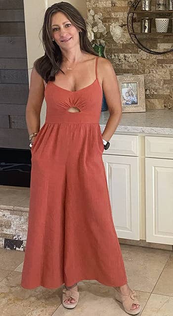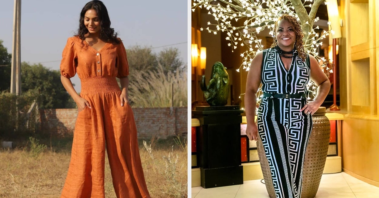 We hope you love our recommendations! While every product is independently chosen by our editors, BuzzFeed and our publishing partners may collect a share of sales or other compensation from the links on this page. You can read more about how our affiliate partnerships work in our Editorial Standards & Ethics Guide. Unless otherwise specified, all sizes in this post are listed in women's. Promising review: "I am obsessed with this jumpsuit. Perfect for teaching in, has pockets, very stretchy, easy to pull off and on. Thin to medium weight, so it is not hot on me and perfect for spring and summer. Has a 25-inch inseam, but the crotch sits lower on me, and I am 5’2”. Hits perfect for me — I can still wear a sandal, and this barely grazes the floor. I love wearing this layered at the moment with fitted long sleeve T-shirts. Nothing fancy, but it is adorable, and I kept getting compliments from students as well. I do wear an underwear shaper with this to smooth me out, but this feels like wearing pajamas. I have these in a size large. I am 150 pounds, 5’2”. I just ordered another pair and will have them in four different colors. Highly recommend." —sebn1111 Get it from Amazon for $32.99 (available in sizes S–XL and 13 colors). Ellementree is a small biz based in India making dreamy and comfy custom clothing from 100% stone-washed linen. Promising review: "I couldn’t be happier! The jumpsuit is gorgeous, it fits me perfectly. I was worried that it might be too long, so I emailed the seller. She got back to me right away and she was able to shorten it. The jumpsuit arrived today in beautiful packaging, but best of all, I love how it looks on me. I will definitely order from this seller! Thank you, thank you, thank you." —Pierce family Get it from Ellementree on Etsy for $142.80 (originally $204; available in sizes XXS–5XL or a custom size based on your measurements, and in 33 colors). Promising review: "I love these pants. I have two pairs of these now and they are my favorite things. They are so comfortable. Seriously, I would live in these all summer long if I could. They do run small so size up if you want them to be more loose. They also probably run on the longer side for shorter people, so be aware of that." —Brittany Gloss Get it from Amazon for $19.99+ (available in sizes XS–5XL and 22 colors). Psst: Some reviewers also said this is a great maternity piece! Promising review: "I’m a photographer and wanted a jumpsuit that had pockets and felt comfortable to wear all day! The fabric is very linen-like and light, it was super comfortable to work in this all day. I bought a second one in a different color because I loved the first one so much." —Stacey Get it from Amazon for $24.99+ (available in sizes S–3XL and seven colors). Based in Lithuania, Love and Confuse makes gorgeously crafted, versatile linen clothing you'll want to fill your closet with. Also, this item ships for free! Promising review: "This jumpsuit is absolutely beautiful! Amazing quality. Perfect for summer! Arrived with cloth samples in case I would like to order something else, which is really helpful. Love this brand and will definitely purchase from them again." —Karina Get it from Love and Confuse on Etsy for $129.34 (originally $172.45; available in sizes XS–XL and 35 colors). Promising review: "I absolutely love this jumpsuit and own it in three colors. I ordered it in my normal dress size and it fit great. I have a longer torso and have such a hard time finding jumpers/rompers that actually fit (not too short or too long where the legs start), but this one doesn't have that problem. It is also super comfy, has a super cute cutout in front that gives some style without showing off too much, adjustable straps, and POCKETS! Highly recommend for anyone looking for a super comfy, casual, but also could be dressier, jumpsuit." —Jamie L Get it from Amazon for $18.99+ (available in sizes S–XL and 12 colors). Promising review: "I got so many compliments on the green jumpsuit that I turned around and bought the red one a week later. The material is soft, lightweight enough, and it fits long. It even has pockets, and we all know how we love discovering pockets in our clothing :-) Buy this jumpsuit, you won’t regret it all all. Promise! Oh, I wash it inside-out on delicate. I wear it all seasons. It’s light enough for a summer beach outfit, and it’s good enough in the winter with a bodysuit underneath while rocking some Uggs or even platform boots ;-) (Platform boots would set this off for sure!) SUPER cute!! Every single time I wear either jumpsuit, people ask me where I got it from! When I proudly tell them 'Amazon,' the look on their face is always priceless, ha." —K Get it from Amazon for $33.99+ (available in sizes M–5XL and 20 colors). It even comes with the tan belt shown in the second photo! Promising reviews: "I absolutely love this outfit. I went out to dinner and a concert afterward and received compliment after compliment on my outfit. The fit is very comfortable. The material is good quality. I would definitely buy this outfit again in another color." —Valerie WilliamsAmazon CustomVer "This jumpsuit!!!! Get it!! It fits so well and the color is beautiful! Perfect for a wedding, photo shoot, or any event where you want to look like a boss!" —Amazon Customer Get it from Amazon for $29.99+ (available in sizes S–XXL and 20 colors). Promising review: "Love, love, love!! Best bodysuit I’ve ever purchased! I rarely write reviews, but this bodysuit is so perfect I just had to share the love. I’m 5’4", 125 pounds, 34B, 26-inch waist, athletic build, and purchased a small. It’s Perfect! I’m a deep tissue massage therapist, I practice Pilates daily, and this bodysuit stays in place and holds its shape. Yay!! I highly recommend, I’m definitely ordering more !☀️🧡☀️" —Kris Get it from Amazon for $39.98 (available in sizes XS–XXL and 28 colors). Pro