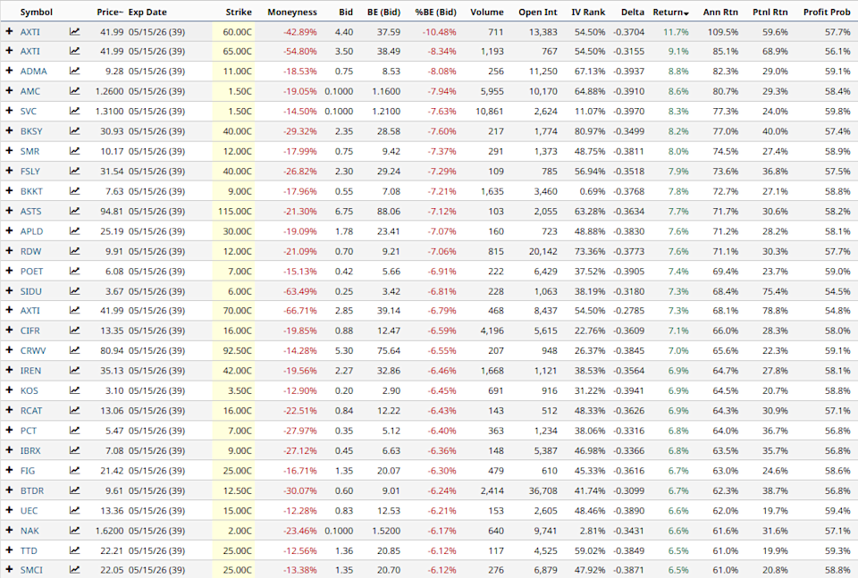 Covered Call Screener Results for April 7th